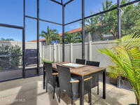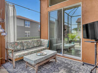 Nearly new END unit townhome in exclusive gated Montecito Community. Impressive updated eat-in kitchen w/42' cabinets, tiled backsplash, breakfast bar, quality stainless appliances & granite countertops. Upgraded tile floors throughout first floor. 20ft ceilings in living room. First floor primary bedroom has double granite vanities, nice tile work & walk-in closet w/custom built-ins. Huge loft & office area upstairs. Also has adjoining office/storage room. Beautiful private screened porch & extended patio w/vault screen enclosure. Nice outdoor space. Upgraded light fixtures & fans. Aquasana water treatment system. Epoxy garage floor. Hurricane shutters. Lots of extras & pride of ownership. Better than new! Community offers resort style pool, clubhouse, fitness center & so much more. You won't be disappointed. Pleasure to show. Don't wait.