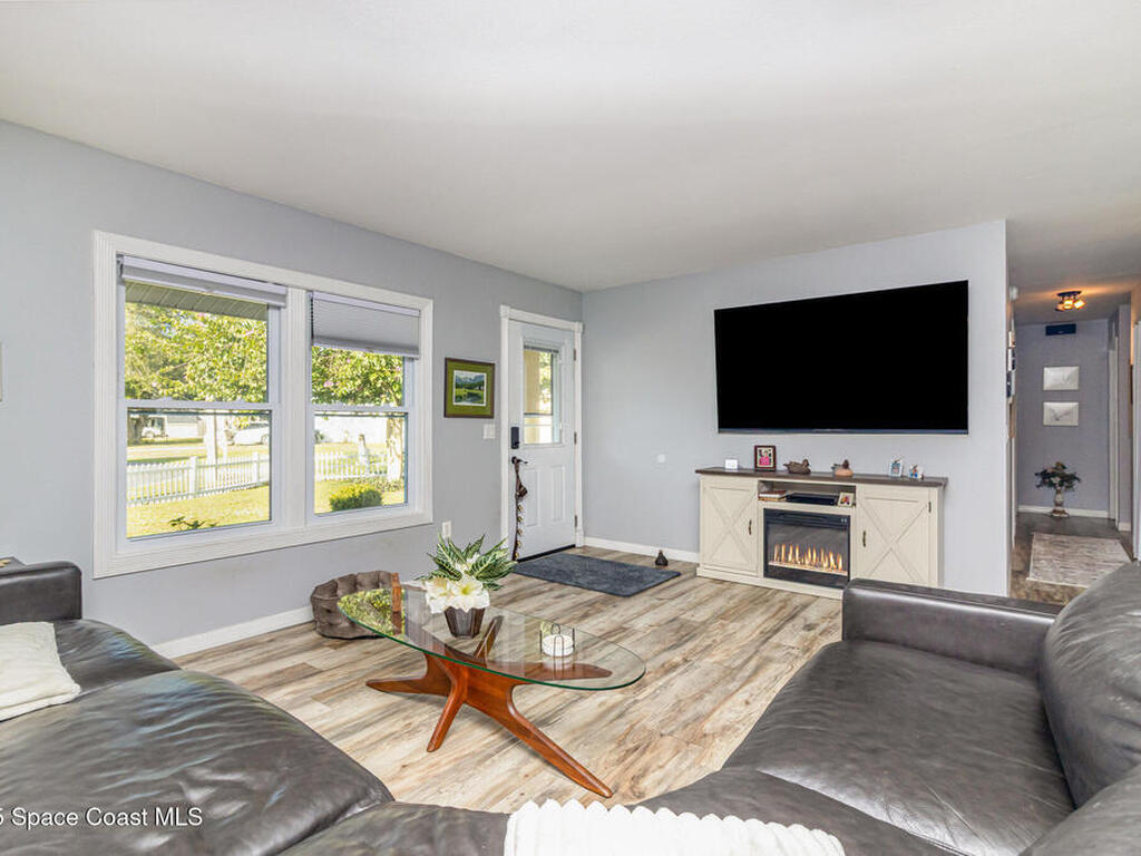 Look no further--this beautifully updated 3-bed, 2-bath POOL home is ready to impress. Situated on a spacious 0.37-acre lot that backs up to city-preserved land, the property offers the feel of true acreage without the maintenance.Step outside to your 2019 low-maintenance, screened ozone pool, featuring a stunning pebble-tec finish--perfect for relaxing or entertaining. The large covered porch extends the fun outdoors, offering plenty of space for gatherings.For hobbyists or extra storage, you'll love the his-and-hers sheds, both equipped with electric. Major upgrades bring peace of mind, including a new roof in 2024, new windows in 2023, and updated AC, kitchen, bathrooms & flooring throughout. A pool table also conveys, providing hours of enjoyment from day one.There are many more upgrades--ask for the complete list! FANTASTIC LOCATION! Minutes to shopping, restaurant's parks & beaches