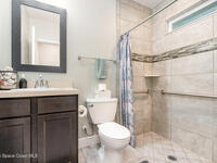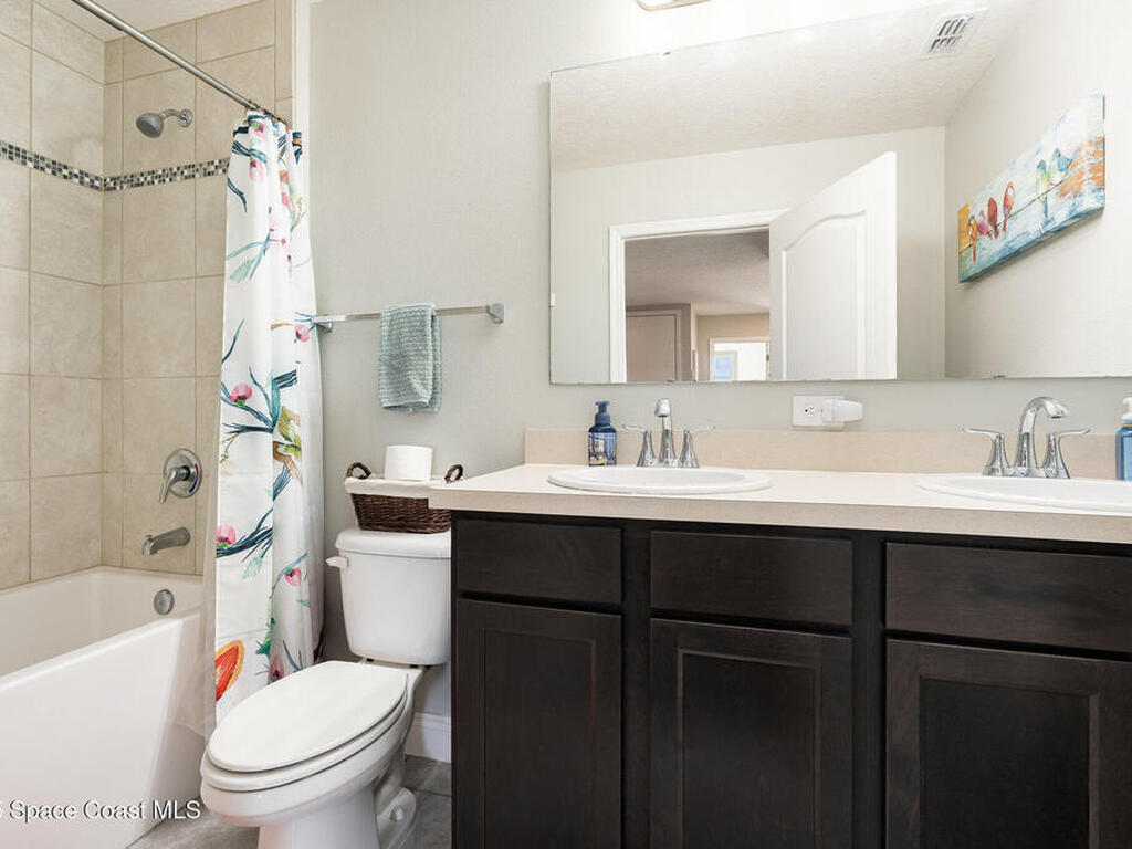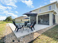 Located on a quiet cul-de-sac in the heart of Rockledge, this light-filled 5-bedroom home offers a spacious and versatile layout. The open kitchen flows into the great room, ideal for everyday living and entertaining. The first floor includes a guest bedroom with a full bath, Multiple flex spaces provide endless options, including a front room downstairs plus an upstairs loft and bonus area perfect for a playroom, media room, game room, or office. The primary suite features a large walk-in closet, double sinks, a soaking tub, and a walk-in shower. A second-floor laundry adds convenience, and recent upgrades include a brand new AC and new carpets in bedrooms, a new washer, dishwasher, and microwave. Home includes hurricane shutters. Enjoy outdoor living with a patio for cookouts and a 4-year-old saltwater pool overlooking Lake Betsi and the Don Griffin Trail. The scenic 2-mile path is ideal for morning or evening strolls.