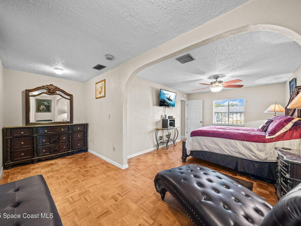 This spacious 4-bed, 2-bath home features a desirable split floor plan, offering a private primary suite with a cozy sitting area and direct access to the screened patio through the en-suite bath. The kitchen comes equipped stainless steel appliances and a convenient pantry. Outside, you'll appreciate the oversized driveway with plenty of parking. Enjoy rocket launches from your private, fully fenced backyard that comes complete with an outdoor shower, 12x16 shed and attached composite deck ideal for storage, hobbies, or creating the outdoor retreat you've been dreaming of. Don't miss the chance to make this home yours!