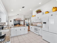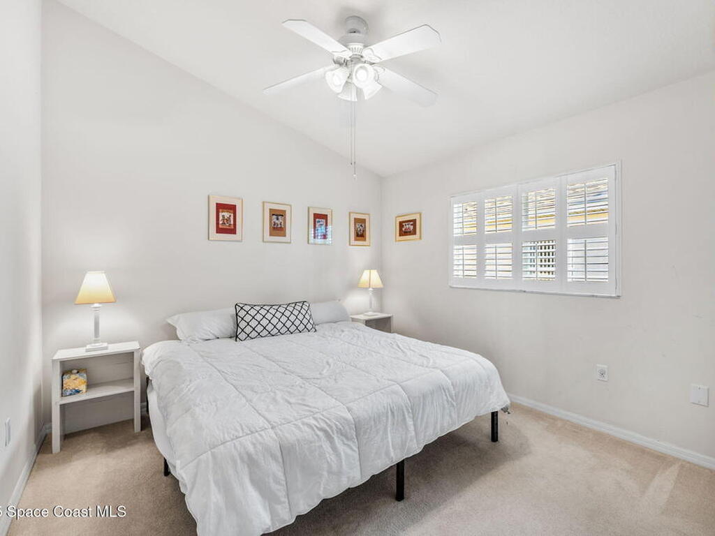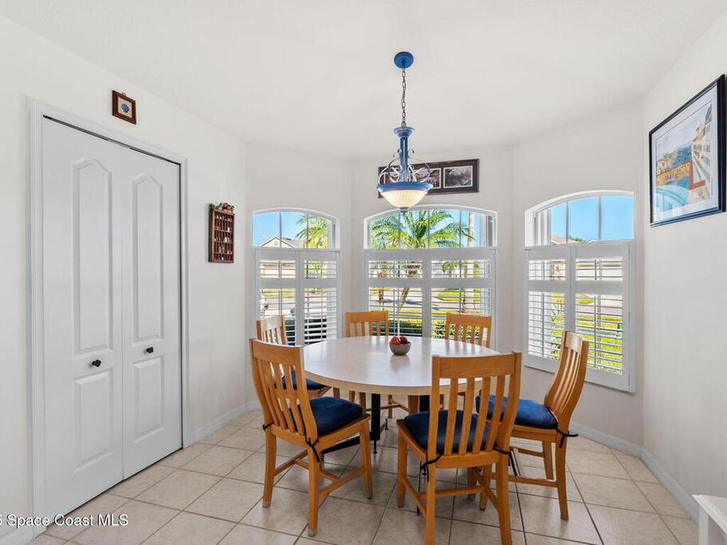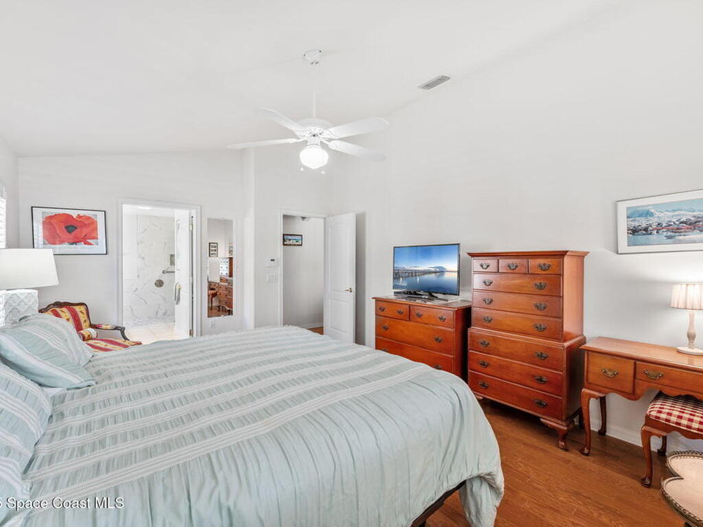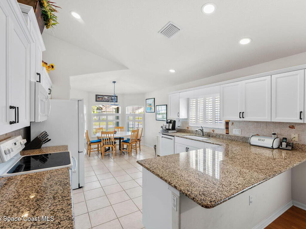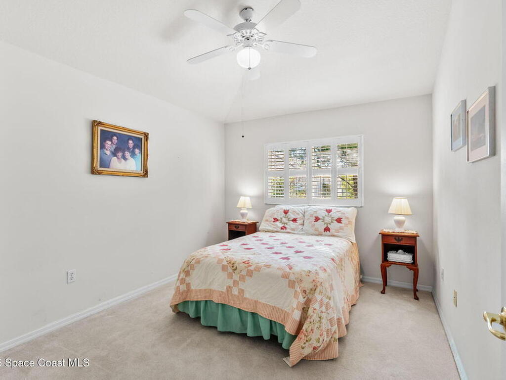 Move in ready with 3 BRs PLUS Florida room/FLEX space that is perfect for a home office or den. The updated kitchen features new white shaker cabinetry, granite countertops, new refrigerator and a bay window. The primary bathroom has a huge updated shower with glass enclosure. Accordion shutters on all windows and sliders, and plantations shutters throughout all interior windows. Hardwood flooring in main living areas. Other features included an updated dining room chandelier, a second refrigerator in garage, an extended patio area to enjoy the Florida weather, and vaulted ceilings. This home is situated in an active 55 + community offering tennis, pickleball, billiards, fitness center, and movie room. Ideally located in East Viera offering easy access to I-95, the beaches, Viera shopping and restaurants and a brand new Publix that is being built nearby.