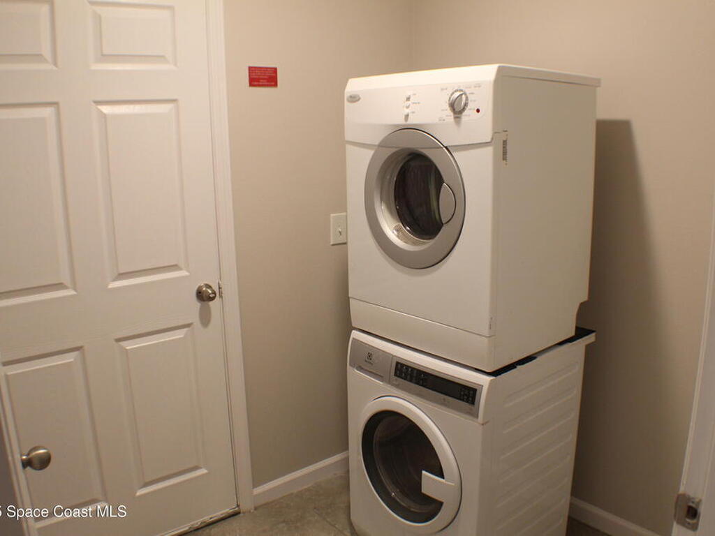 Dishwasher, Disposal, Electric Range, Ice Maker, Microwave, Refrigerator, Washer/Dryer Stacked