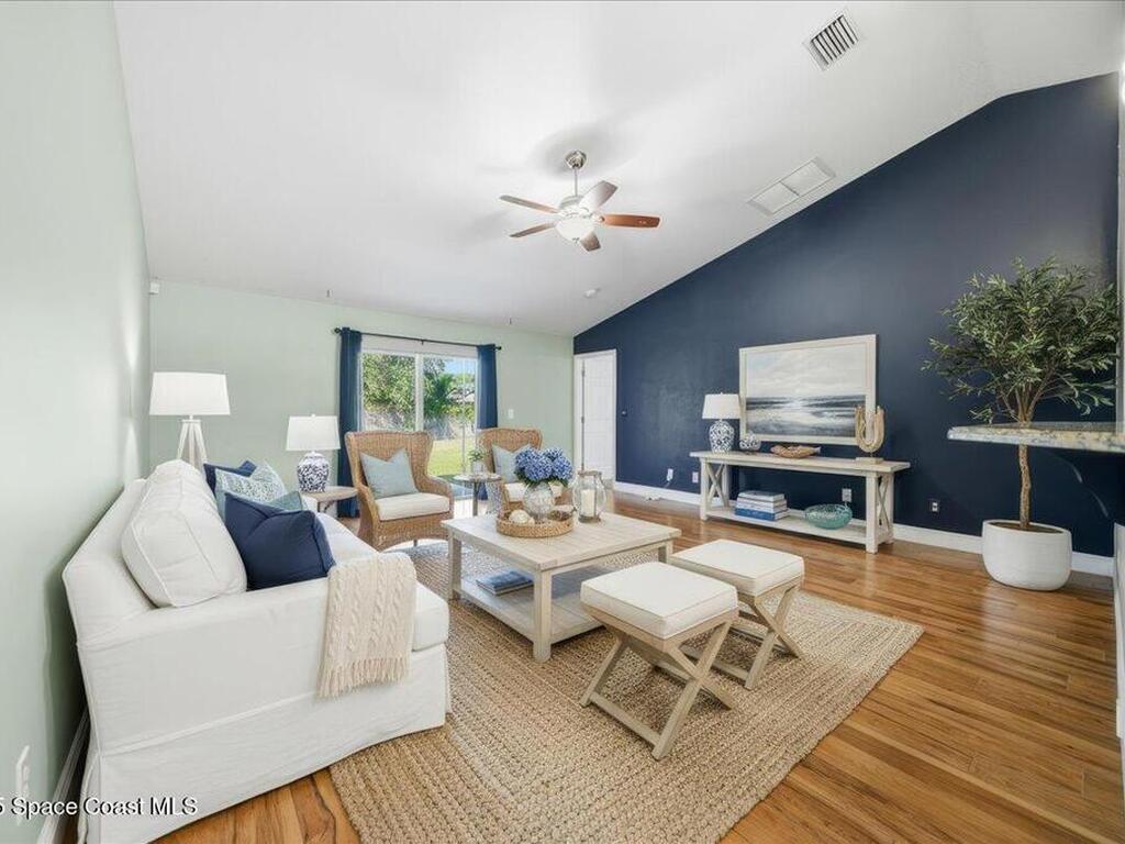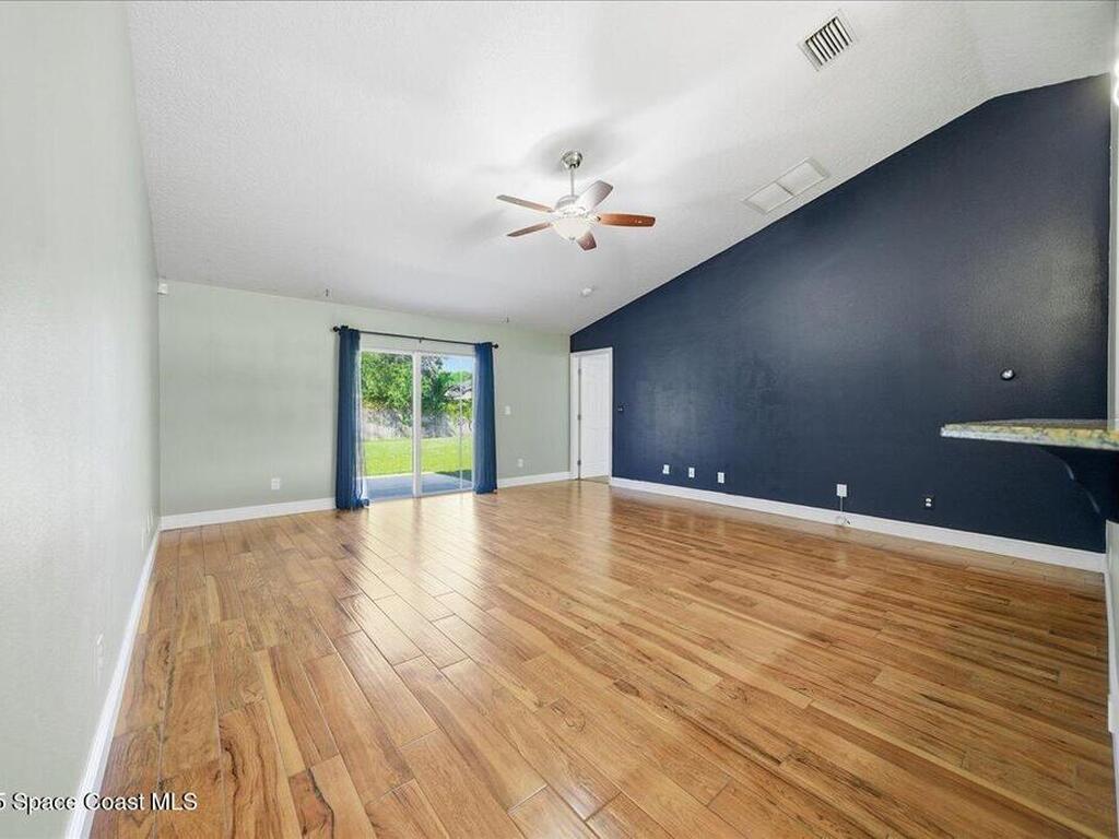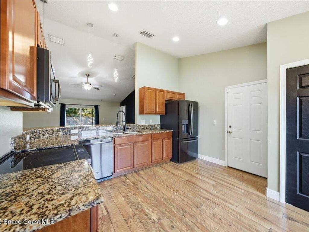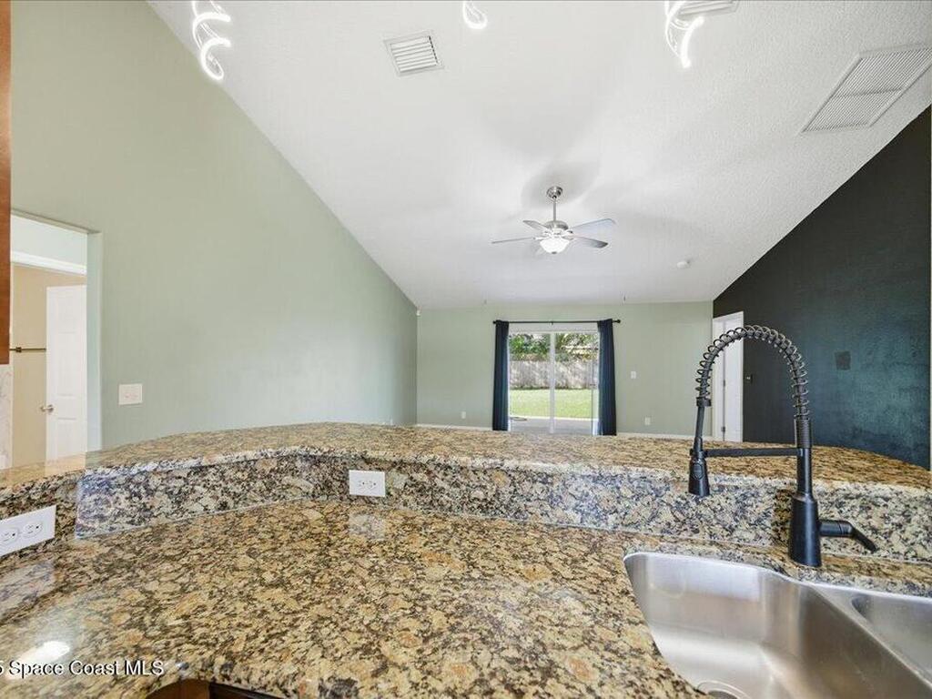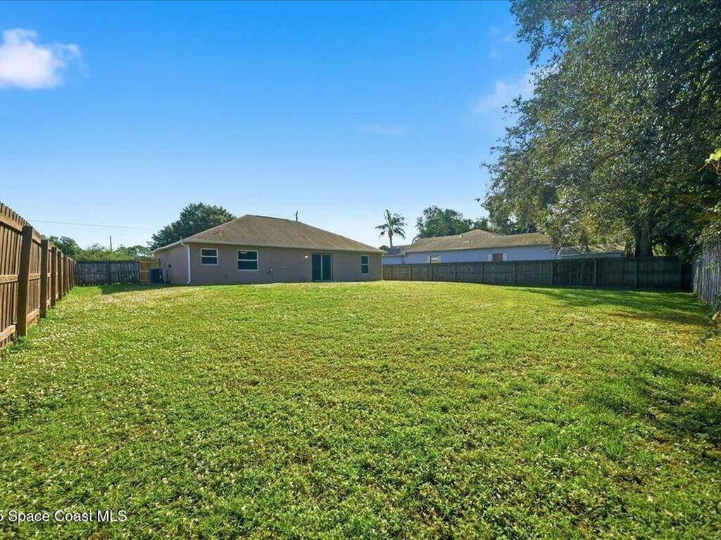 Welcome to 6424 Muller Ave in Cocoa! This beautifully maintained concrete block 3-bedroom, 2-bath home was built in 2015 and offers the comfort of newer construction with thoughtful upgrades. Features include new flooring, fresh interior paint, and vaulted ceilings in the kitchen and living area for an open, airy feel. The split floor plan provides added privacy for the primary suite, while the kitchen and bathrooms were upgraded in 2022 with granite countertops, updated paint, and a new washer and dryer. Enjoy peace of mind with triple-pane hurricane-impact windows, a septic tank serviced in summer 2022, and an exterior recently pressure-washed. The large fenced backyard offers plenty of room for kids, pets, and entertaining. A Ring camera security system is included. Located in a quiet neighborhood with no HOA, just 40 minutes from Orlando Airport, theme parks, and minutes to the beach!