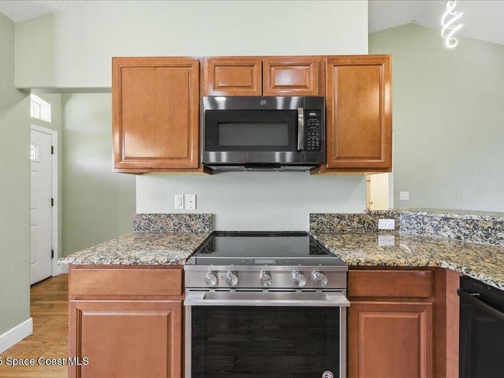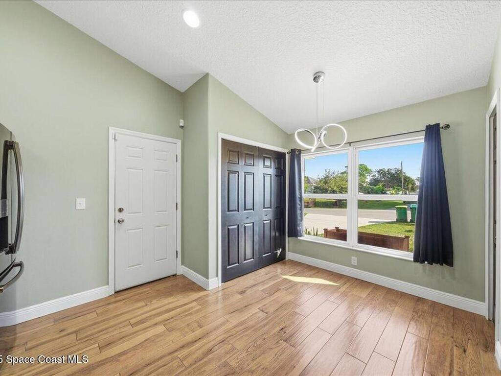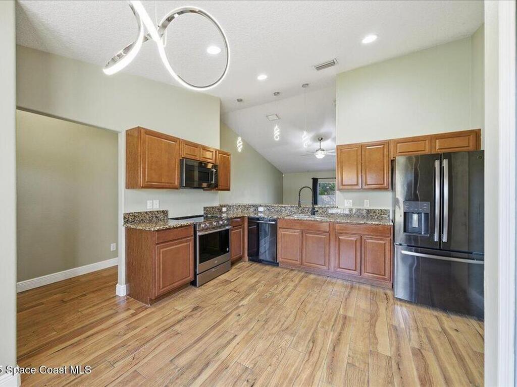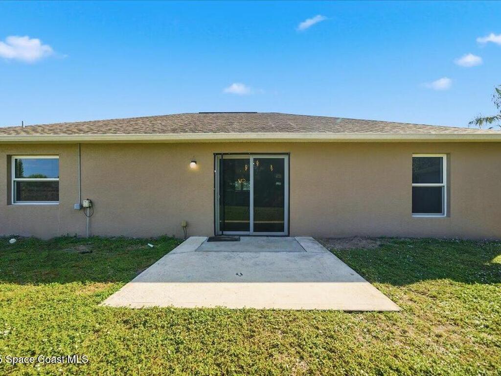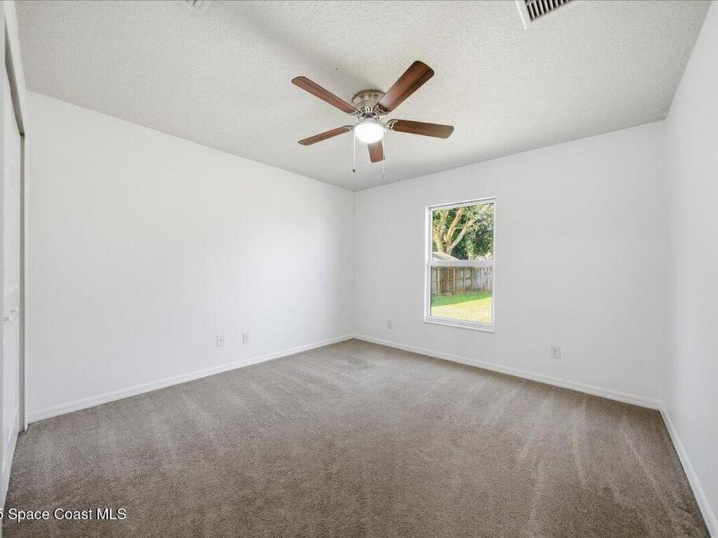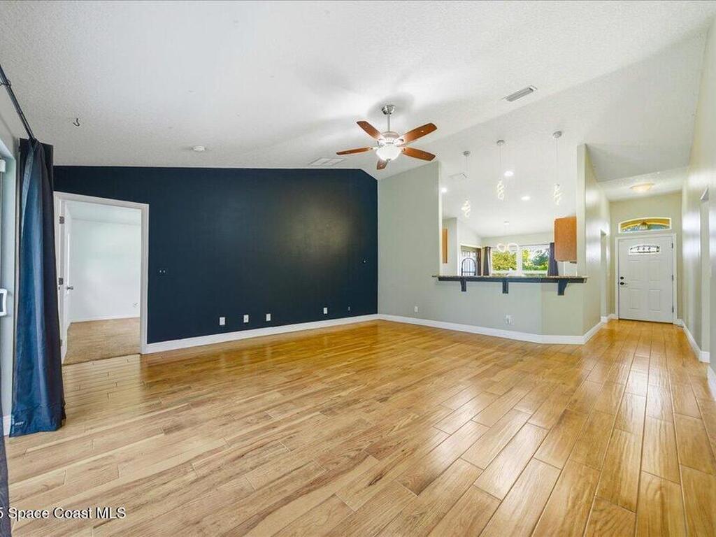 Welcome to 6424 Muller Ave in Cocoa! This beautifully maintained concrete block 3-bedroom, 2-bath home was built in 2015 and offers the comfort of newer construction with thoughtful upgrades. Features include new flooring, fresh interior paint, and vaulted ceilings in the kitchen and living area for an open, airy feel. The split floor plan provides added privacy for the primary suite, while the kitchen and bathrooms were upgraded in 2022 with granite countertops, updated paint, and a new washer and dryer. Enjoy peace of mind with triple-pane hurricane-impact windows, a septic tank serviced in summer 2022, and an exterior recently pressure-washed. The large fenced backyard offers plenty of room for kids, pets, and entertaining. A Ring camera security system is included. Located in a quiet neighborhood with no HOA, just 40 minutes from Orlando Airport, theme parks, and minutes to the beach!