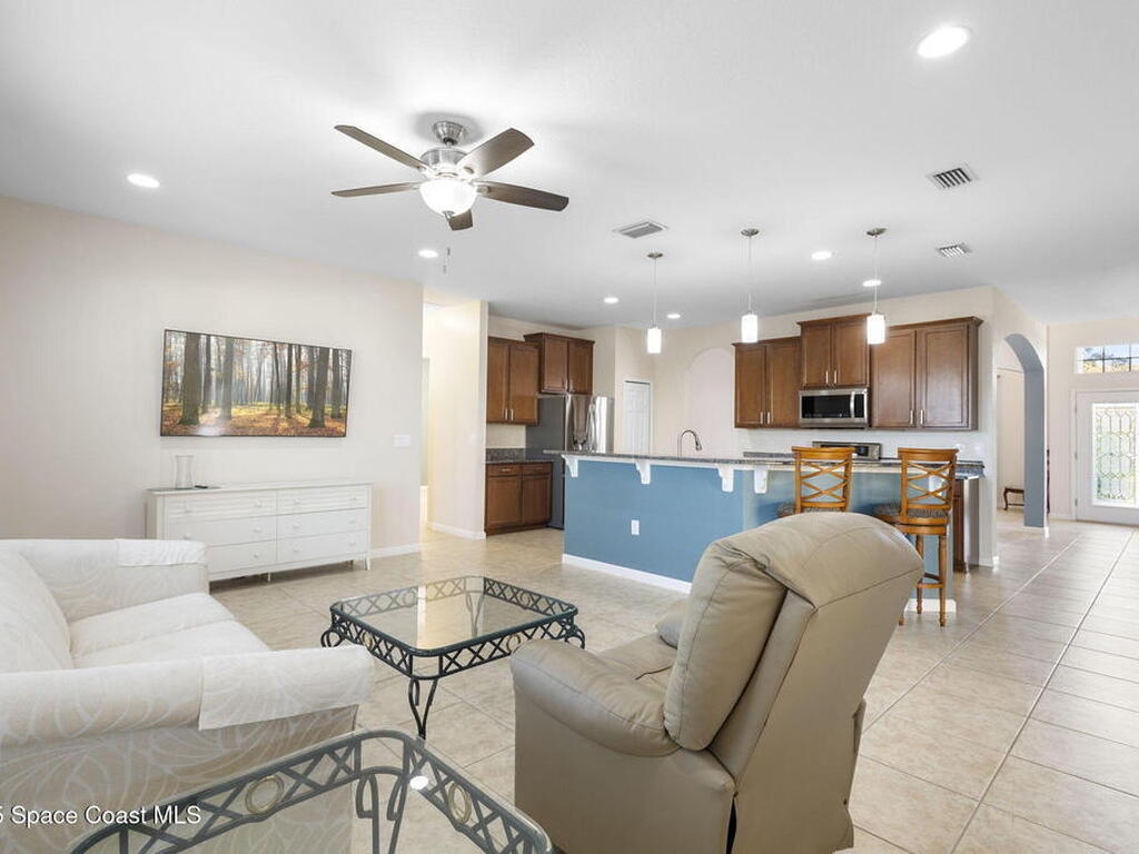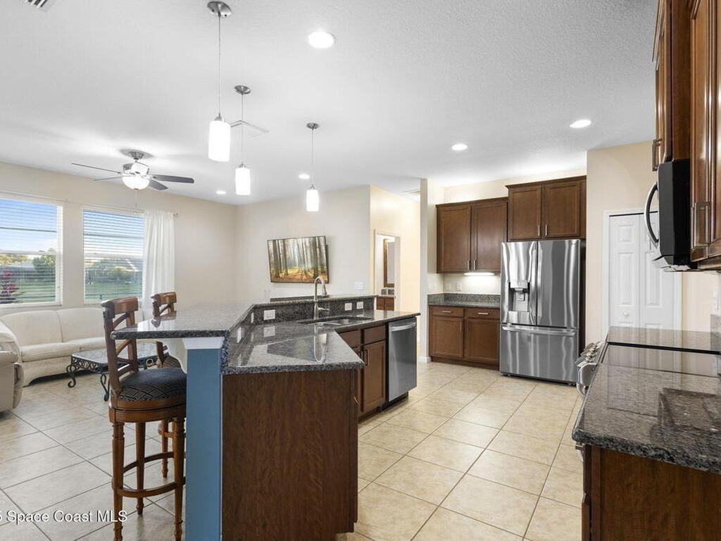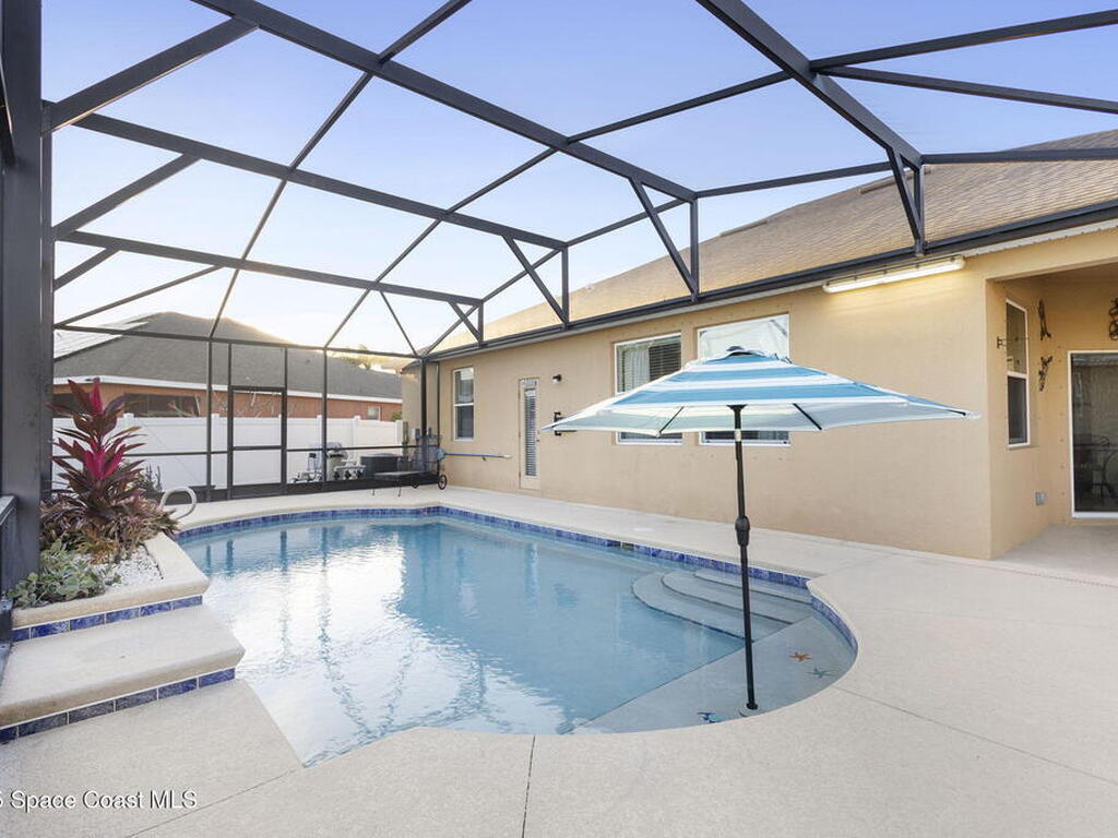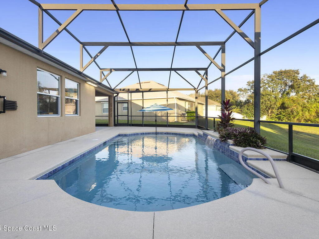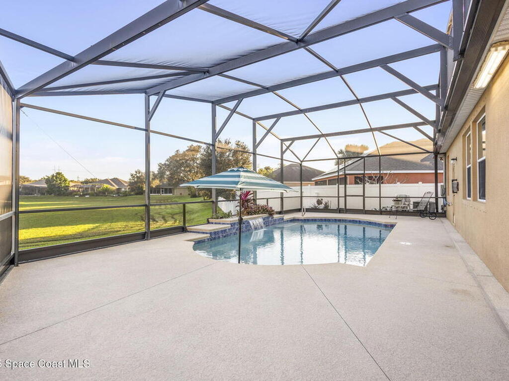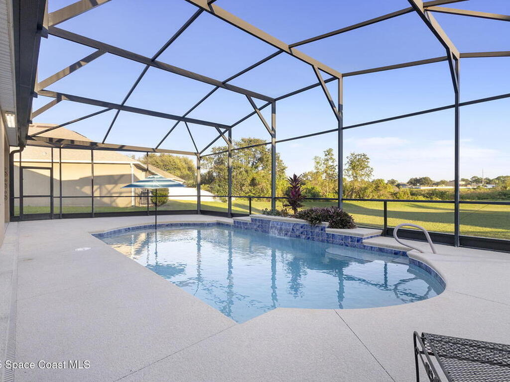 Perfectly landscaped and thoughtfully designed, this inviting pool home offers everything buyers want in a well-kept Florida retreat. Located in a wonderful neighborhood and backing up to a wide drainage field, it provides both privacy and tranquil views.Inside, quality finishes shine throughout. This 3-bedroom, 2-bath home includes a spacious flex room and an open layout ideal for everyday living. The large kitchen features beautiful granite countertops, stainless steel appliances, and a generous breakfast bar that makes cooking and gathering a breeze. Ceramic tile flows through the main living areas, with comfortable carpet in the bedrooms.The screened patio leads to a stunning saltwater pool with a waterfall feature, creating the perfect backdrop for relaxing or entertaining. The newer refrigerator and dishwasher add peace of mind, and the primary suite offers a serene escape with a soaking tub, separate shower, and dual sinks. Stop by and see this gorgeous home and pool!