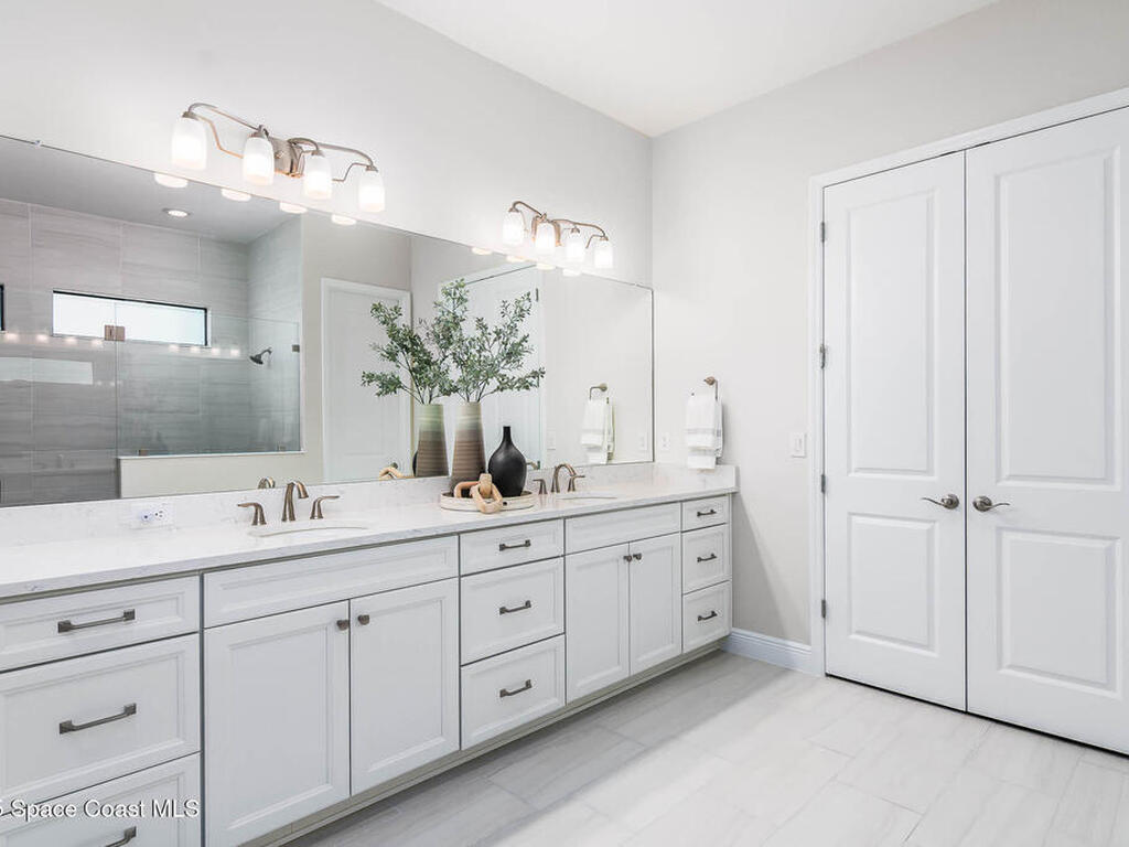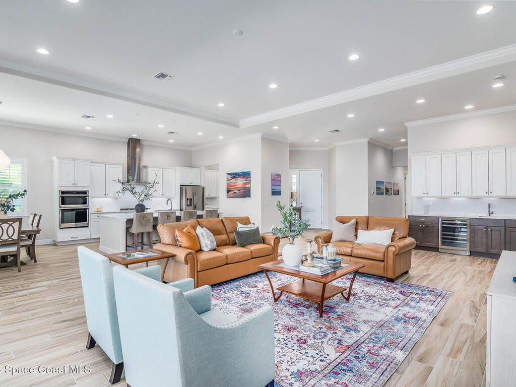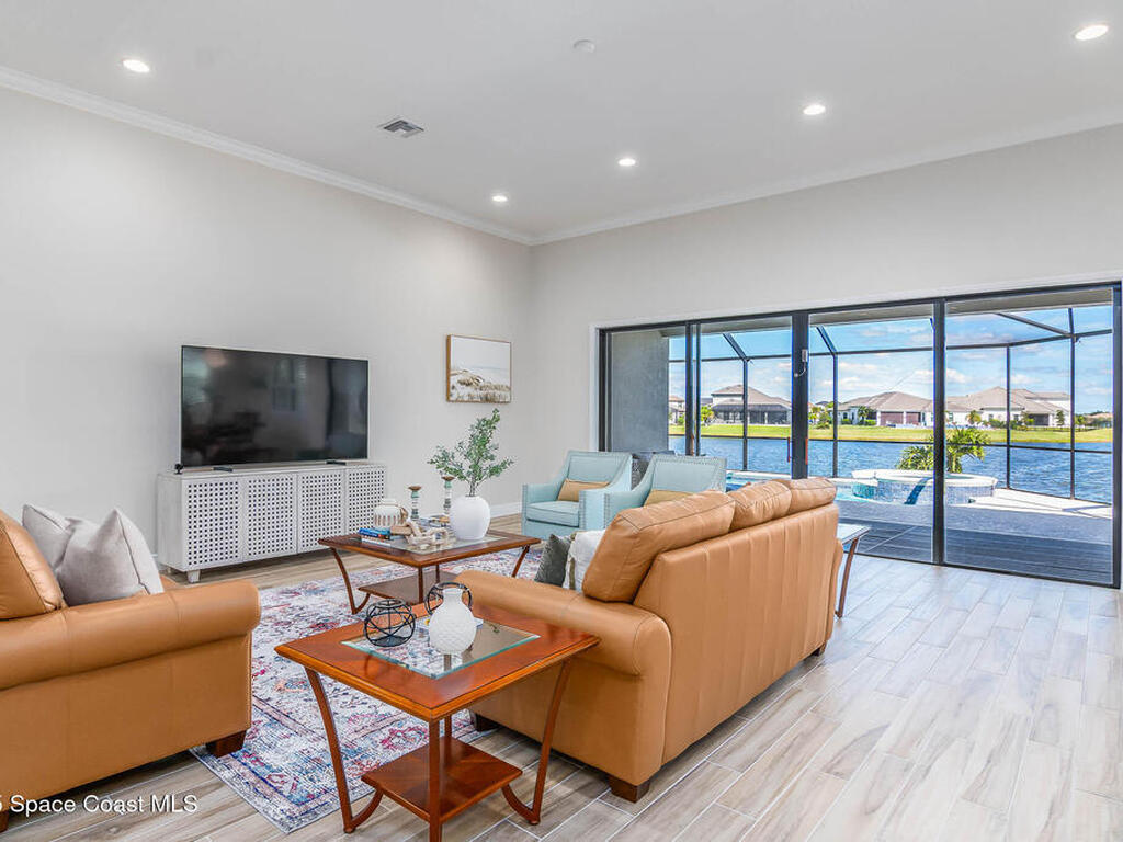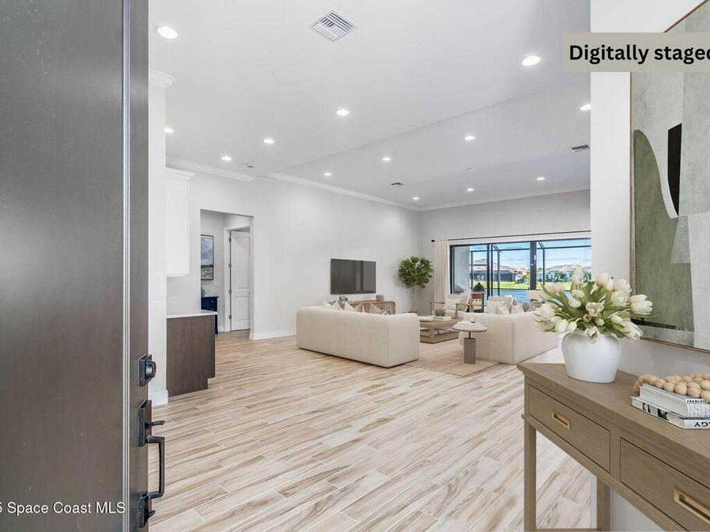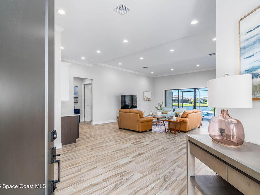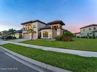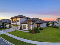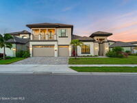 A new standard in Viera living! This home outshines new builds w/ customizations the builder no longer offers. Set on a quiet cul-de-sac, this 0.27-acre lakefront lot boasts an oversized front yard & extended tranquil water views. Enjoy a pool & spa from the supersized lanai, pre-plumbed for an outdoor kitchen. The gourmet kitchen is a chef's delight w/ wall ovens, gas cooktop, wine fridge, & a power pantry w/ 2nd refrigerator, dishwasher & sink. Upgrades include 3 HVAC zones for ultimate comfort, built-in wall pest defense & smart features like WiFi cameras, thermostats & garage door. Wood-look tile, tray ceilings & plantation shutters on impact windows add elegance. Every bdrm + bonus rm have a private bath & the owners' ste offers an oversized walk-in closet, large linen closet & dual showers. Set in an A-rated school district near top dining, golf, shops & just 15 min. to the beach. Here modern comfort & a remarkable lakeside setting blend to create the perfect place to come home!