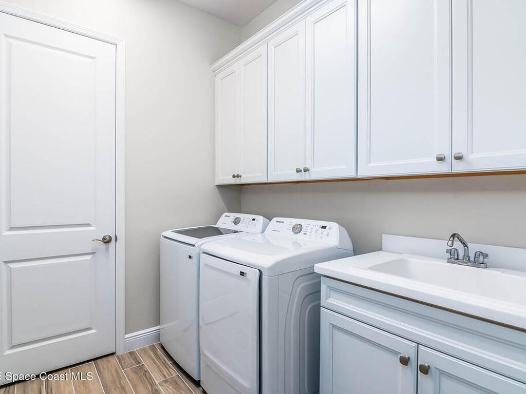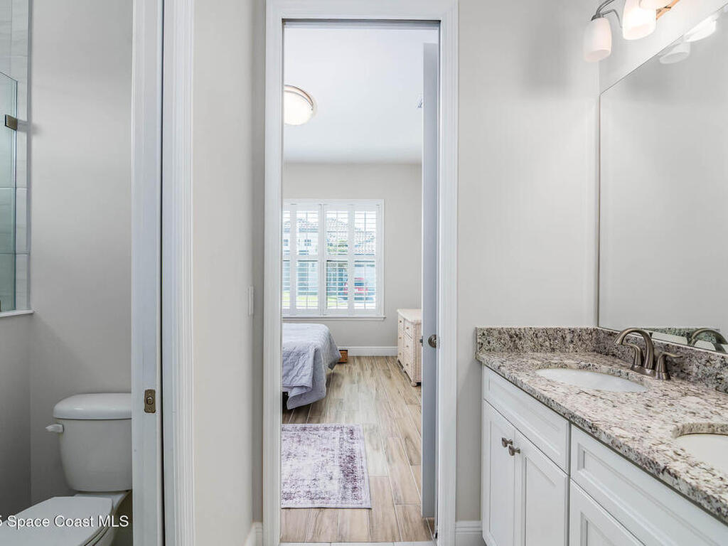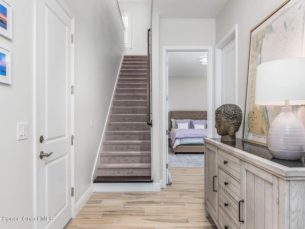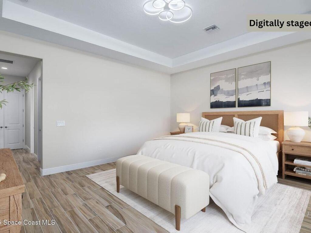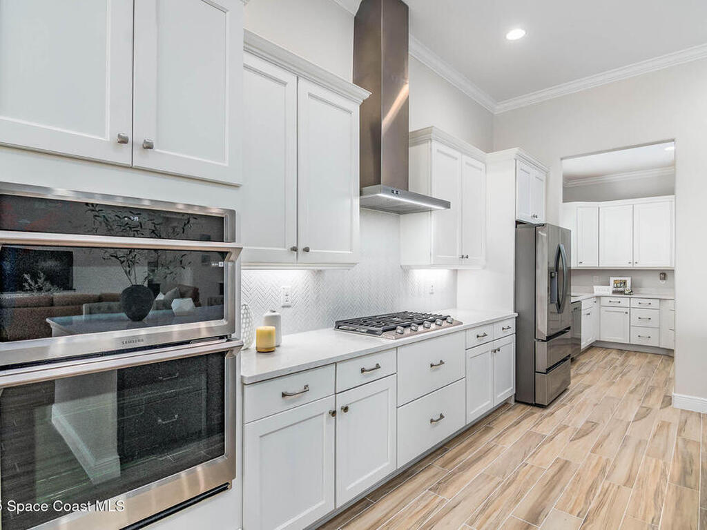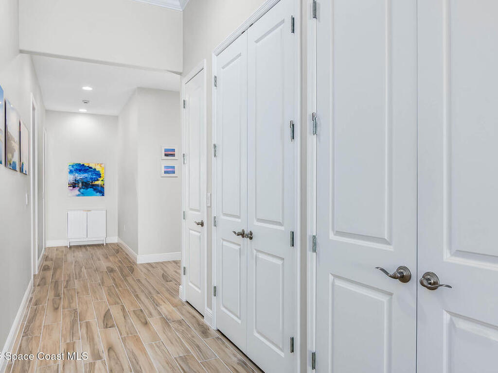 A new standard in Viera living! This home outshines new builds w/ customizations the builder no longer offers. Set on a quiet cul-de-sac, this 0.27-acre lakefront lot boasts an oversized front yard & extended tranquil water views. Enjoy a pool & spa from the supersized lanai, pre-plumbed for an outdoor kitchen. The gourmet kitchen is a chef's delight w/ wall ovens, gas cooktop, wine fridge, & a power pantry w/ 2nd refrigerator, dishwasher & sink. Upgrades include 3 HVAC zones for ultimate comfort, built-in wall pest defense & smart features like WiFi cameras, thermostats & garage door. Wood-look tile, tray ceilings & plantation shutters on impact windows add elegance. Every bdrm + bonus rm have a private bath & the owners' ste offers an oversized walk-in closet, large linen closet & dual showers. Set in an A-rated school district near top dining, golf, shops & just 15 min. to the beach. Here modern comfort & a remarkable lakeside setting blend to create the perfect place to come home!