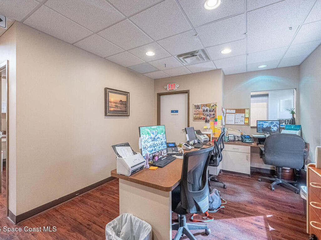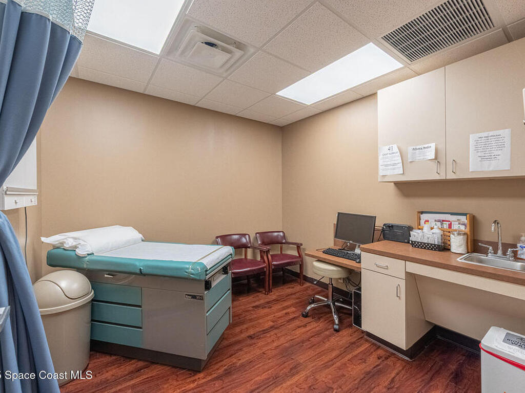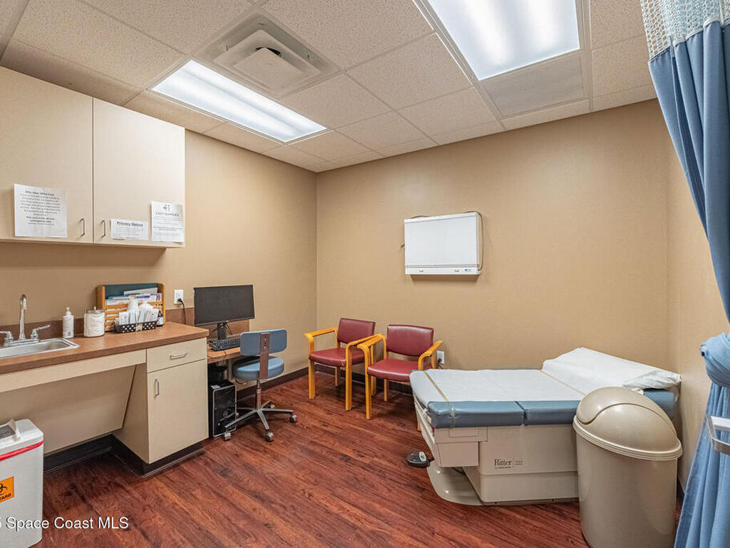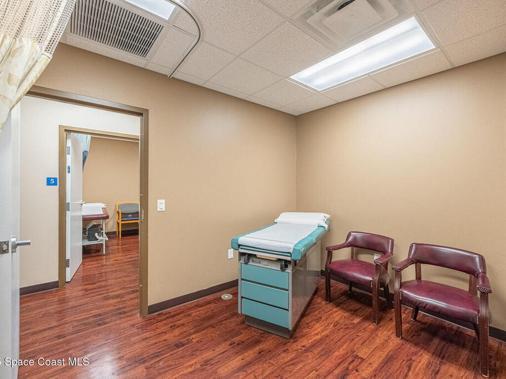 An exceptional opportunity to own a beautifully designed, turn-key medical office just off State Road 520 in Cocoa Beach's vibrant, high-traffic corridor. This canal-front property combines modern functionality with a serene setting ideal for medical, wellness, or professional use. Built in 2017, it features five fully plumbed exam rooms, two restrooms, a welcoming reception area, employee break room, and a dedicated X-ray room that can flex as an additional exam or specialty space. A spacious private office supports administrative needs. All major systems HVAC, electrical, Cat 5 cabling, and plumbing were installed new in 2017 for reliable, low-maintenance performance. The building is fully ADA compliant with accessible parking, sidewalks, entrance, hallways, and restrooms. With canal views and high visibility, this property offers modern design, convenience, and turn-key flexibility for a variety of professional uses.
