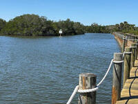 Own a little piece of Cocoa Beach Paradise in this 2 bedroom 2 bath direct Banana River unit and only 2 blocks from the beach. Relax on your patio & watch the pelicans fly by or sit on the dock only a few feet away & watch the dolphin & manatees play and end your day with the spectacular colors of sunset, The kitchen features stainless steel appliances, inside unit washer/dryer, granite counter tops that match the wet bar for entertaining famiy and friends. Primary bedroom boasts views of the water, walk in closet, double sink vanity, garden tub and separate shower. 2nd bedroom can be used for guests, office or both. Electric Hurricane Shutters, detached extra long garage, fenced area for RV/Boat storage with easy access to boat ramp next door. Amenities include: pool, tennis and pickleball courts, shuffle board, sauna, club house, exercise room and billiards. Close to shopping, dining and more.Make your appointment now!