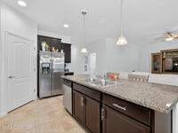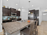 This beautifully maintained 3-bedroom, 2-bath home features an open floor plan, a kitchen with granite countertops, a large island, and an oversized walk-in pantry. The primary suite includes a spacious walk-in closet and a bathroom with double sinks and a large tiled shower. Tile flooring in the main areas and newer carpet in the bedrooms make the home comfortable and inviting. Additional features include a generator hookup and storm shutters. The backyard offers a serene view of the preserved trees, providing privacy and natural setting.The community offers two pools, a fitness center, tennis courts, RV parking, a clubhouse, playground and a walking trail through a preserved natural area. HOA covers landscaping, pest control, mulching, sprinklers, giving you a low-maintenance lifestyle in a welcoming neighborhood.