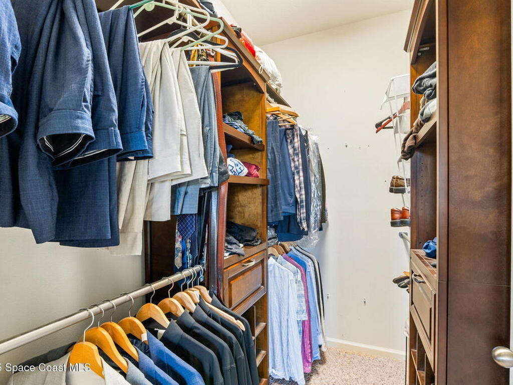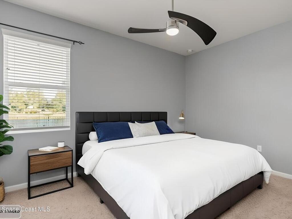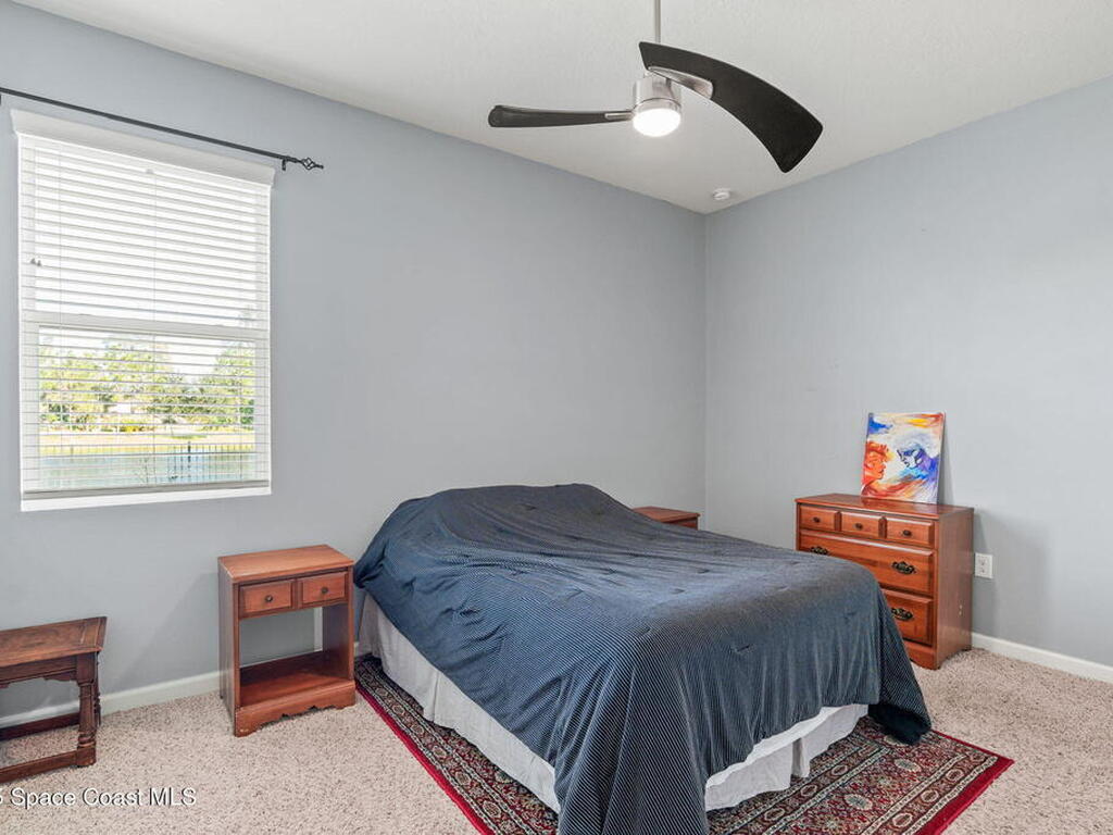 Welcome to The Sanctuary at Sawgrass Lakes--West Melbourne's premier gated enclave. This stunning lakefront 4-bedroom, 3-bath, 3-car garage home was built in 2019 and feels better than new. Inside, you'll find a designer kitchen with a peninsula breakfast bar, secondary island, granite countertops, 42'' white cabinets with crown molding, stainless appliances, and a walk-in pantry. Elegant upgrades include tray ceilings, plantation shutters, electric lanai blinds, and custom laundry cabinetry. Enjoy sunsets from the screened patio overlooking the lake and fully fenced backyard with private irrigation well and brick-paver entertaining area. Resort-style amenities include a clubhouse, fitness center