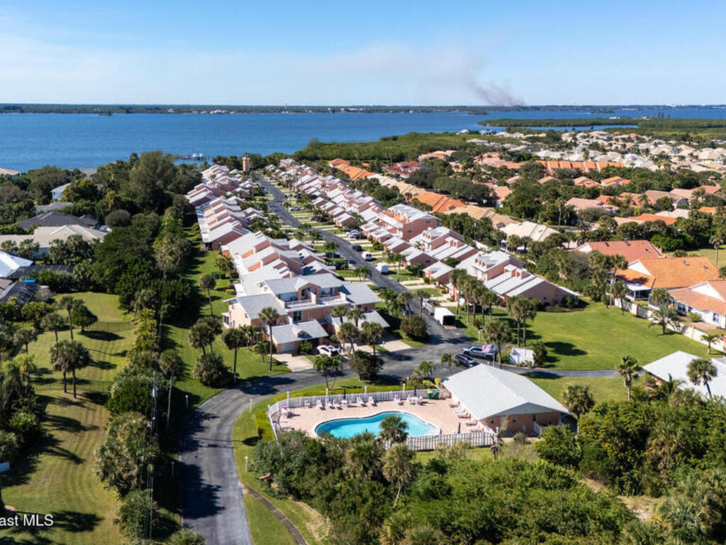 Perfectly positioned between the Atlantic Ocean & the Indian River, this desirable Lighthouse Cove home captures the essence of relaxed, upscale beachside living. Just steps from the shoreline, residents enjoy exclusive gated beach access & a private riverfront pier with a convenient boat ramp for boating, fishing, or soaking in unforgettable sunsets. This ONE-story unit features two spacious bedrooms, each with an ensuite bath & walk-in closet. The open floorplan boasts soaring ceilings & a bright kitchen with solid wood cabinetry, seamlessly connected to the inviting great room. A charming, screened porch offers tranquil wooded views, ideal for relaxing any time of day. Additional highlights include a 2020 HVAC, 2024 roof, one-car garage with extended driveway for parking up to three vehicles, & a heated community pool with clubhouse. The HOA covers exterior maintenance, roof, landscaping, irrigation, water, trash, plumbing, & structural insurance for low-maintenance coastal living.