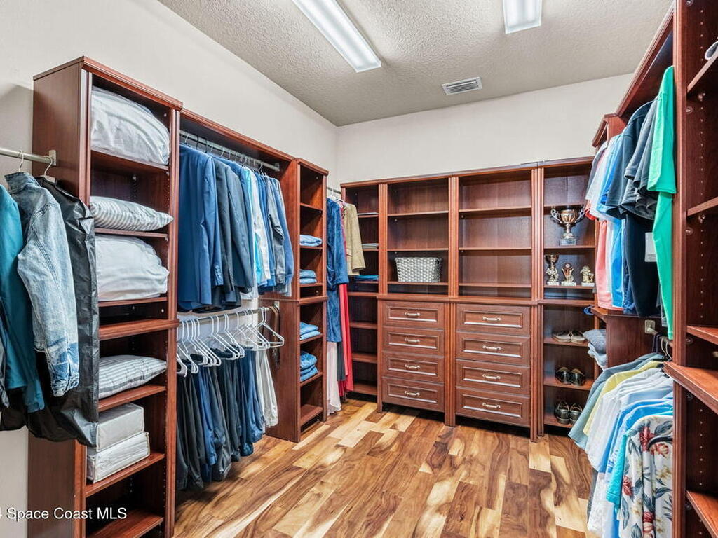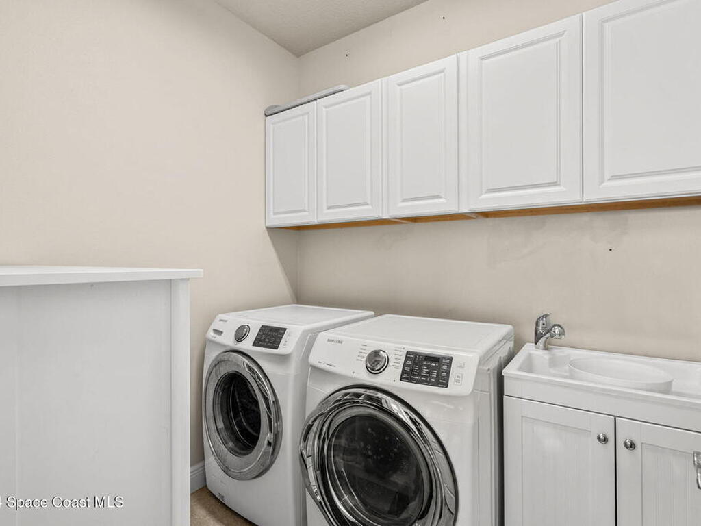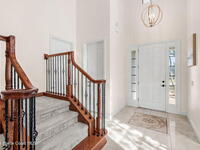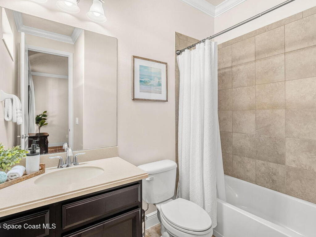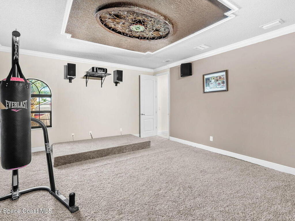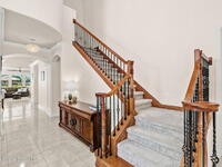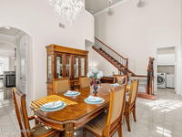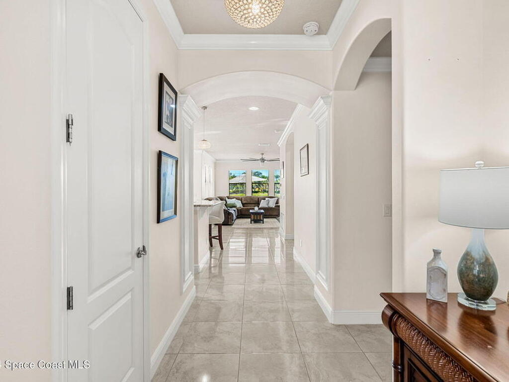 Brand NEW ROOF just installed! Located in the prestigious Strom Park in West Viera, you'll find this beautiful 5 bedroom two story home. We are calling this one ''Peace on the Pond'' with its' gorgeous lot offering incredible sunsets, along with tranquil lake and natural views. Built in 2015 with over 3100' square feet of living space, there is plenty of room for the whole family to relax, entertain and enjoy. Well appointed with upgrades such as granite, 8' doors, crown molding, rich wood cabinetry, custom closets, glass tile accent walls, and an electric feature fireplace. An open layout, multiple living and dining options and abundant storage allows elegance to meet practicality. Downstairs you'll find the Primary suite along with a second bedroom/en-suite~perfect for multi-generational living, home office or gym. One of the 3 upstairs bedrooms is oversized and used for a Home Theatre (all equipment conveys!) Impact windows on the front of the home and the second story.