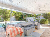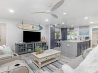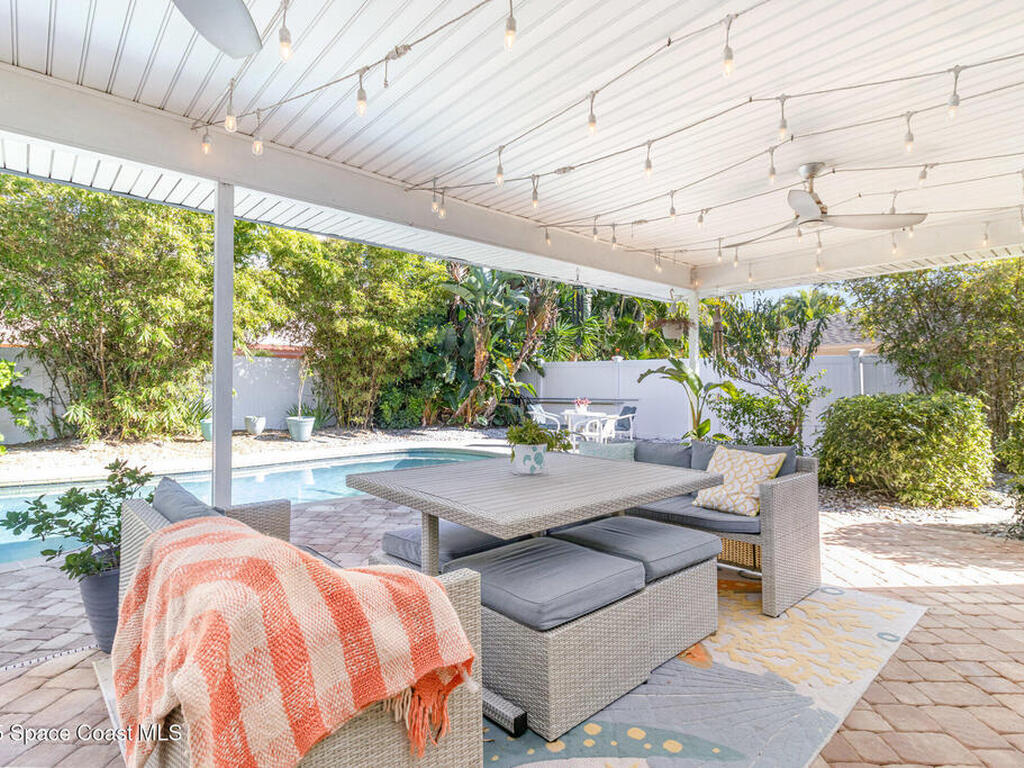 ONE block from the beach & directly across from a beach access park, this TURNKEY home on a rare double lot blends coastal living with confidence! A full 2020 interior renovation of kitchen, baths, flooring, and lighting for bright, easy living. Major upgrades deliver peace of mind: impact windows, doors, and sliders. Whole house Generac generator with transfer switch. New hurricane-rated garage door & fire rated fiberglass interior door to house. Owned whole home water filtration system. Roof 2017 and AC 2020 with UV light (2024). Owned security system with high end cameras. Outside, a large covered lanai overlooks a private salt water pool with new electric heater and pump for year round swimming. 2024 brought the heater, pump, filtration, and garage opener. 2025 added three new impact exterior doors and a paver driveway extension. In this area and price point, few homes check this many boxes. Start your own paradise story today!
