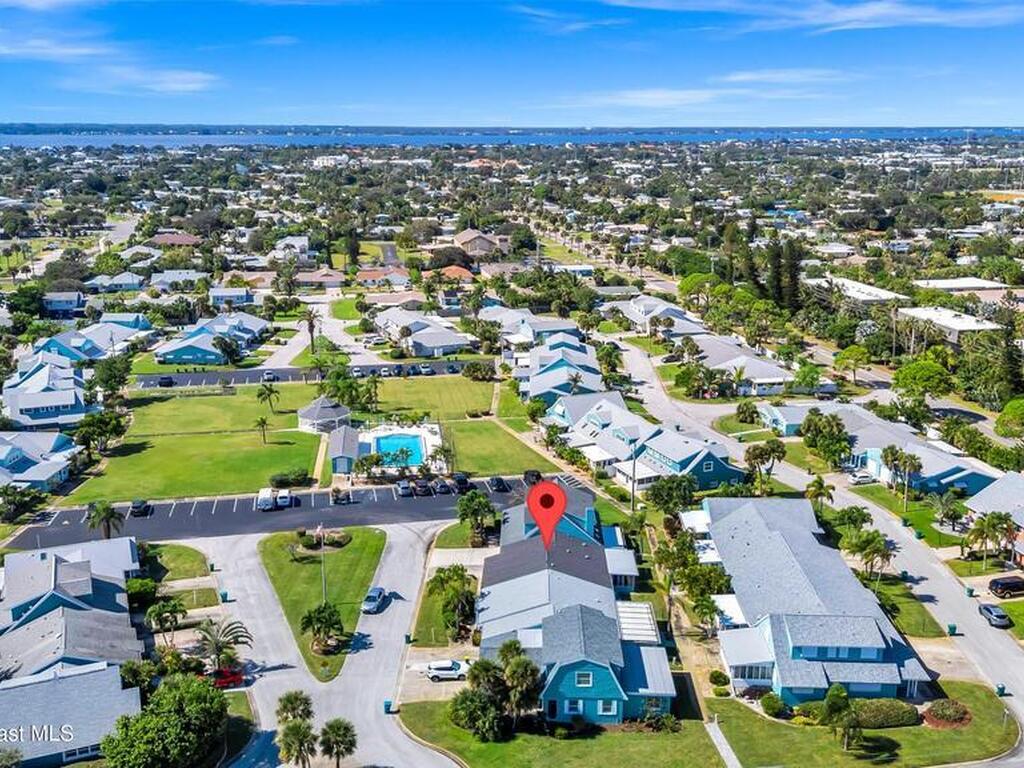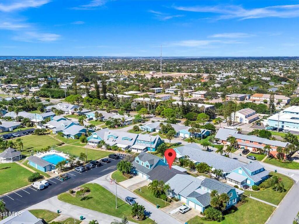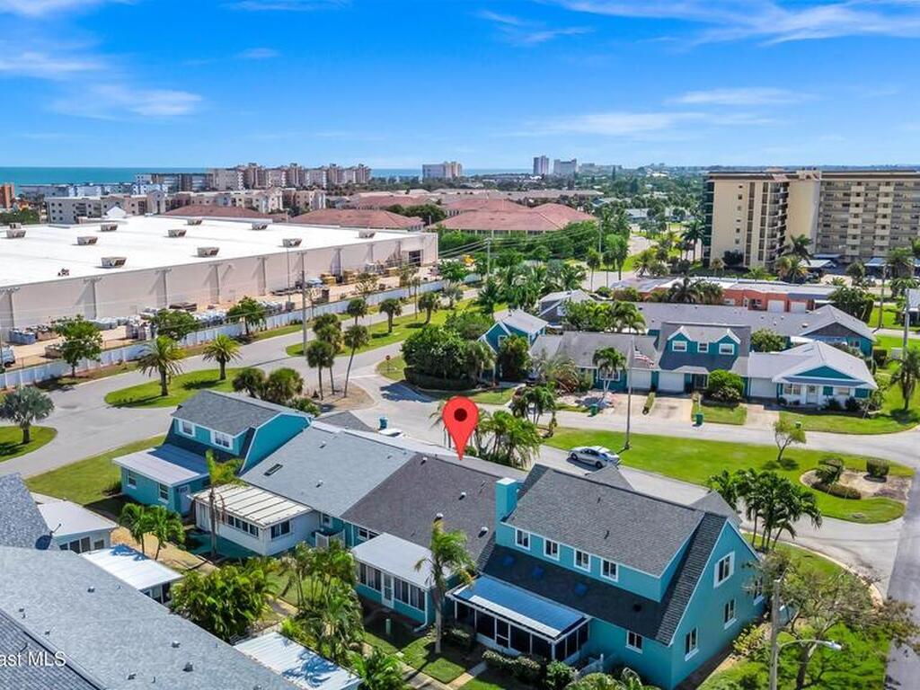 ~~One or more photos were virtually staged~~Welcome to an updated townhouse opportunity in the desirable Town Home Estates community. This 2-bedroom, 1.5-bathroom home offers proximity to the coast, situated less than a third of a mile from the public beach at Bicentennial Park and just one block from the vibrant A1A shopping and dining scene. The location also provides easy access to Patrick Space Force Base, approximately 15 minutes away.The home features a fully updated kitchen with elegant granite countertops and KraftMaid cabinets. Both bathrooms have been tastefully remodeled, and the bright Florida room, complete with durable wood-look tile floors and glass windows, offers an inviting space to relax. Major updates provide peace of mind, including a full roof and sky light replacement in 2025 and new Low-E vinyl impact windows installed in 2013. Low HOA fees of just $185 per month cover essential lawn maintenance and access to the sparkling community pool.