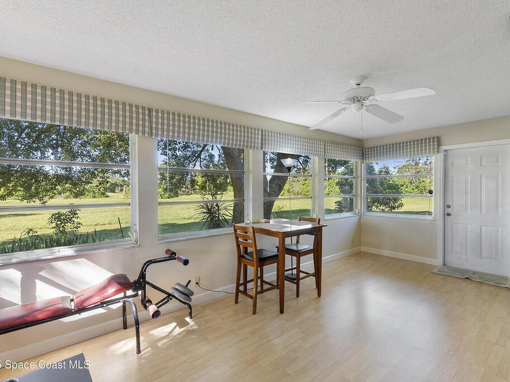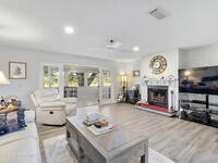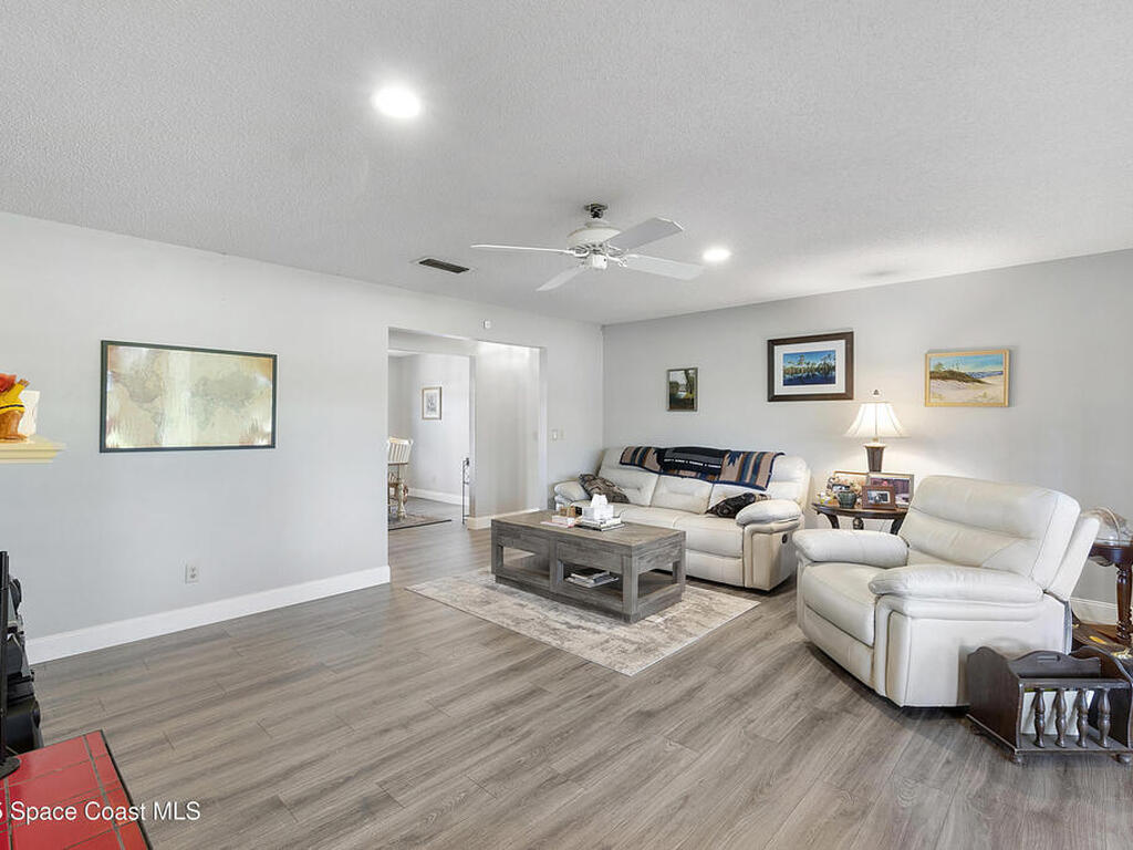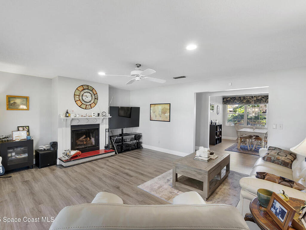 Welcome to this beautifully maintained concrete block home, featuring thoughtful updates and inviting living spaces. Located on a quiet street, in an established and desirable golf course front community. This home features a new roof (2022), luxury vinyl plank floors, fresh paint, kitchen w/ SS appliances and pantry, a sprinkler system on reclaimed water, a 2 car garage and so much more. The entry foyer leads into a formal DR, ideal for gatherings and a spacious LR highlighted by a wood burning fireplace. French doors from the LR lead into a light-filed 10 X 19 Florida room (under air) overlooking the historic Royal Oak Golf Course, creating a serene backdrop for everyday living. The generous primary suite offers a walk in closet, step in shower and ample room to unwind. Split floor plan and home is move in ready! With its blend of character, updates and a picturesque setting this home is ready to welcome its next owner! Close to beaches, KSC, Orlando & theme parks!
