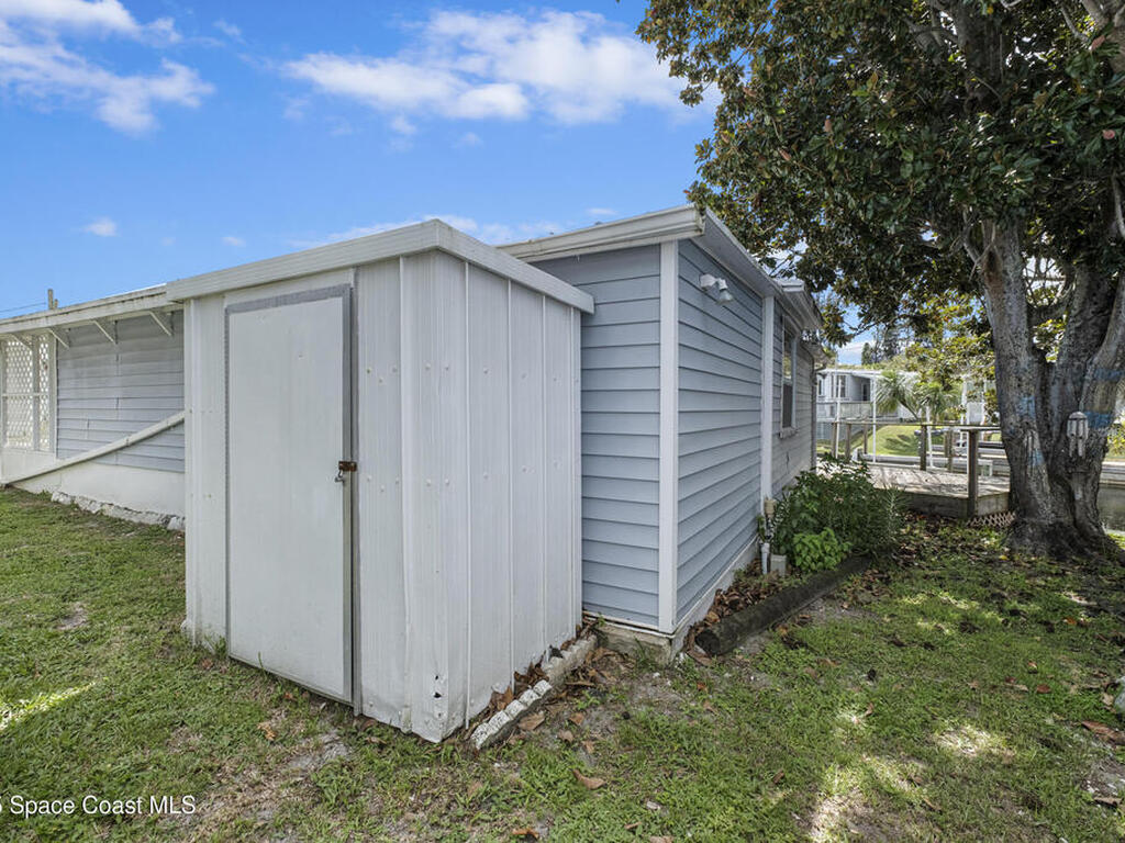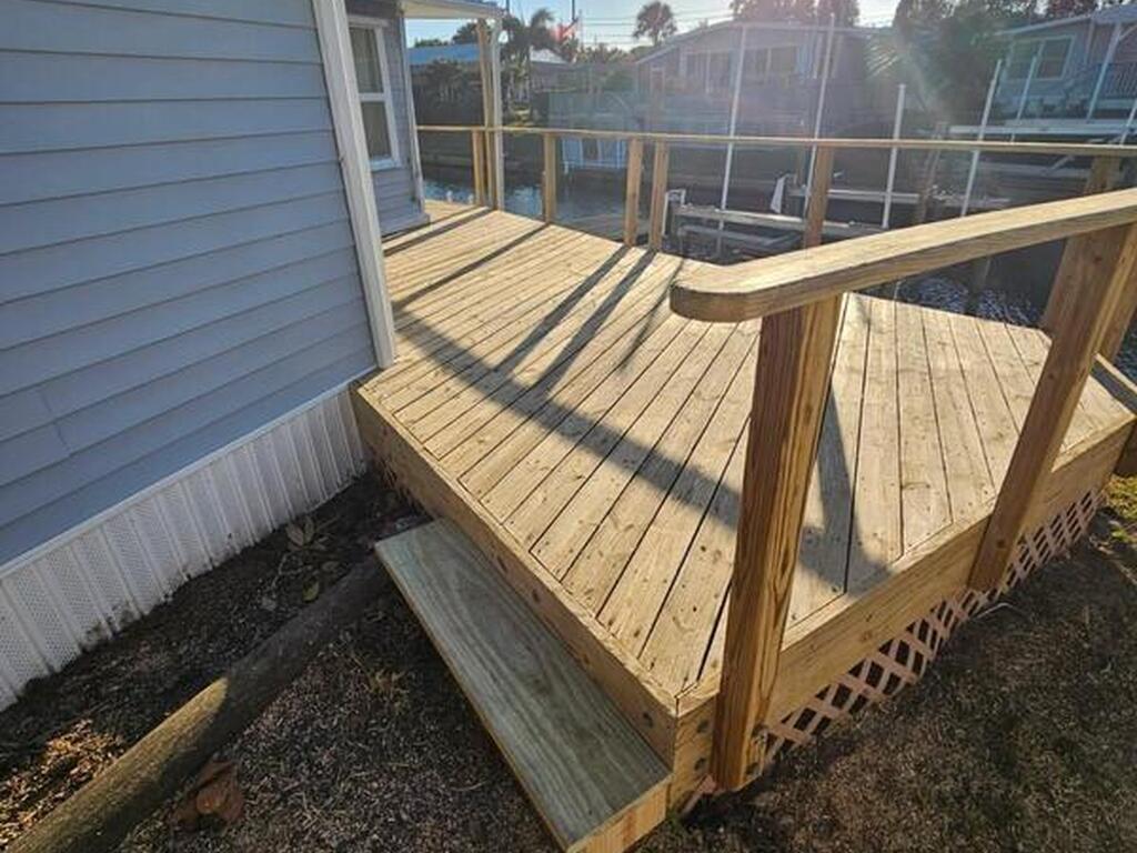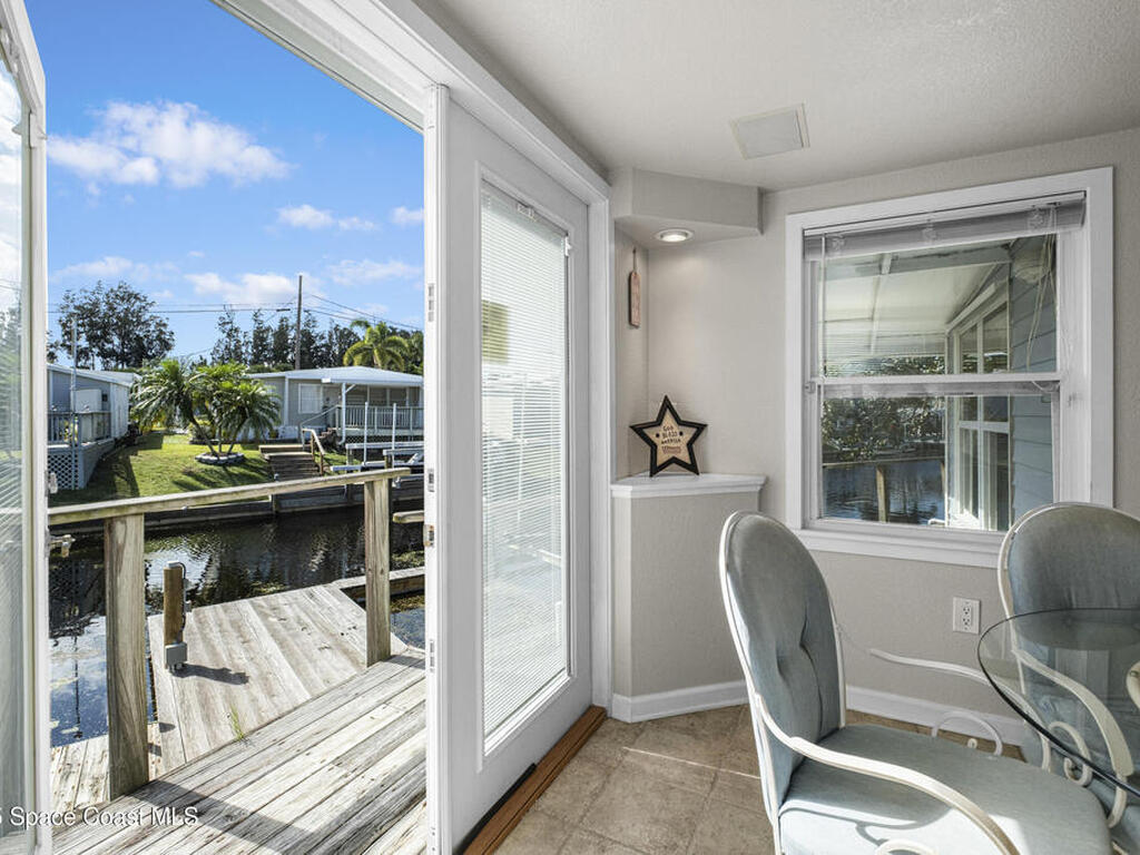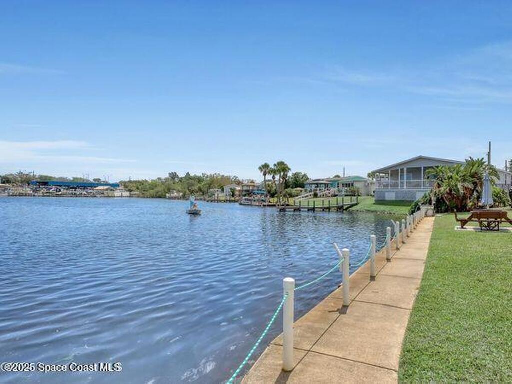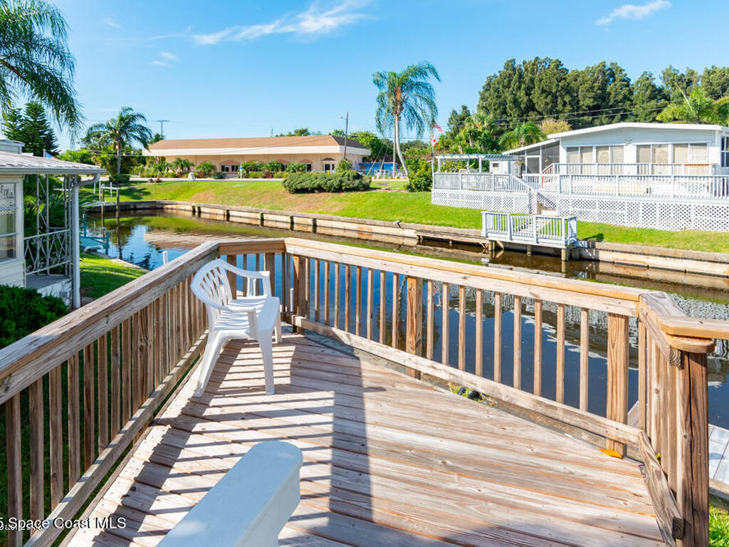 Welcome Home! NO LOT RENT. Everything is done. Move right in. SO MANY UPDATES AND DEFERRED MAINTENANCE ITEMS COMPLETED. ITS LIKE NEWStep into this beautifully remodeled 2-bedroom, 2-bath manufactured home--where nothing remains from its original build. This is truly a rare find in the resident-owned 55+ Palm Bay Estates community: you own the land, there's no lot rent, and you're right on a deep-water canal with your own private dock and electric boat lift leading out to the Indian RiverInside, you'll love the bright, open floor plan, tile floors throughout, newer windows, and 2x4 framed walls with drywall for a solid, site-built feel. Every inch has been thoughtfully upgraded for comfort, style, and easy waterfront living.Enjoy peaceful mornings or stunning sunsets on the wrap-around deck with French doors opening from the dining area looking at dolphins, manatees, and fish jumping . Close to several amazing restaurants and retail. Golf Cart friendly and beautifully maintained.