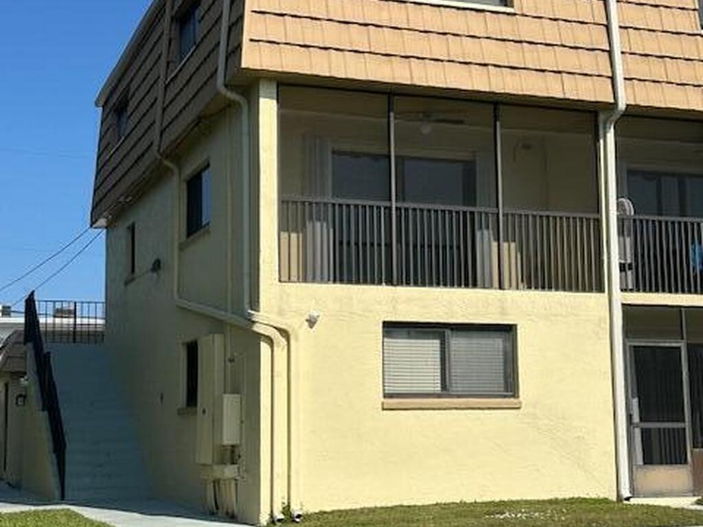 Step into coastal living with this stunning 2-bedroom, 1.5-bathroom condo located just one block from the beach! Perfect as a primary home, vacation getaway, or investment property, this unit blends comfort, style, and an unbeatable location. Updated kitchen with stainless steel appliances and granite countertops and oversized sink. Tile floors throughout the living area and beautiful screened back porch. A/c and water heater just over a year new. Quiet complex located in the heart of Cape Canaveral.