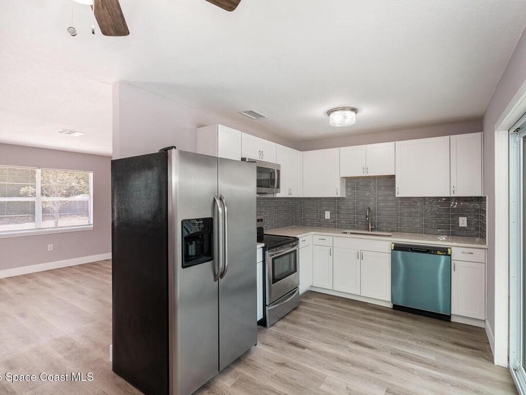 Nestled in the heart of a Melbourne neighborhood, this gem features three bedrooms/two bathrooms. Vinyl flooring stretches throughout the home, and the kitchen comes with a stainless steel dishwasher, microwave, and stove. Outside, indulge in the FL lifestyle with a shimmering pool and a spacious backyard, presenting endless possibilities for outdoor fun and leisure. The 2024 roof overhead offers peace of mind, while the back slider door grants a seamless transition to the enclosed patio, where you can savor the picturesque surroundings. For those with a love for exploration and culture, this home is just moments away from the vibrant Eau Gallie Arts District, breathtaking beaches, and the serene Indian River, ensuring every day is an opportunity for a new coastal adventure. The absence of HOA restrictions adds to the allure, providing the freedom to truly make this space your own.