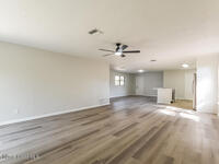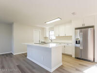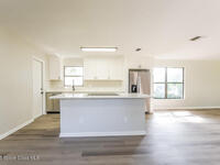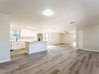 It's time to come home to this beautifully renovated 4 bedroom, 2 bath home in one of Titusville's most desirable neighborhoods! The gently curving driveway and mature landscaping invite you to see what's inside. A wide open floorplan greets you at the front door featuring a fully updated kitchen, expansive dining area and large family room. A wide foyer and short hallway separate the 4 bedrooms and 2 baths from the rest of the house lending privacy and serenity. This home has been thoughtfully updated with fresh interior AND exterior paint, modern light fixtures and fans, and a new HVAC system. The kitchen has been fully remodeled with attractive new cabinets, gleaming stainless appliances, a convenient island cooktop, and handsome quartz countertops. New flooring throughout includes chic luxury vinyl plank in the common areas and lush carpeting in the bedrooms. This is a must-see opportunity. Explore the possibilities!