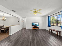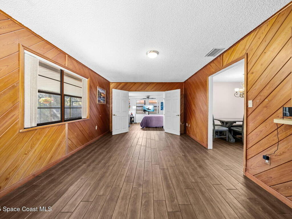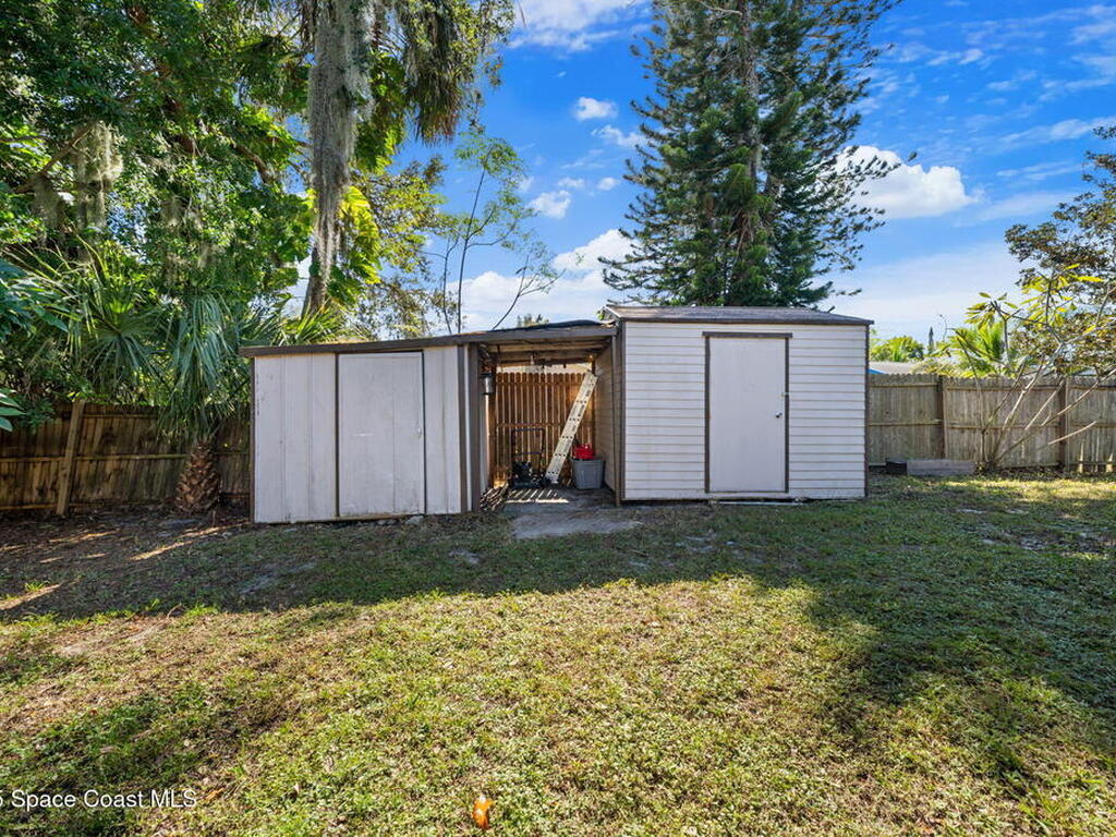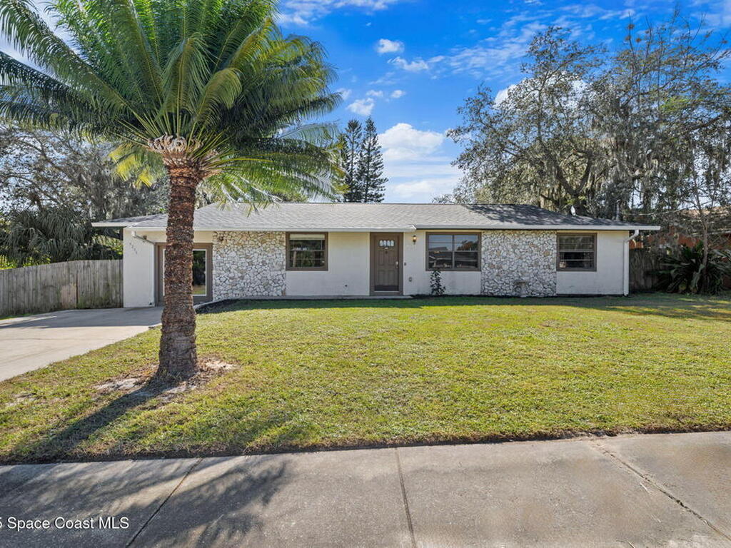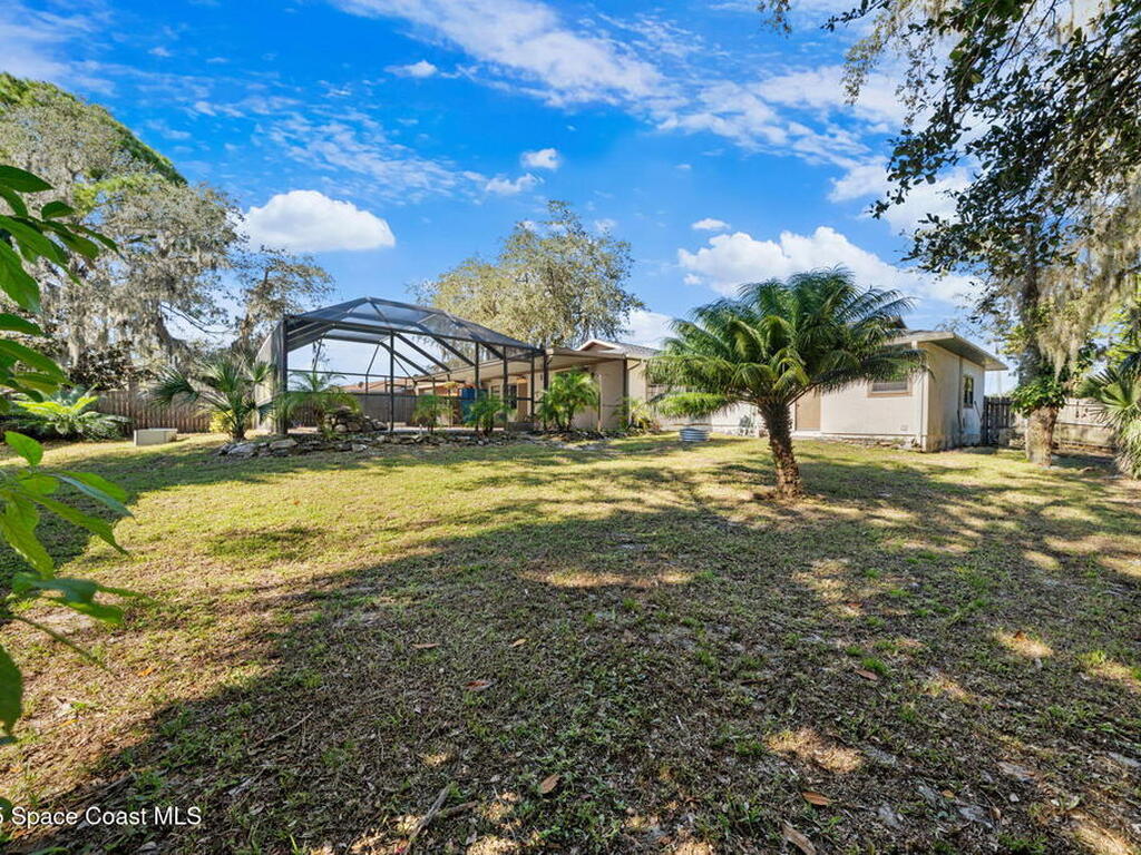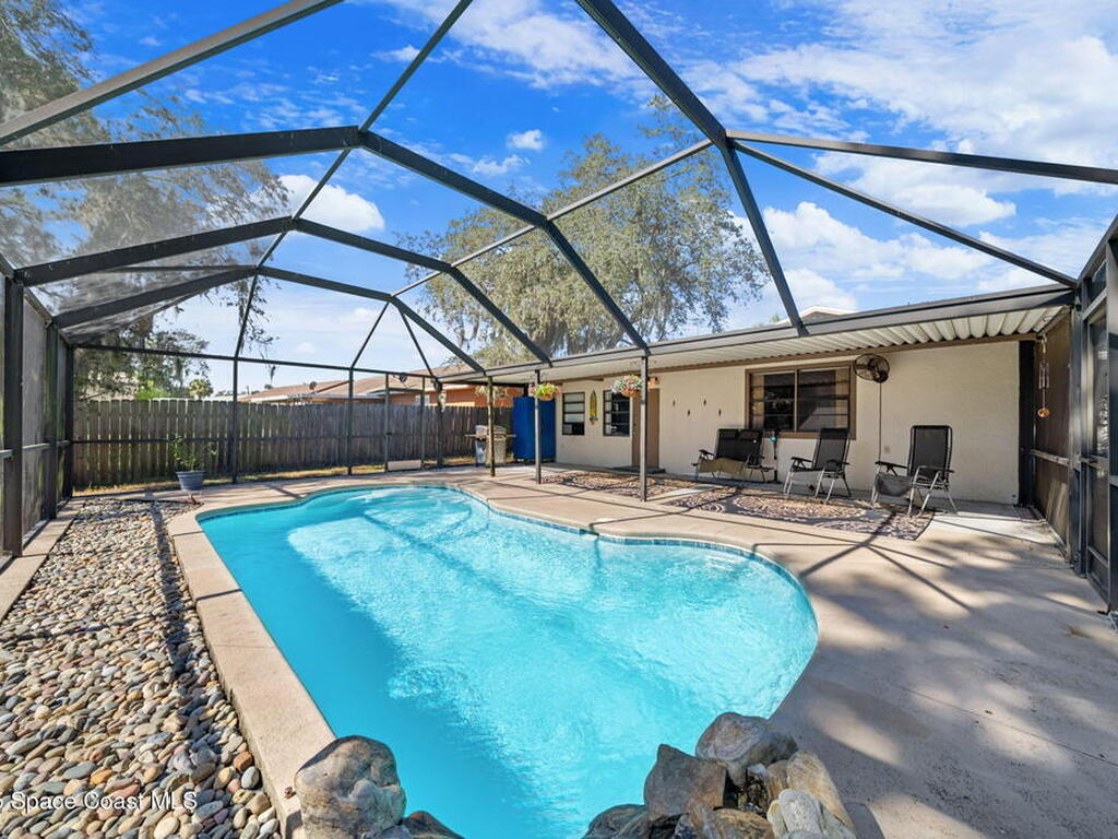 Dive into Florida living with this spacious Port St John pool home on a fenced .26-acre CORNER LOT! Enjoy a SCREENED POOL with tranquil waterfall feature, RESURFACED in 2023 ($10k), plus plenty of patio space for lounging and entertaining friends. Big-ticket items are already done: SEPTIC SYSTEM REPLACED IN 2020 and NEW ROOF and GUTTERS IN 2022, plus the peace of mind of CITY WATER. Inside, you'll find 4 bedrooms PLUS a 20 ft x 13 ft bonus room, a main living room PLUS a 2nd large living room/den--perfect for a home office or flex space. Easy-care flooring throughout and NO CARPET. Brand new vinyl flooring in the primary bedroom. Wood look tile throughout the kitchen, dining, 2nd living area and 4th bedroom. Flooring replaced throughout the living room and other bedrooms within the last 5 years. The backyard offers room to roam, with 2 outdoor storage sheds for tools, toys, or hobbies. Over 2, 100 sq ft--move in and start enjoying that Florida lifestyle!