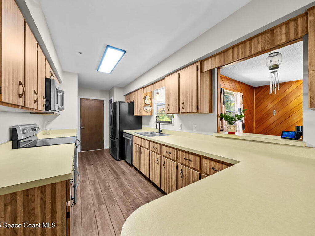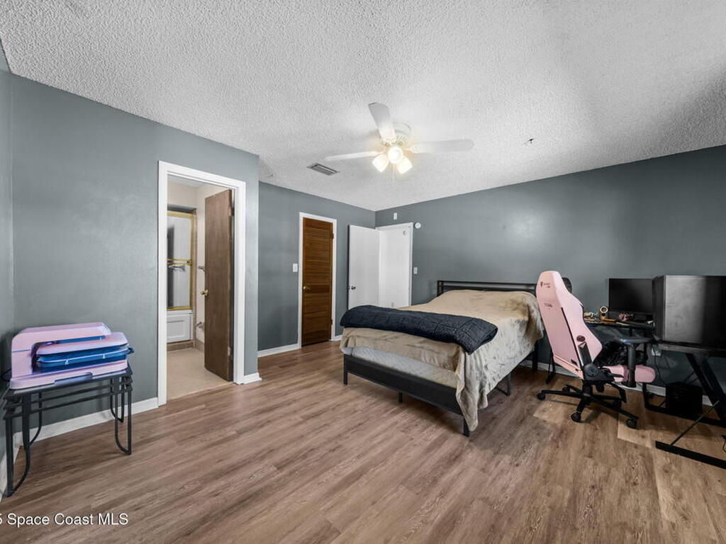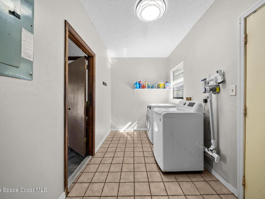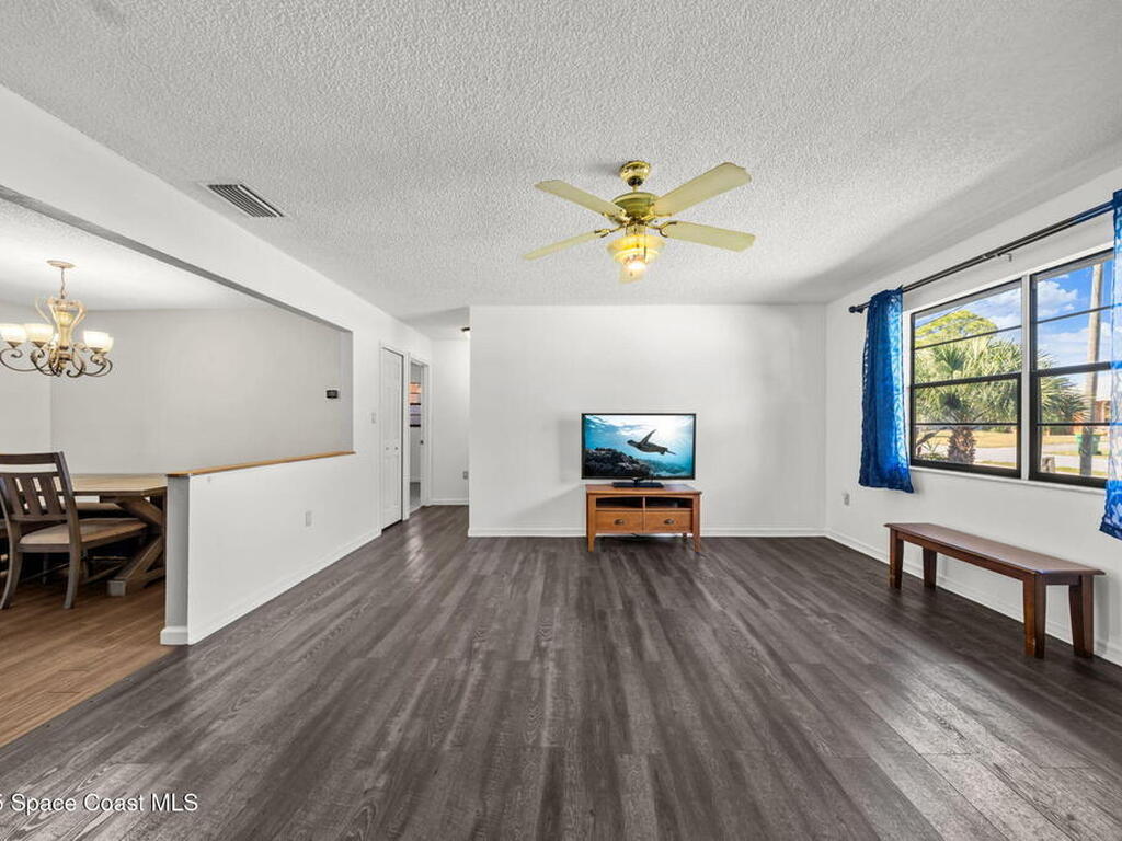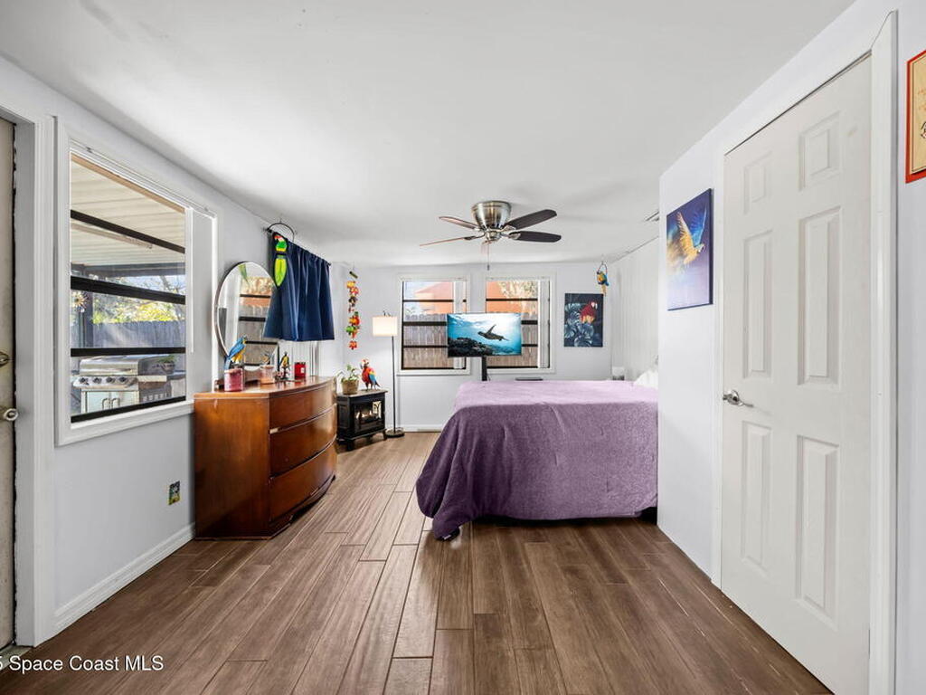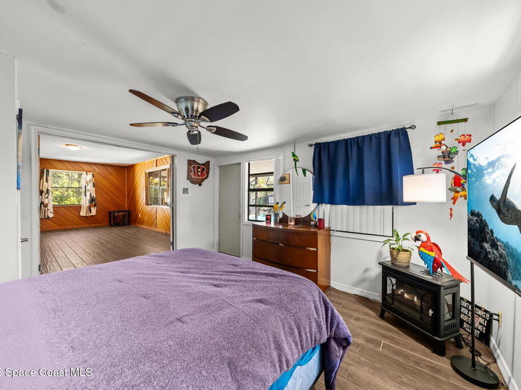 Dive into Florida living with this spacious Port St John pool home on a fenced .26-acre CORNER LOT! Enjoy a SCREENED POOL with tranquil waterfall feature, RESURFACED in 2023 ($10k), plus plenty of patio space for lounging and entertaining friends. Big-ticket items are already done: SEPTIC SYSTEM REPLACED IN 2020 and NEW ROOF and GUTTERS IN 2022, plus the peace of mind of CITY WATER. Inside, you'll find 4 bedrooms PLUS a 20 ft x 13 ft bonus room, a main living room PLUS a 2nd large living room/den--perfect for a home office or flex space. Easy-care flooring throughout and NO CARPET. Brand new vinyl flooring in the primary bedroom. Wood look tile throughout the kitchen, dining, 2nd living area and 4th bedroom. Flooring replaced throughout the living room and other bedrooms within the last 5 years. The backyard offers room to roam, with 2 outdoor storage sheds for tools, toys, or hobbies. Over 2, 100 sq ft--move in and start enjoying that Florida lifestyle!