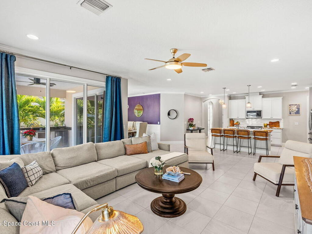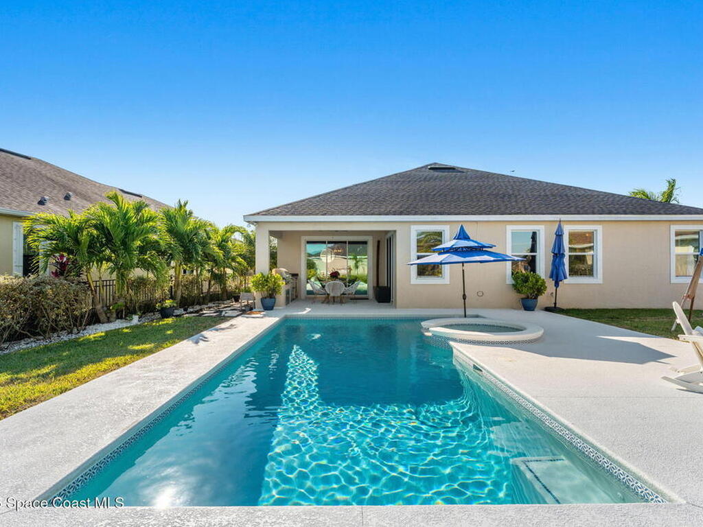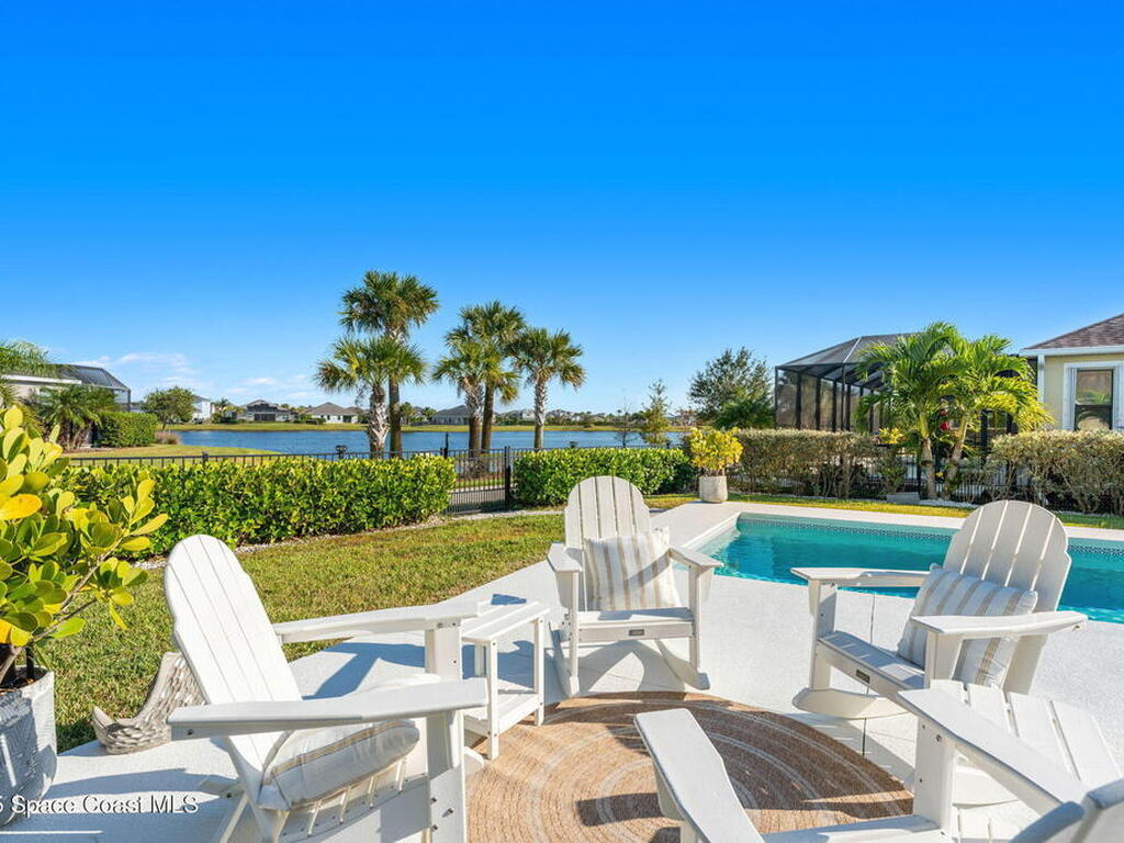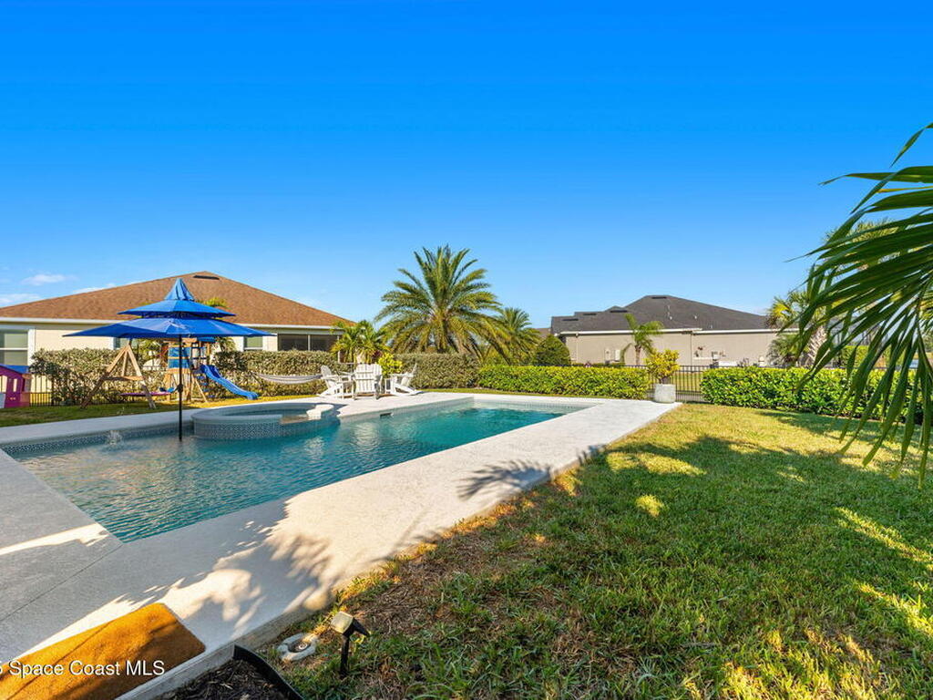Hello to the Siesta Floor Plan!This impressive waterfront heated pool home is located in the highly desirable Trasona community of West Viera! Offering 4 bedrooms, 2 bathrooms, and a spacious 3-car garage across 2, 154 sq. ft. of comfortable living space.Step outside to your private oasis featuring a 15x30 heated saltwater pool and spa, already equipped with footers for a future screen enclosure. Inside, enjoy a no carpet design: beautiful tile flooring highlights the main living areas and kitchen, while high quality LVP adds warmth and durability to all bedrooms.The fenced backyard provides peaceful water views, perfect for morning coffee or evening gatherings. The epoxy-floored 3 car garage is an upgrade lover's dream, complete with a 240V outlet for EV charging, mini-split cooling system, and additional insulation for comfort and efficiency.