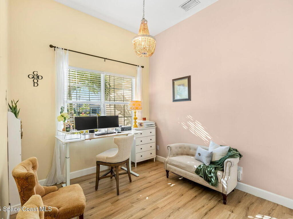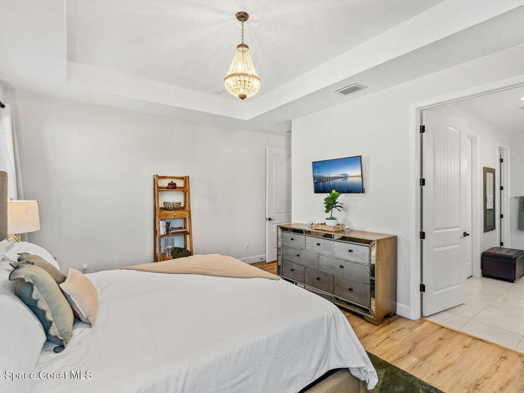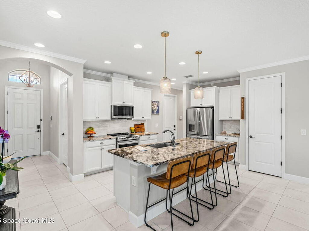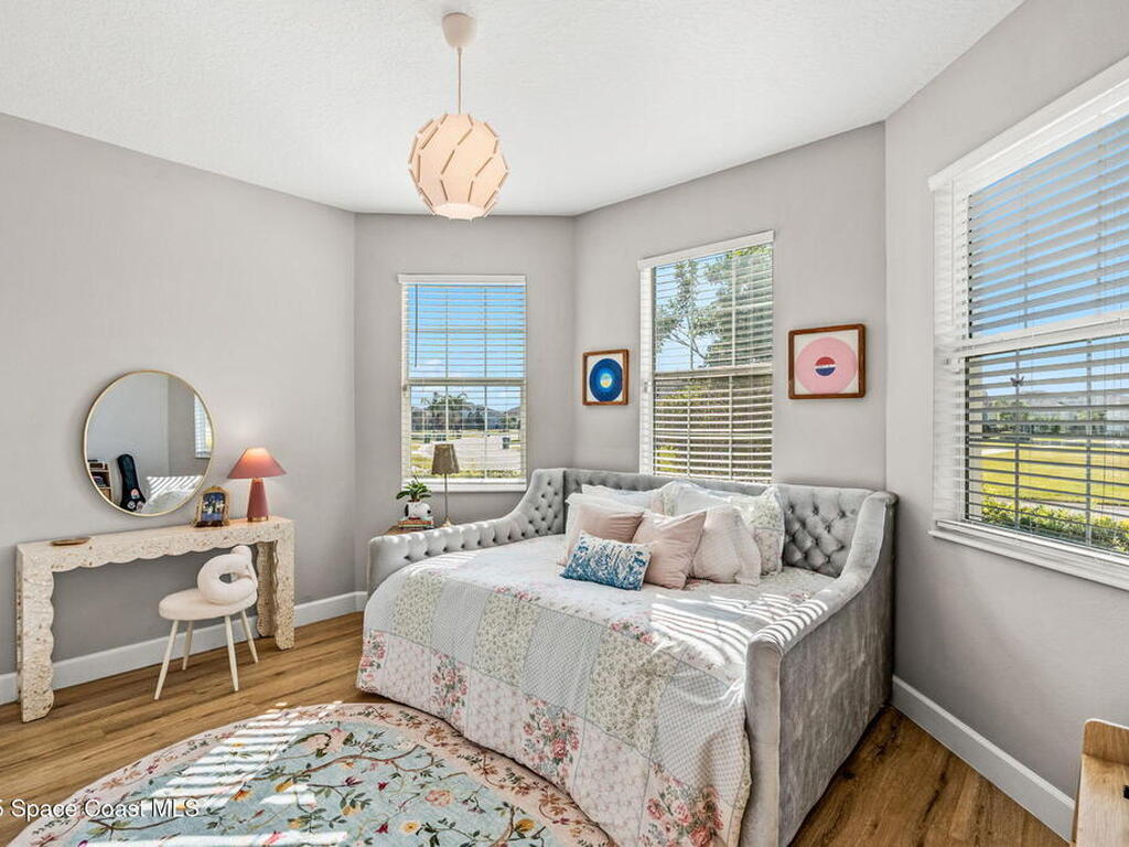 Hello to the Siesta Floor Plan!This impressive waterfront heated pool home is located in the highly desirable Trasona community of West Viera! Offering 4 bedrooms, 2 bathrooms, and a spacious 3-car garage across 2, 154 sq. ft. of comfortable living space.Step outside to your private oasis featuring a 15x30 heated saltwater pool and spa, already equipped with footers for a future screen enclosure. Inside, enjoy a no carpet design: beautiful tile flooring highlights the main living areas and kitchen, while high quality LVP adds warmth and durability to all bedrooms.The fenced backyard provides peaceful water views, perfect for morning coffee or evening gatherings. The epoxy-floored 3 car garage is an upgrade lover's dream, complete with a 240V outlet for EV charging, mini-split cooling system, and additional insulation for comfort and efficiency.