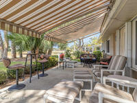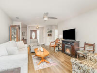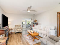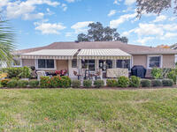 Located in a resort-style country club community offering top-notch amenities and an exceptional Florida lifestyle, this expanded Bangor model features a 2/2/2 split floor plan and numerous high-value updates. A new roof and gutters with leaf guards were installed in 2022, complemented by luxury vinyl flooring throughout. The home boasts a large back patio overlooking the 4th fairway with a serene water view, enhanced by two electric awnings for added comfort. In 2025, the kitchen was upgraded with beautiful quartz countertops, along with updated electrical outlets featuring dimmers and convenient charging hubs. Additional improvements include updated windows and front door, hurricane shutters, and a 2024 solar attic fan. The guest bedroom offers a built-in Murphy bed with shelving, while the spacious primary suite includes an en suite bath with a roll-in shower. Updated ceiling lights, modern fans, and a 2025 programmable thermostat complete this move-in-ready home.