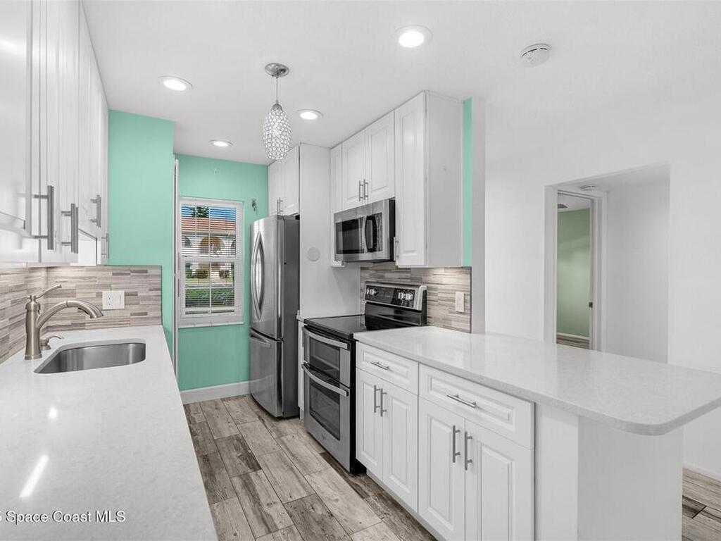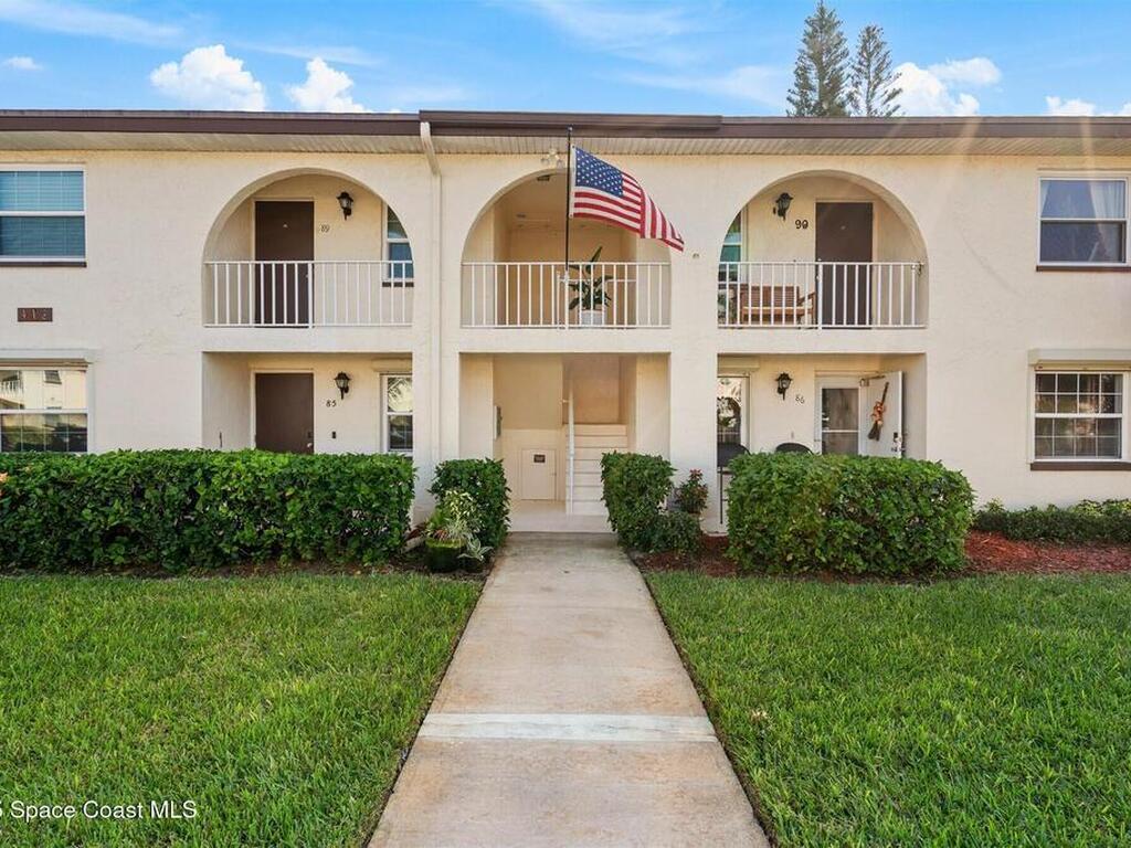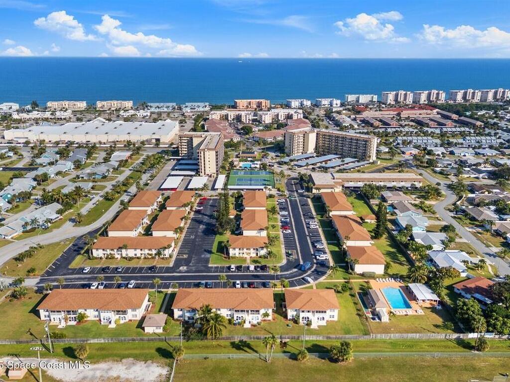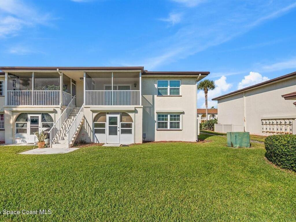 The minute you drive into The Condominiums of Indian Harbour, you can see the pride of ownership reflected in the pristine grounds and buildings. The reserve fund is 100% funded and the condo fees are $475/month for 2026! As you walk into this 2-bedroom, 2 bath end unit on the first floor, you will notice the updated tile flooring throughout and the open concept floor plan. The kitchen has been updated with new cabinets, quartz countertops and modern, stainless appliances. Other special features include: Low-E impact windows plus roll down shutters) ring doorbell and keyless/key entry lock, tankless water heater, washer and dryer in the unit, ceiling fans, freshly painted and so much more. There is a large community pool area with restrooms and shaded and sunny areas for relaxation. A short walk to the beach, restaurants and stores, make this the perfect spot for year-around or snowbird living. THIS IS A 55+ COMMUNITY.