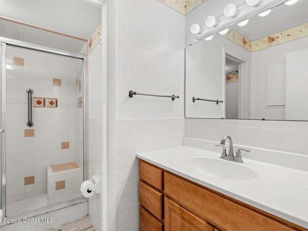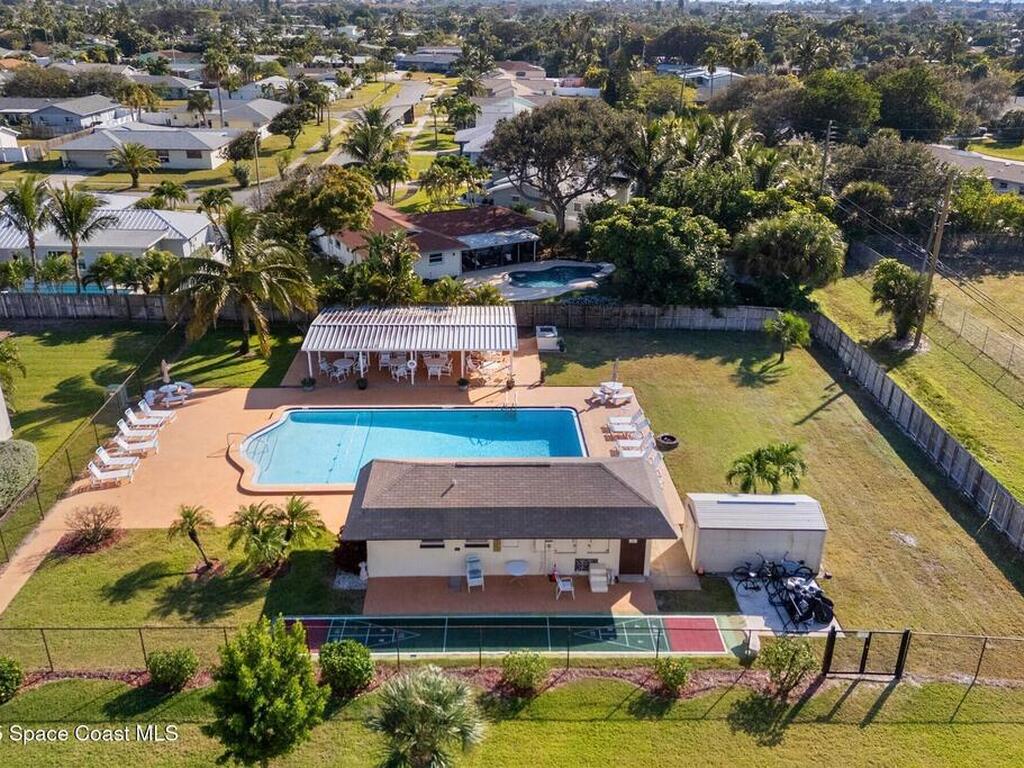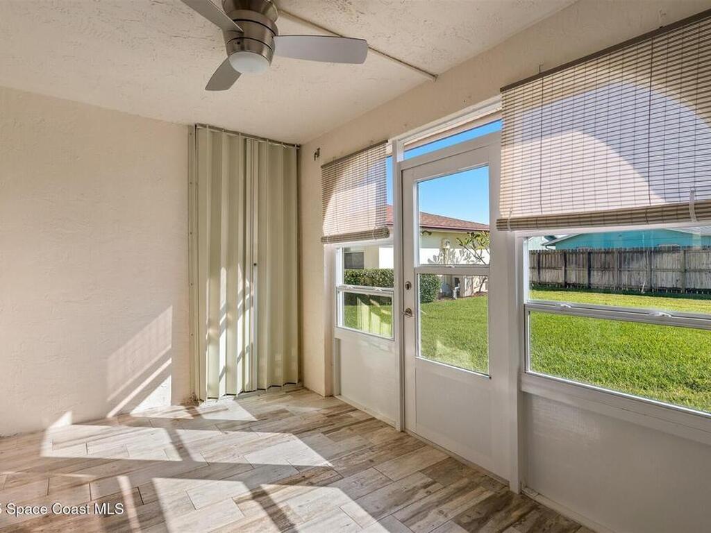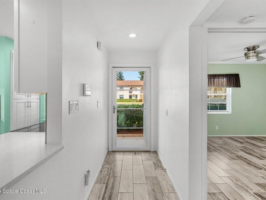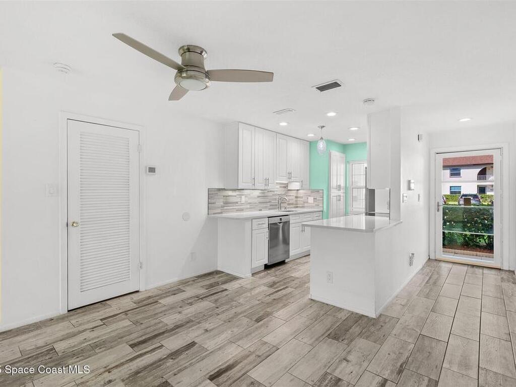 The minute you drive into The Condominiums of Indian Harbour, you can see the pride of ownership reflected in the pristine grounds and buildings. The reserve fund is 100% funded and the condo fees are $475/month for 2026! As you walk into this 2-bedroom, 2 bath end unit on the first floor, you will notice the updated tile flooring throughout and the open concept floor plan. The kitchen has been updated with new cabinets, quartz countertops and modern, stainless appliances. Other special features include: Low-E impact windows plus roll down shutters) ring doorbell and keyless/key entry lock, tankless water heater, washer and dryer in the unit, ceiling fans, freshly painted and so much more. There is a large community pool area with restrooms and shaded and sunny areas for relaxation. A short walk to the beach, restaurants and stores, make this the perfect spot for year-around or snowbird living. THIS IS A 55+ COMMUNITY.