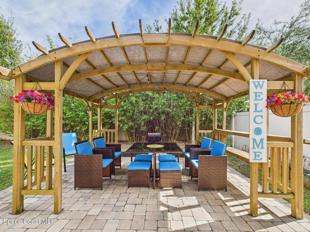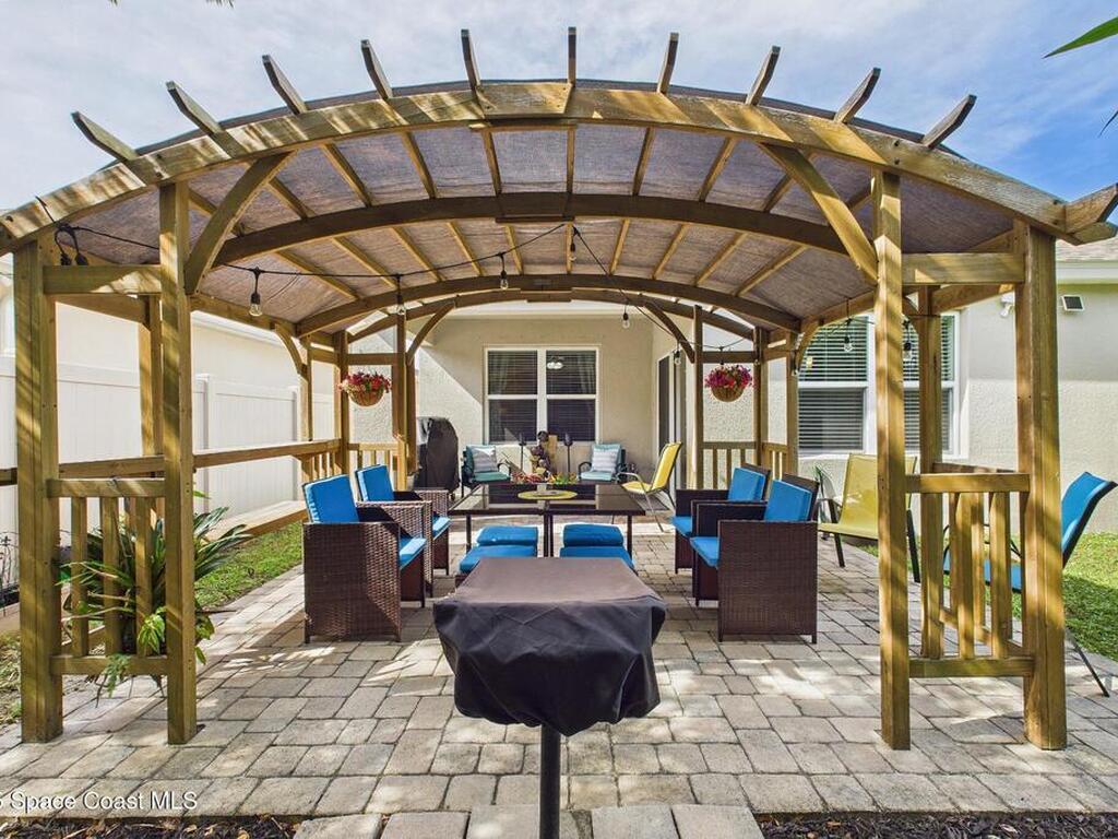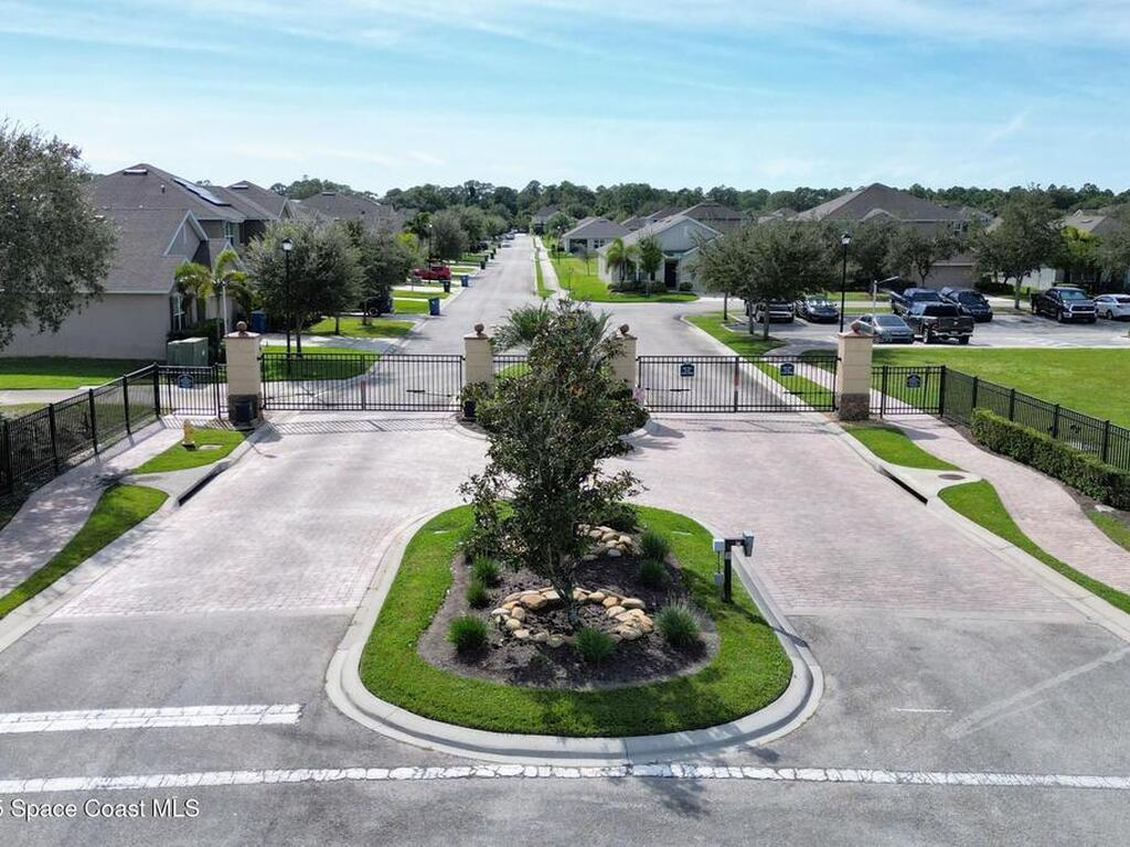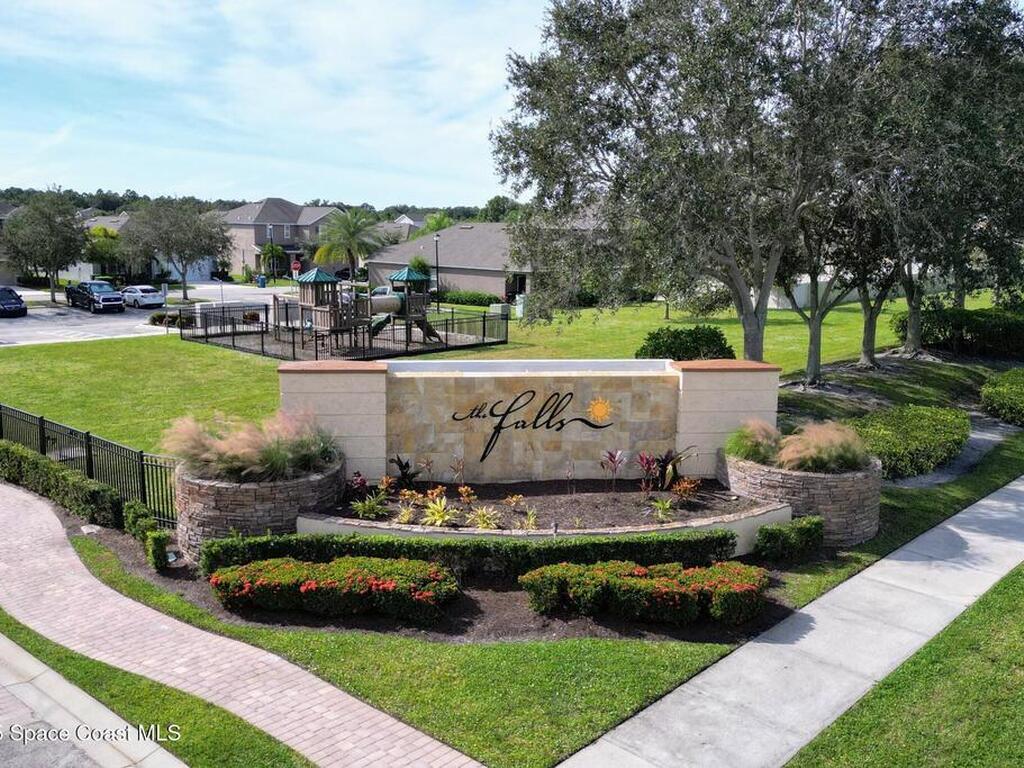 Discover this beautifully maintained three bedroom two bathroom home in the exclusive gated community The Falls of Palm Bay. The open layout features an upgraded kitchen with a new stove, over stove microwave, and deep Delta sink. Ceramic tile flooring extends through the main living areas while the bedrooms offer comfort and privacy. The primary suite includes two walk in closets. Ceiling fans are in all bedrooms and the lighting in the kitchen and hallway has been refreshed. Additional storage is available with attic access in the garage. Step outside to a privatized back yard with a serene paved patio and pergola, and the patio set conveys for added convenience. The exterior was freshly repainted in November of 2025, enhancing the polished appeal of this well cared for residence. The community offers a peaceful setting with convenient access to Malabar Road for easy commutes, along with nearby schools, public transit, shopping, parks, and dining.