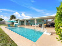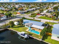 Boater's paradise found on this .24-acre waterfront retreat with direct Banana River access and no bridges to navigate. Positioned on a deep water canal with a 12, 000 lb boatlift and a recent 113' vinyl seawall, this home is built for the coastal lifestyle. Inside, enjoy a thoughtfully updated kitchen, bathrooms, and living areas with bright, open spaces including an enclosed dining room with impact-rated windows and slider. Step outside to the newer saltwater pool, perfect for floating, fun, or post-boat relaxation, and entertain with ease on the expanded patio. The fenced backyard includes a shed, landscaping, and space for pets or outdoor games. Key upgrades include a 2023 metal roof, newer A/C, city sewer (no septic), and no HOA. With 4 bedrooms, 2 bathrooms, and seamless indoor-outdoor flow, this home offers effortless waterway living just a short 10-minute boat ride to the Canaveral Locks. A rare gem for boating, fishing, entertaining, and Florida sun lovers. See it today!