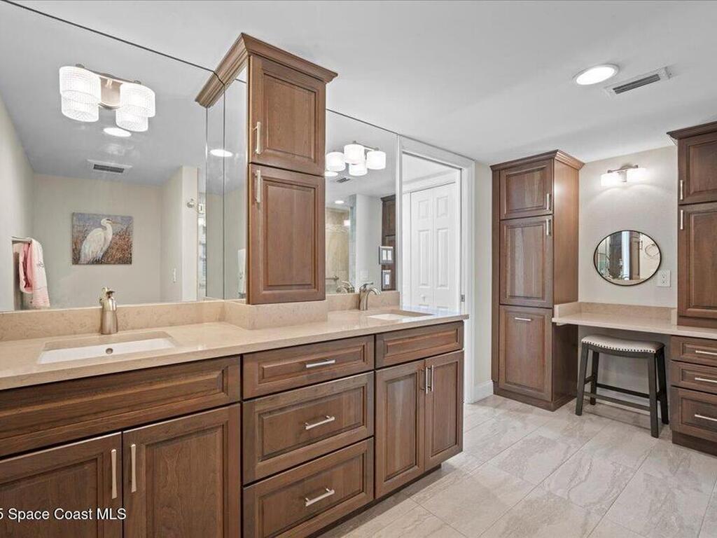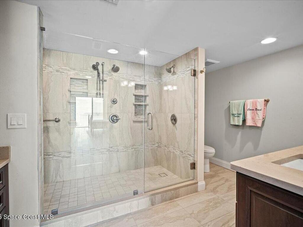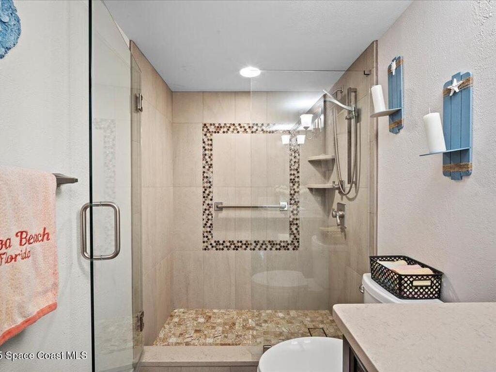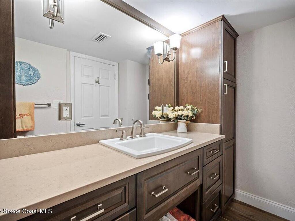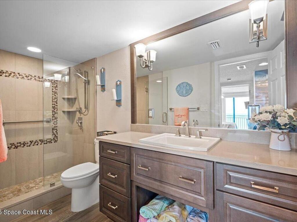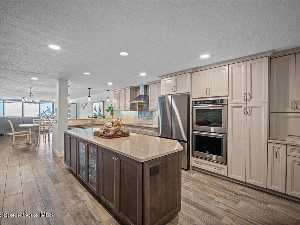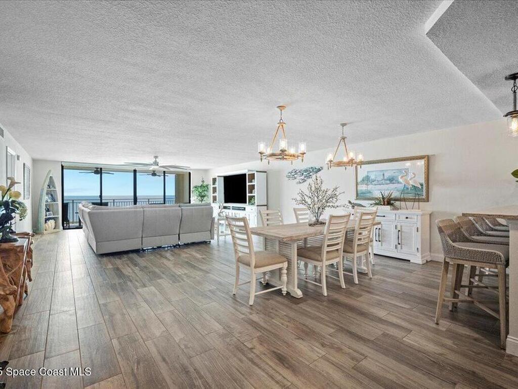 Welcome to The Constellation in South Cocoa Beach, where ocean and river views set the tone for laid-back luxury. This fully renovated condo features a designer kitchen with quartz countertops, stainless appliances, soft-close cabinetry, and a custom backsplash. The open layout flows with wood-look tile throughout. The oceanfront primary suite offers balcony access and a spa-style bath with a walk-in shower and double vanity. Two guest bedrooms face west, offering stunning river views and beautiful sunsets. Community amenities include private beach access, a heated pool, sauna, clubhouse, secure lobby, covered parking, and private storage. All furnishings are negotiable with the sale. Minutes from Downtown Cocoa Beach, Port Canaveral, and Patrick Space Force Base, and under an hour to Orlando International Airport. The Space Coast is thriving with growth driven by NASA, SpaceX, and the tech sector -- making this a smart coastal investment in one of Florida's most exciting markets..