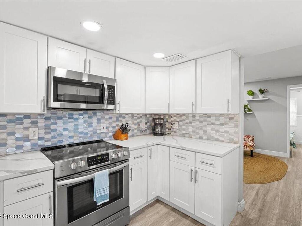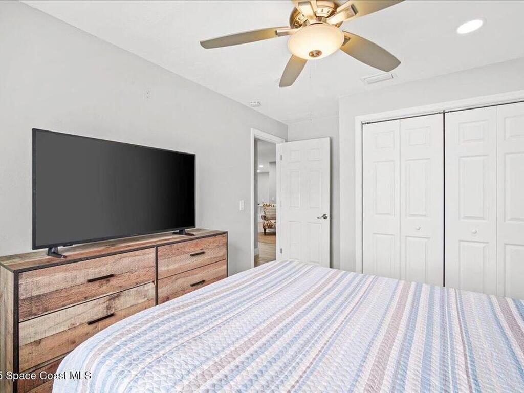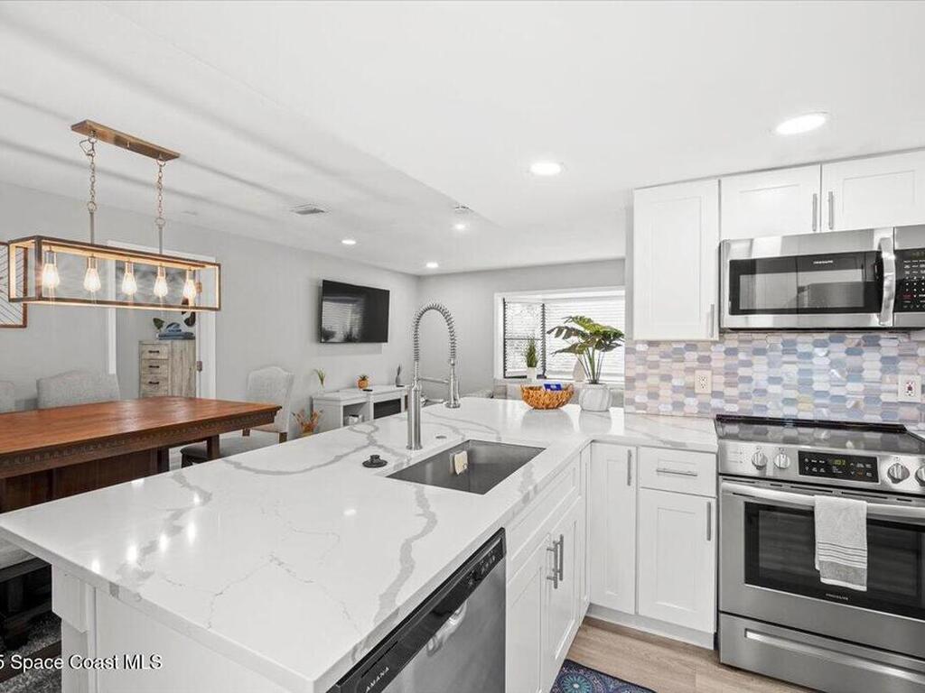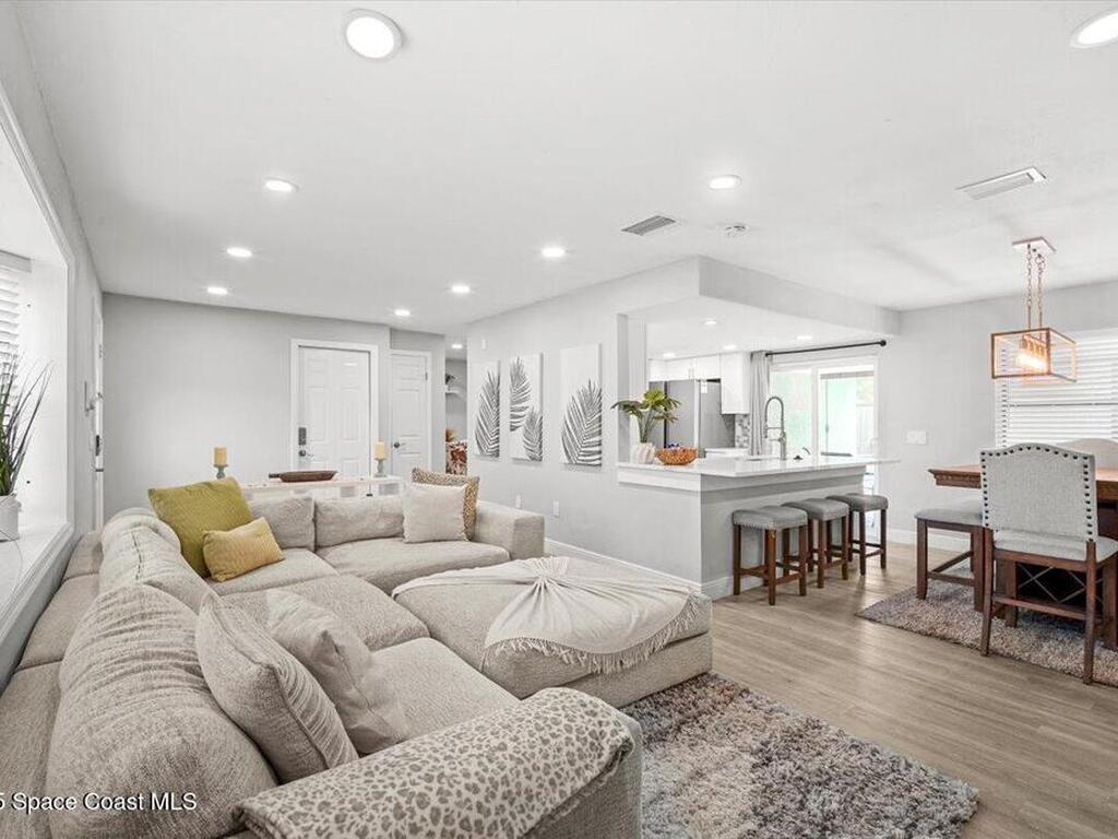Beautifully renovated 4 bed, 2 bath pool home just 4 miles from the beach! This versatile property is perfect as a turnkey Airbnb, long-term rental, or primary residence. VA assumable loan available at 4.13%. Enjoy major upgrades including a 2023 AC, all-new ductwork (2025), and a new pool pump, filter, and chlorinator. The fenced backyard features a screened pool enclosure, and with no HOA, no deed restrictions, and no flood insurance required, you'll have total flexibility. Inside offers LVP flooring, white shaker cabinets, quartz countertops, stainless steel appliances, modern fixtures, LED lighting, and new blinds. A bright, open layout provides pool views from the kitchen, living, and dining areas. The large driveway offers room for boat parking. Located on a quiet street close to parks, trails, schools, hospitals, shopping, and restaurants. Don't miss this beautiful modern coastal retreat!