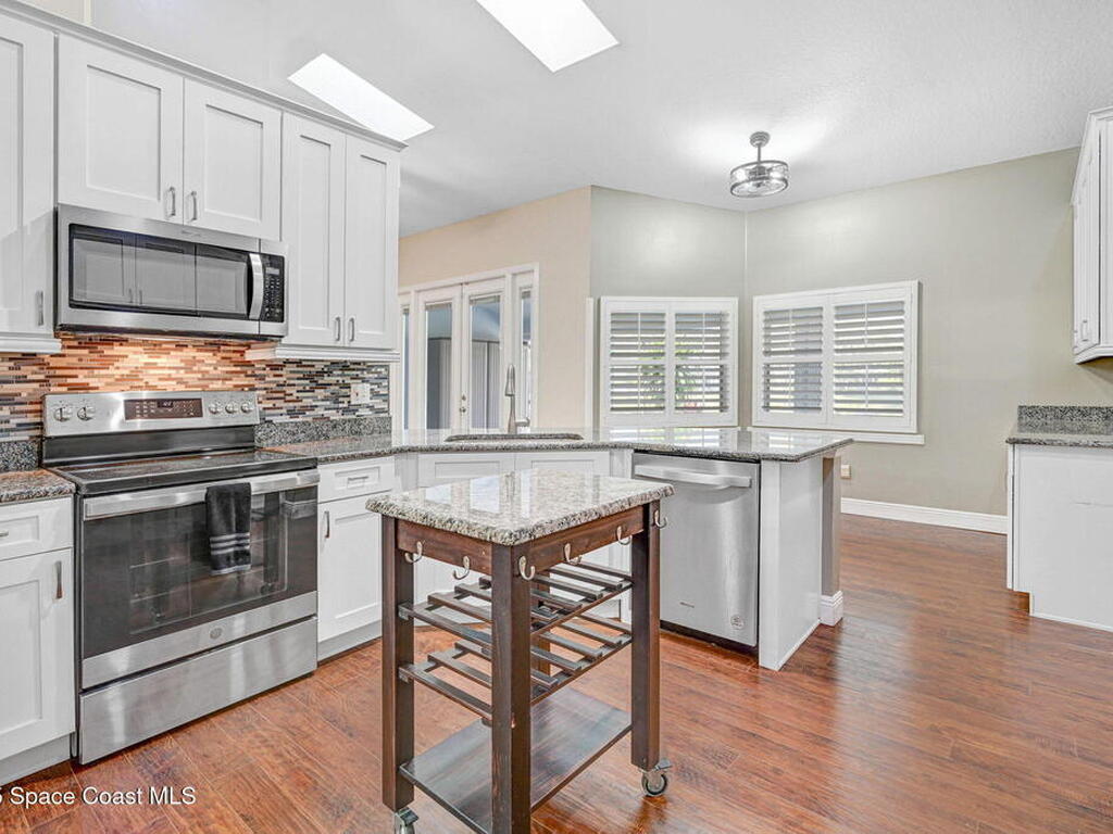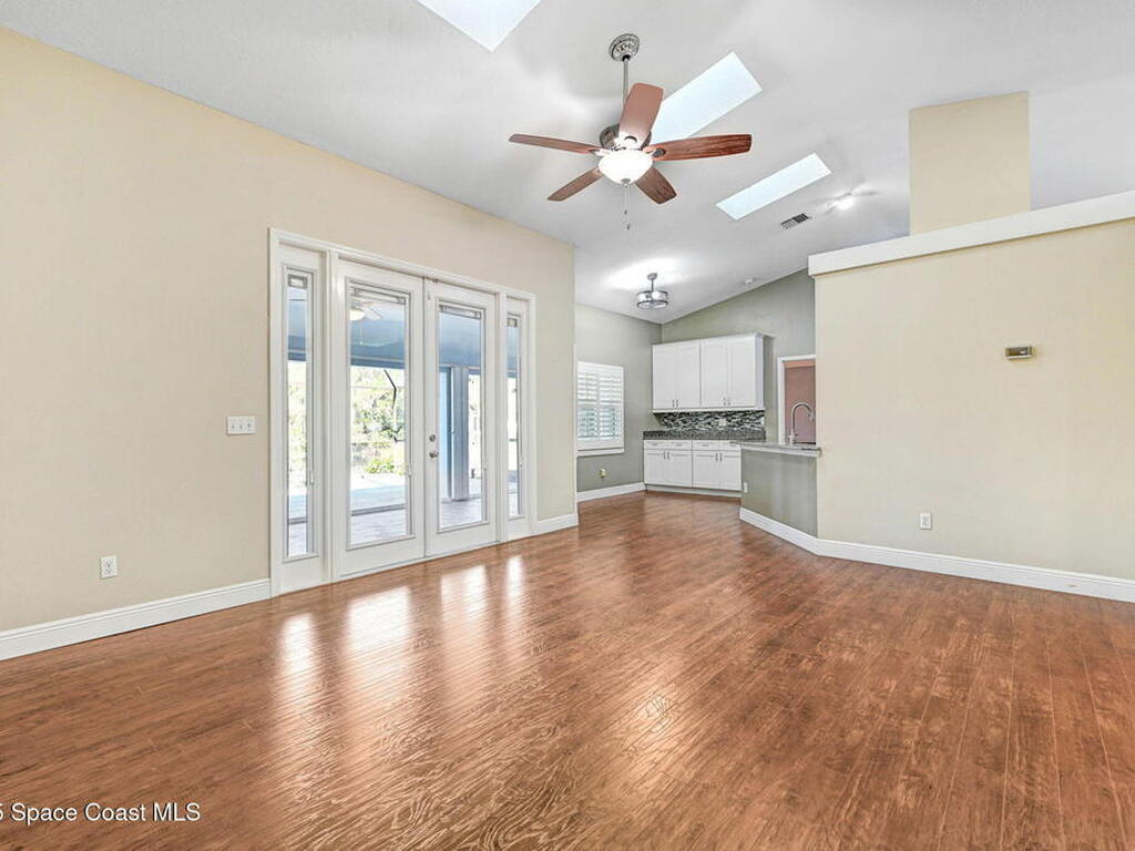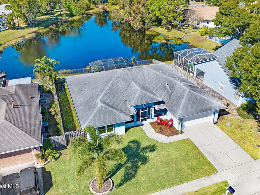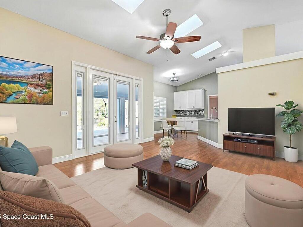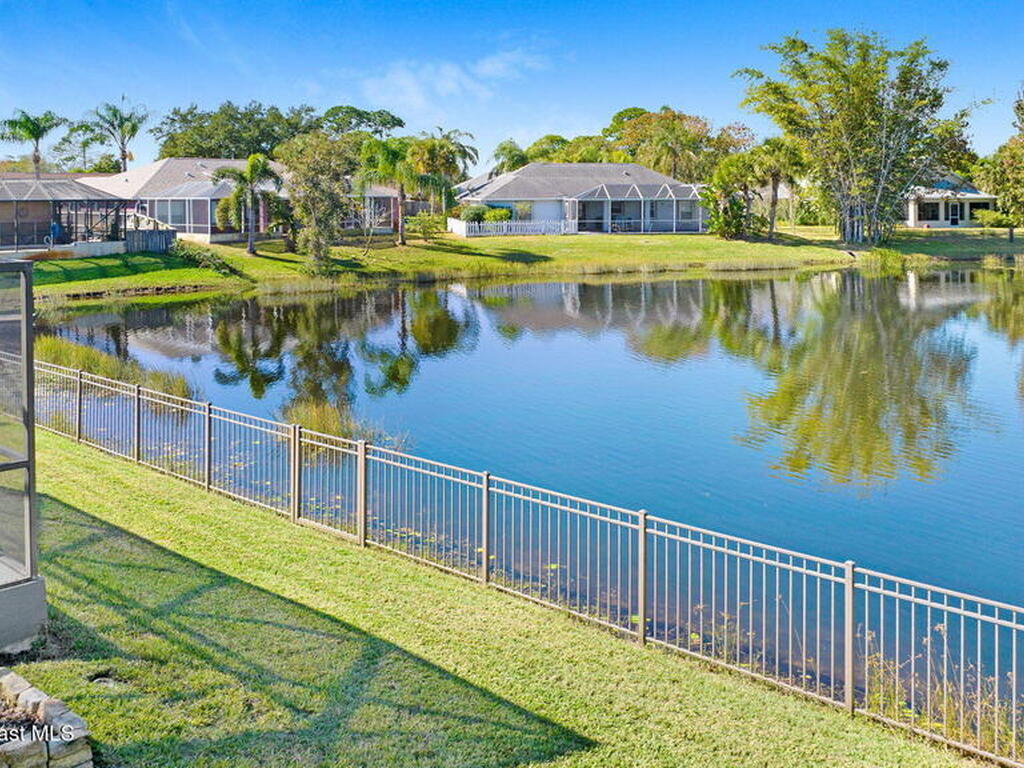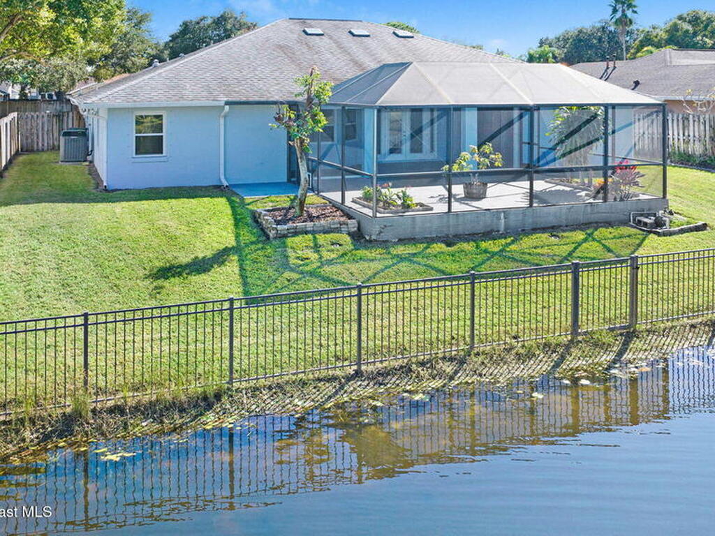 Enjoy lake view lounging in this spacious 4/2 home perfectly situated at the heart of Rockledge. Come see how skylights allow natural light to illuminate the living and kitchen areas. This home offers a bonus room with french doors perfect for a home office, fenced in back yard, stainless steel kitchen appliances, whole home water purifier, indoor laundry room, updated windows, formal dining room, screened in back porch, hurricane shutters and more! Listing Agent lives nearby for easy showings. Have the small community feel while only minutes from I95 and a short drive to the beach. Walk or bike to the park, visit the zoo, play a round of golf, meet friends at the Avenue- it is all within your reach. Welcome home!