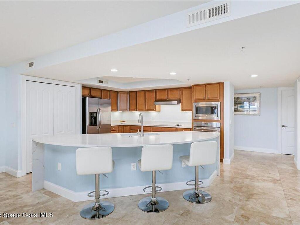 RESORT STYLE LIVING AT IT BEST! PERFECTLY LOCATED JUST STEPS TO BEACH! With nearly 2, 000 sq ft this 3 bedroom 2 bath split floor plan condo has so much to offer. Light and bright open floor concept with modern fixture and finishes. Gourmet kitchen has large island white quartz cascading waterfall countertop, all wood custom cabinets, and stainless steel appliances. Gorgeous large Italian tile throughout living areas and bathrooms. Come and enjoy your morning coffee watching the sunrise with a glimpse of the ocean from your balcony. Palm Springs Condos have resort style amenities. Tennis and Pickleball court, Pool, fitness center and clubhouse. Beach access is only a few steps away! Centrally located on beachside close to restaurants, boutique shops, Lowe's and so much more. This is the perfect place for your DREAM home or your DREAM vacation home.