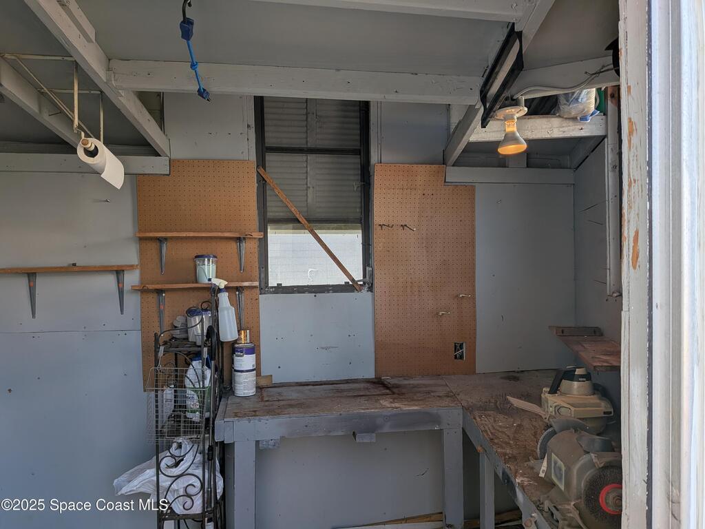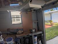 Looking for a sunny escape from brutal winters? This 55+ 2-bed, 2-bath in Leisure Living Estates is the perfect warm-weather retreat - you OWN THE LAND!This home has been well cared for, with major updates already done: a new standing-seam metal roof (2023), new skirting (2023), and a 2020 A/C system. Inside, you'll find no carpeting, updated bathrooms, and tons of built-in storage. The in-unit washer/dryer and the workshop w/ laundry sink & built-in workbench.Parking is a breeze with a carport plus extra driveway space. Even better, it's sold fully furnished, so you can move right in and start soaking up the Florida sunshine.The HOA is just $132/month and covers lawn care, landscaping, basic cable, and internet - a fantastic value.Cast a line from the community fishing pier. Pick fruit from your own banana tree. Walk across the street for deeded beach access, or stop by the community clubhouse for activities and gatherings.