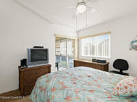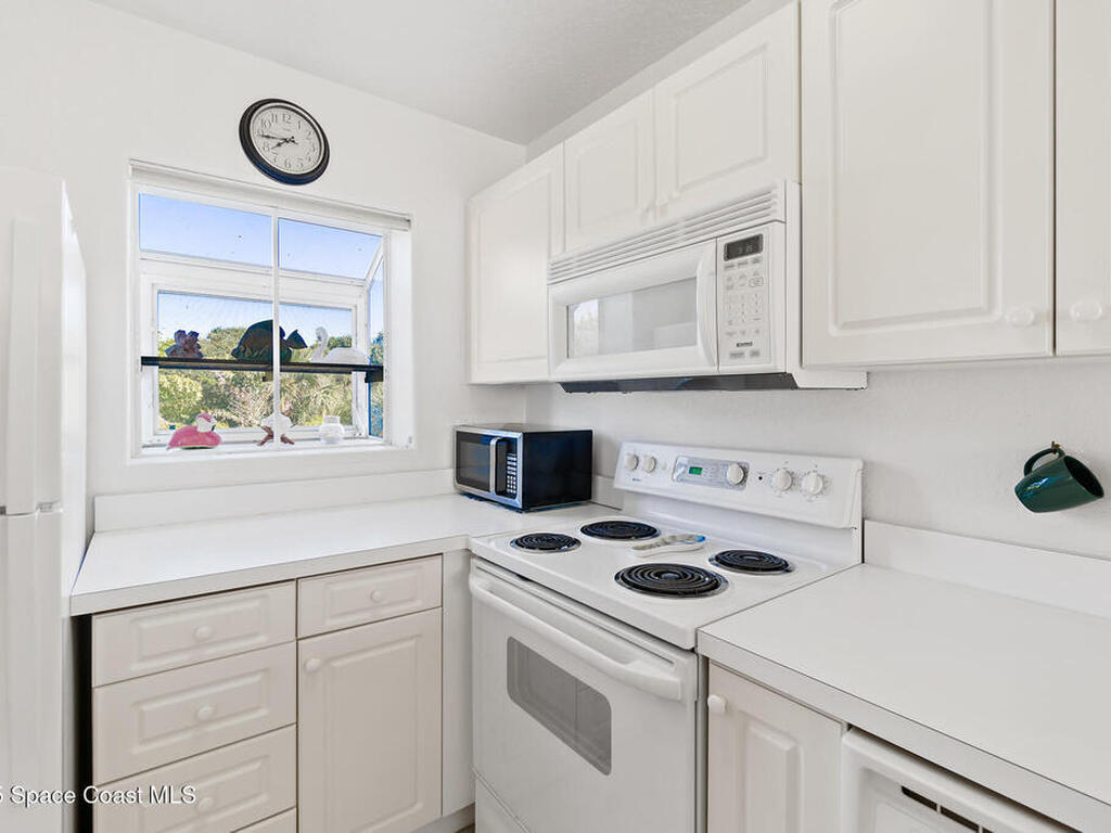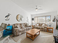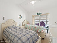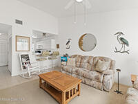 Step into relaxed beachside living at the Villages of Seaport. This fully furnished, move-in ready 2-bedroom, 2-bath second-floor condo offers an inviting retreat just steps from the ocean. The vaulted ceilings create an open, airy feel, and the screened balcony becomes your personal spot for morning coffee or winding down after a day in the sun. From the front of the condo, you'll have a perfect vantage point for rocket launches, adding a unique touch to your coastal lifestyle. Inside, the condo features a comfortable mix of tile and carpet, a bright kitchen with a decorative sunlit window, and a dining area featuring a beautiful bay window, ideal for casual meals or game nights. Living at Villages of Seaport means every day can feel like a vacation. Enjoy multiple pools, tennis and pickleball, racquetball, a fitness center, and private beach access, all within a secure, gated community.