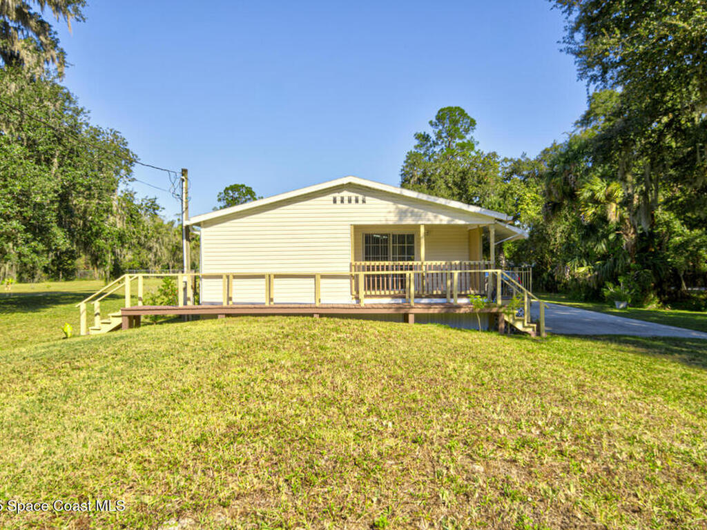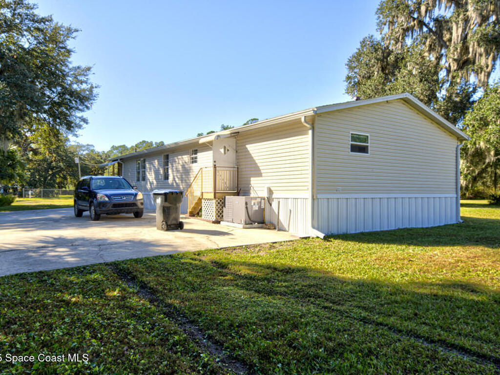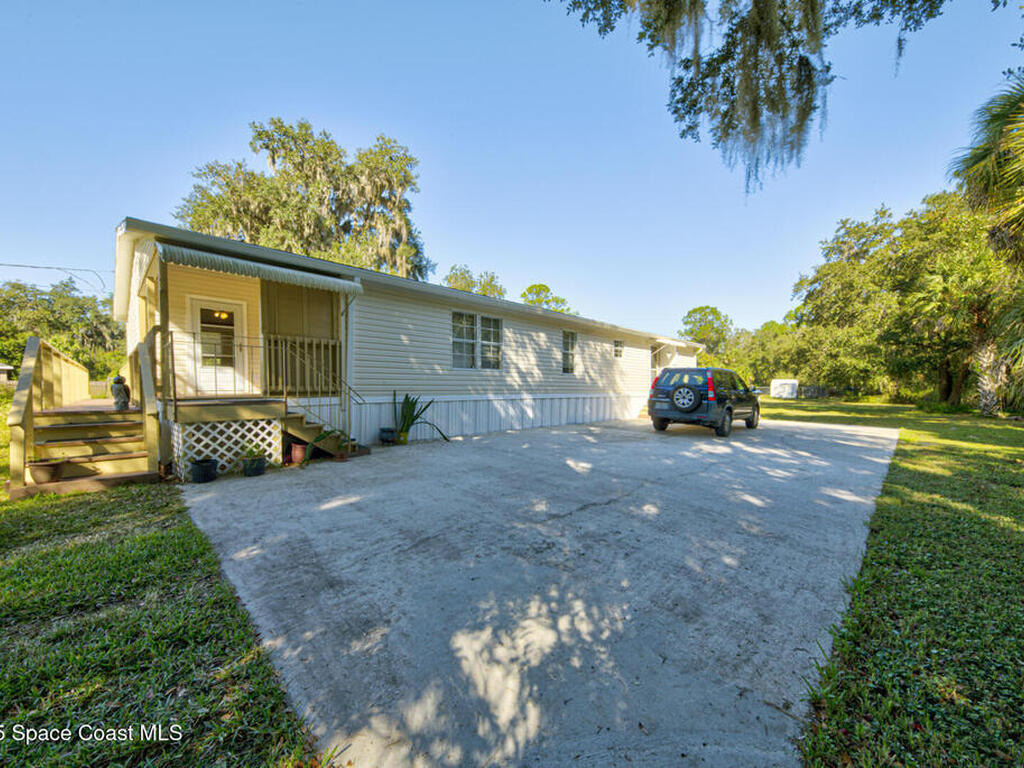 Spaciously Designed 3 Bedroom 2 Bath Split Plan Manufactured Home Built in 2000 with 1728 sqft on 2 acres located in Christmas. The home features a living room, open family room and dining room, large kitchen with island, vaulted ceilings, tile flooring throughout, inside laundry room, large primary suite with double sinks, large garden tub and walk-in closet, 2nd bathroom has walk-in shower and 3rd bedroom has private entrance to porch. The property is completely fenced in with chainlink fencing and zoned ORG-A-2 (Farmland Rural District) This property is not located in a HOA and plenty of room to park RV, Trailer, Boat, and much more. The home is on well water and septic. The Roof was replaced in 2023, Water Softener is 4 yrs old with a 10 year warranty (6 yrs remaining), Hot Water Heater was replaced in 2022, AC replaced in 2025, Septic cleaned out in 2024. It is worth taking a look at.