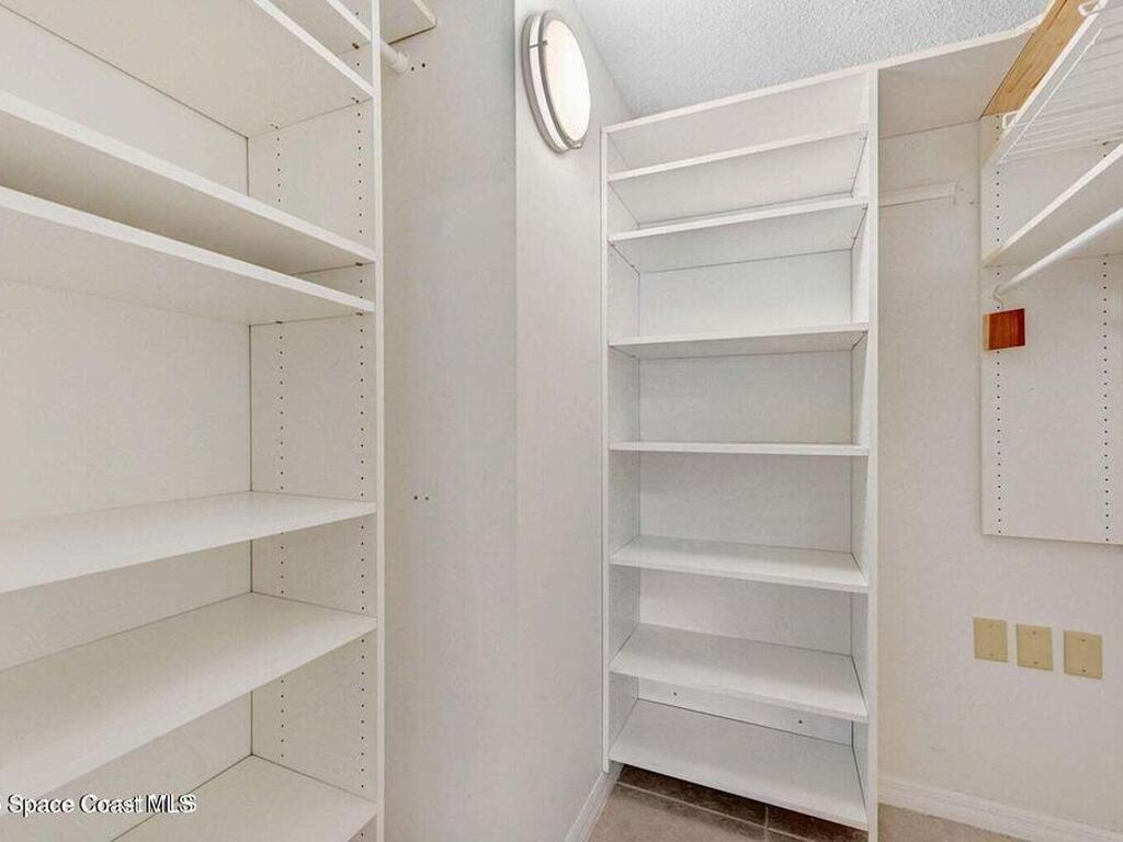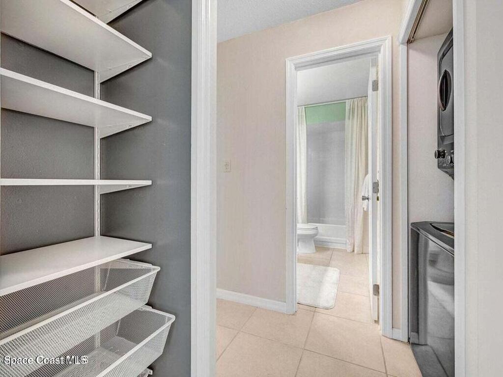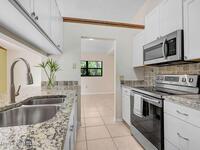 Welcome to this open and airy second floor end unit which is one of the most spacious and inviting floor plans in the entire complex. Originally designed as a three bedroom, two bath, this thoughtfully reimagined two bedroom, two bath layout offers an expansive living area, being ideal for entertaining or simply enjoying the extra breathing room. Step inside to find an interior that has been tastefully updated with east facing plantation shutters, cool and easy-to-maintain tile flooring throughout and a modern kitchen featuring sleek S/S appliances, gleaming granite counter tops and elegant white cabinetry. Both bathrooms carry the same clean and classic fixtures and cabinetry, creating a cohesive and refined look throughout the home. The stackable W/D are tucked away for easy access. This end unit offers natural light flooding in from multiple angles, offering a sense of openness and tranquility. Community pool/spa. 1 car carport and additional assigned parking. See addit. remarks.