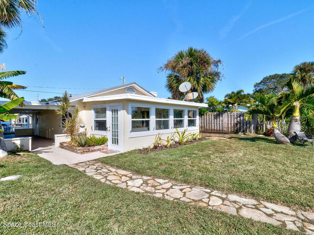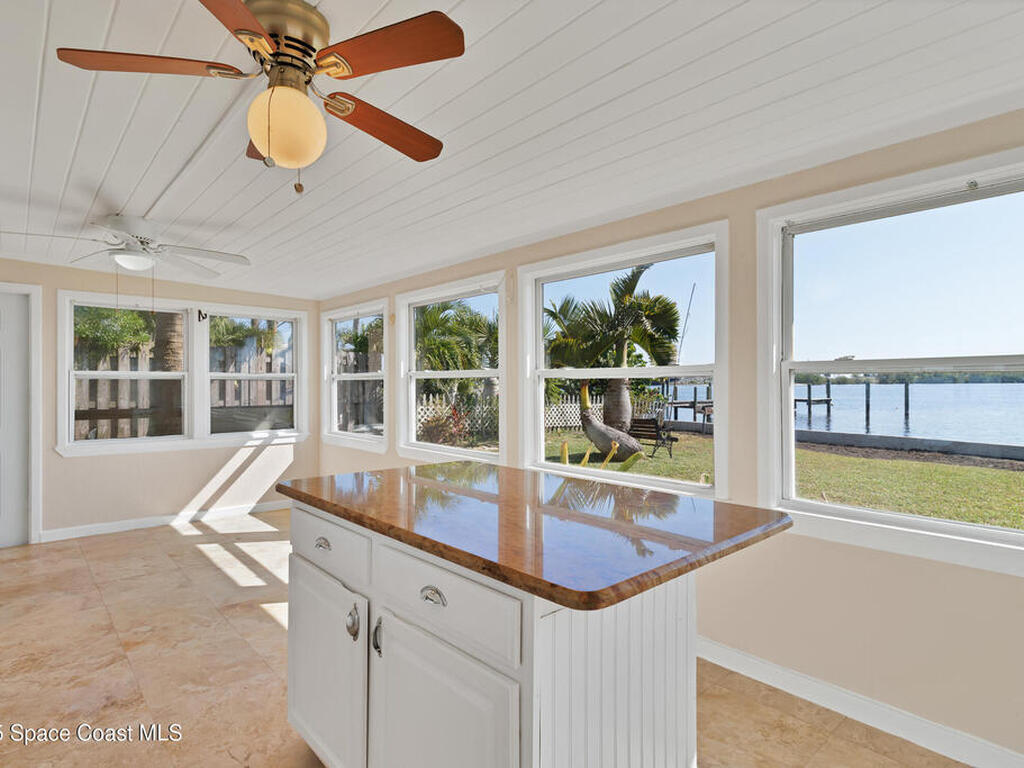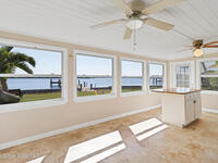 Waterfront Gem for Sale Double Shoreline Double Docks Endless Sunsets Nestled on a rare double-waterfront setting this stunning property is embraced by sparkling water on 2 sides giving you panoramic breathtaking views refreshing breezes & sense of peaceful seclusion. 2 mins to ICW & Sebastian Inlet. Your living spaces are wrapped in shimmering reflections offering unique sense of openness & serenity. Enjoy sweeping water views that bring natural light & tranquility into every room. Spacious 384FT covered patio, 2 Private Docks Perfect for boating kayaking fishing or relax at the water's edge to watch dolphins or manatees your personal gateway to life on the water. Unforgettable Sunset Views. Block built home. Cool luxurious yet practical travertine marble flooring flows throughout the home, for easy maintenance. 2 Bedrooms 1 Bath A layout that blends comfort charm & efficiency ideal as full-time residence or getaway retreat! Some owner financing available. Home being sold '' AS IS''