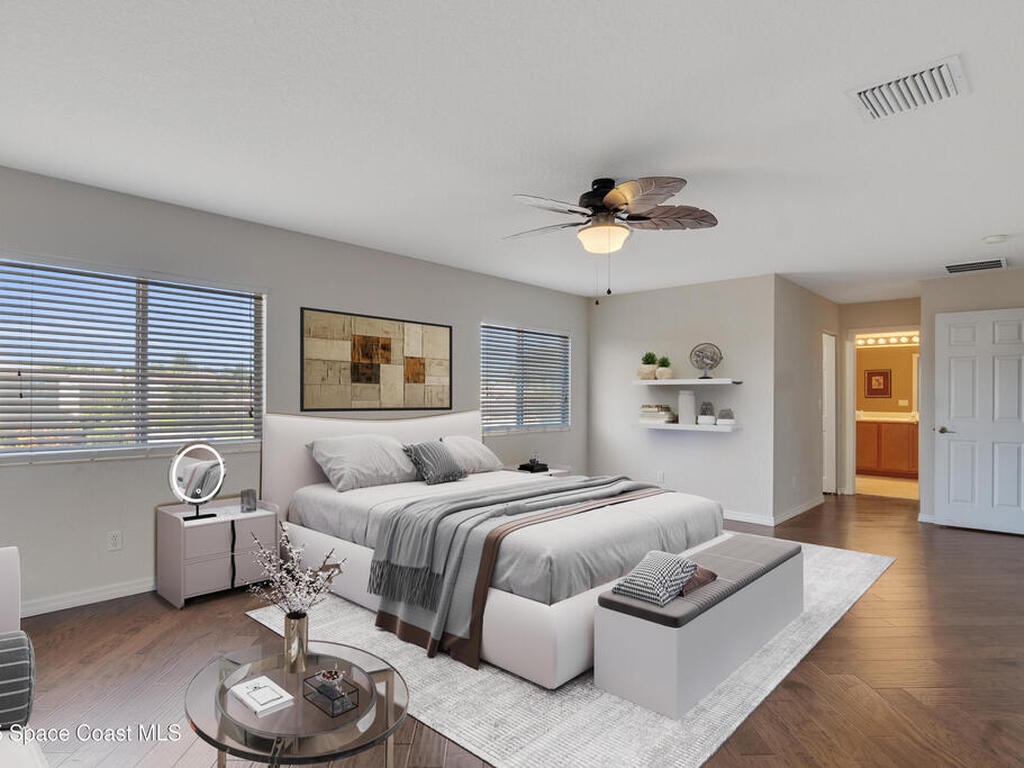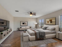 Welcome to Verolago in North Vero Beach. This two-story, move-in-ready home sits on the largest lot in the community, with an extended covered lanai that backs to open green space--perfect for running, playing, and sunset views. The interior includes a grand kitchen, two living spaces, and a versatile loft suitable for an office or retreat. Upstairs, the oversized Master Suite features two walk-in closets, complemented by three additional bedrooms. The community boasts a expansive clubhouse, large pool, and fitness center for residents.