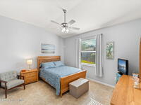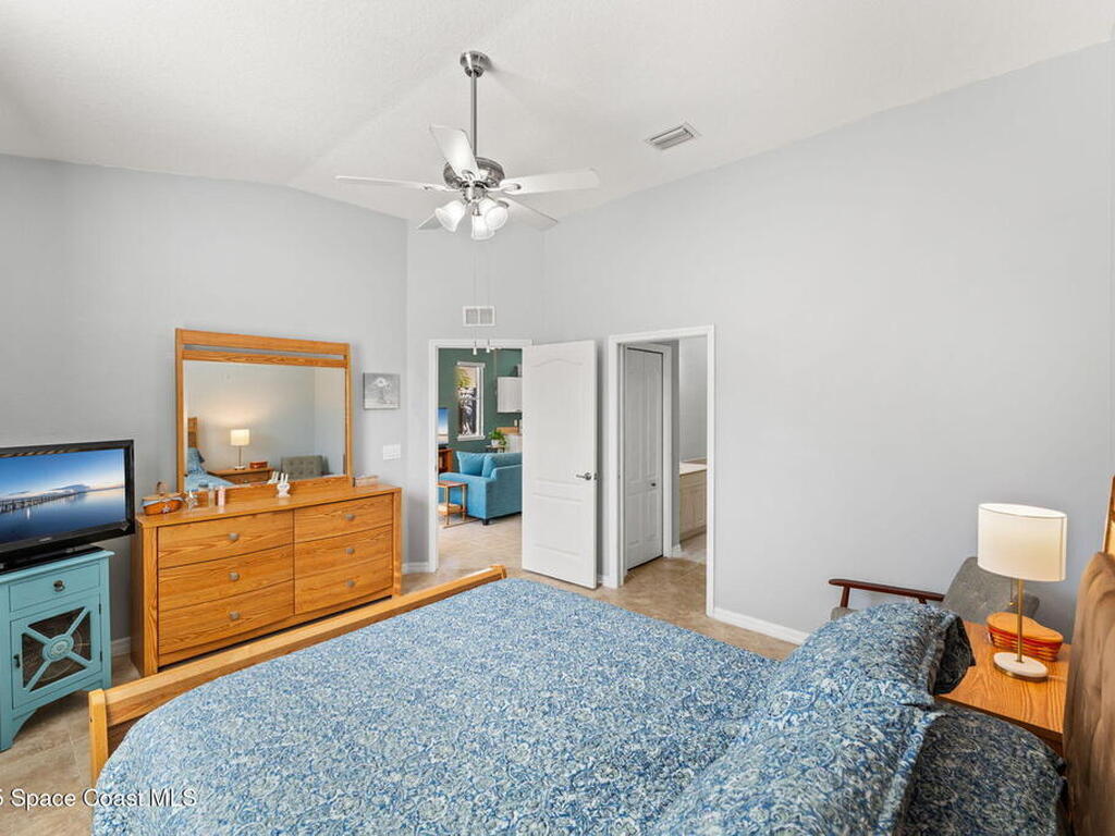 Experience effortless comfort and convenience in this 3BD/2BA half-duplex located in the gated Players Club at Bayside Lakes. Enjoy tile flooring throughout, vaulted ceilings, and a bright, open layout. The kitchen features white cabinetry, Corian countertops, a gas stove, and a walk-in pantry. Relax on the screened porch with pull-down shades, accessible from both the living room and the owner's suite. The primary bedroom includes a walk-in closet and an ensuite with a soaking tub and walk-in shower. Updates include a newer roof (2018), HVAC (2021), and water heater (2022). The HOA covers roof replacement, exterior maintenance, and lawn care for just $350/month, plus a community pool. You'll also enjoy access to Bayside Lakes amenities, including RV parking, and be minutes from shopping and dining. Perfect for downsizing or a seasonal retreat, this home offers easy Florida living.