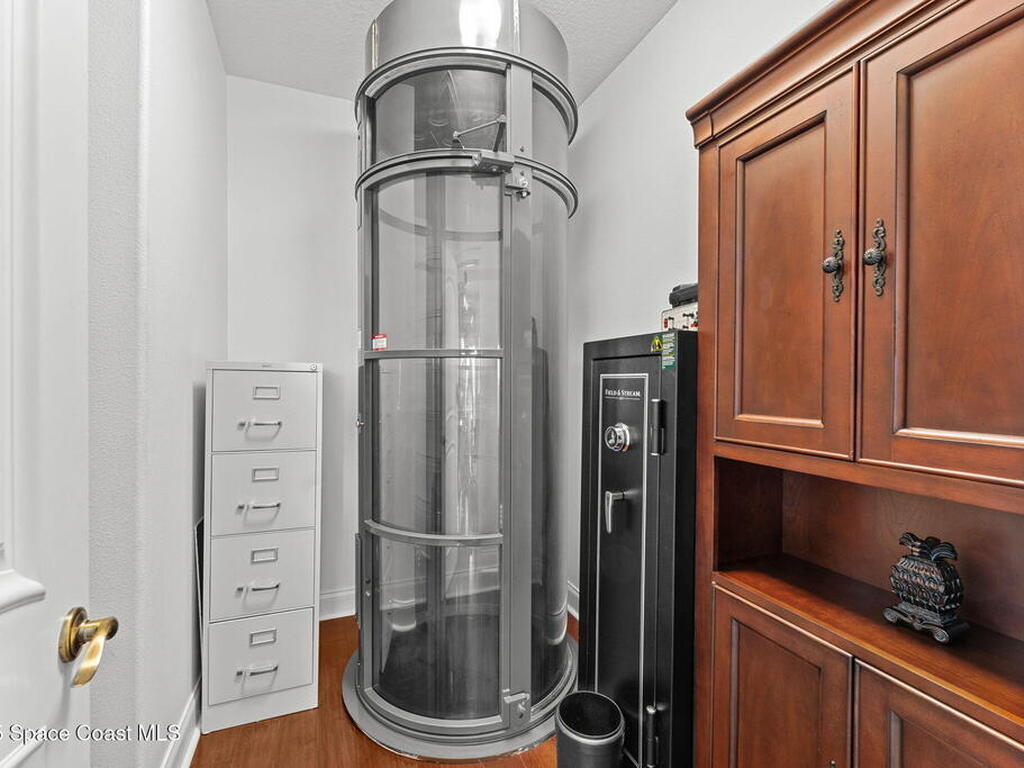 Along 100 ft of shimmering shoreline, this waterfront retreat rises above expectations with a saltwater infinity pool that seems to dissolve into Lake Shepherd, deep-water approach from 6-8 ft to 20 ft at the center, & a full suite of boating luxuries including a 24K-lb lift, floating dock, & Trex decking positioned for perfect views of the boat parade. Mornings unfold on an east-facing screened patio framed by pavers & soft sunrise light, while polished travertine in a French pattern & warm hardwood floors carry indoors through a layout designed for connection. The kitchen delivers granite surfaces, double electric oven, island, convection microwave, warming drawer, & breakfast bar opening to a family room lined with water views, & the primary suite adds a jetted tub, walk-in shower, & spacious walk-in closet. Elevated living continues upstairs with a loft & office served by a private elevator & Juliet balcony capturing Grand Canal sunsets.
