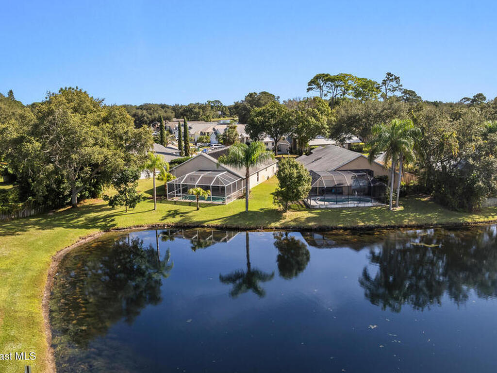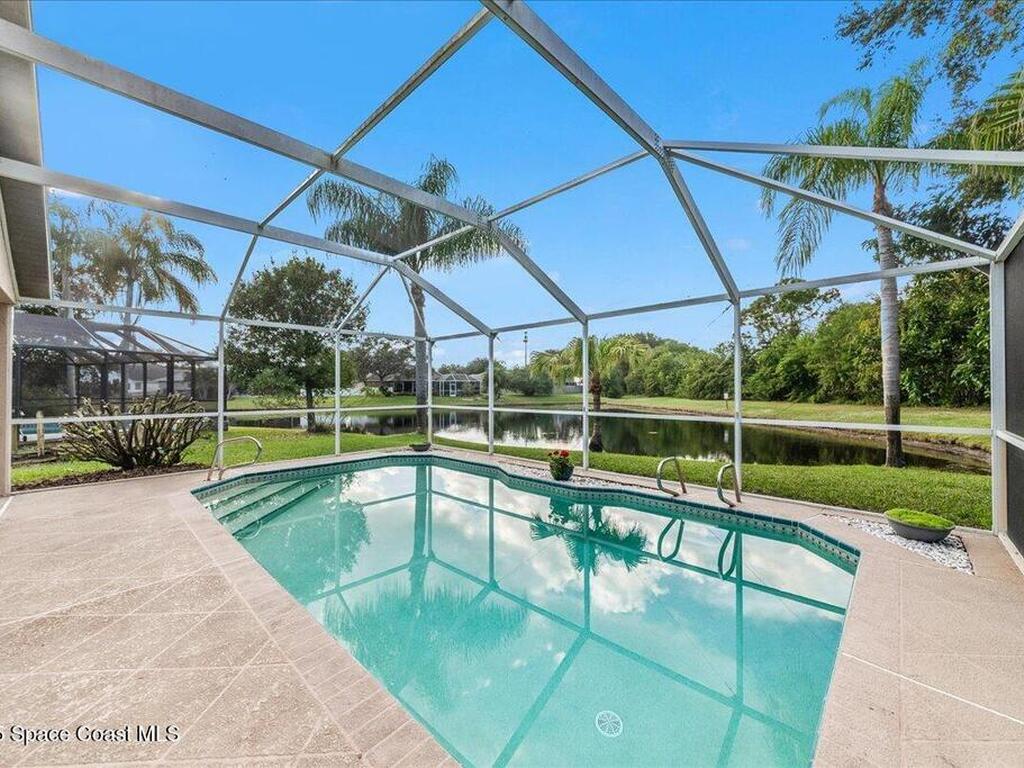 Discover this solid concrete block, waterfront, pool home in a highly convenient & desirable Melbourne neighborhood. Offering tranquil lakefront living with breathtaking sunset views from the expansive screened pool lanai, this well-appointed residence seamlessly blends comfort with functionality. The updated kitchen shines with quartz countertops, rich oak cabinetry, and stainless steel appliances, while natural gas services the range, oven, and water heater for efficiency and performance. Step outside to a nature-rich, backyard oasis ideal for enjoying peaceful evenings by the water. Minutes to shopping, dining, great schools, area businesses and white sand beaches, this home truly delivers a refined waterfront lifestyle. Priced to sell!
