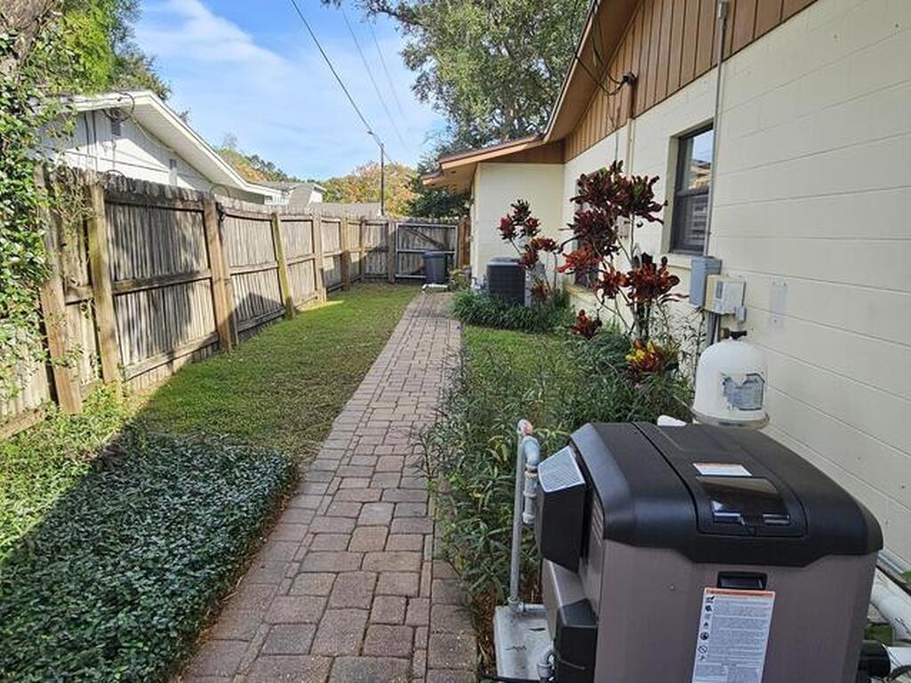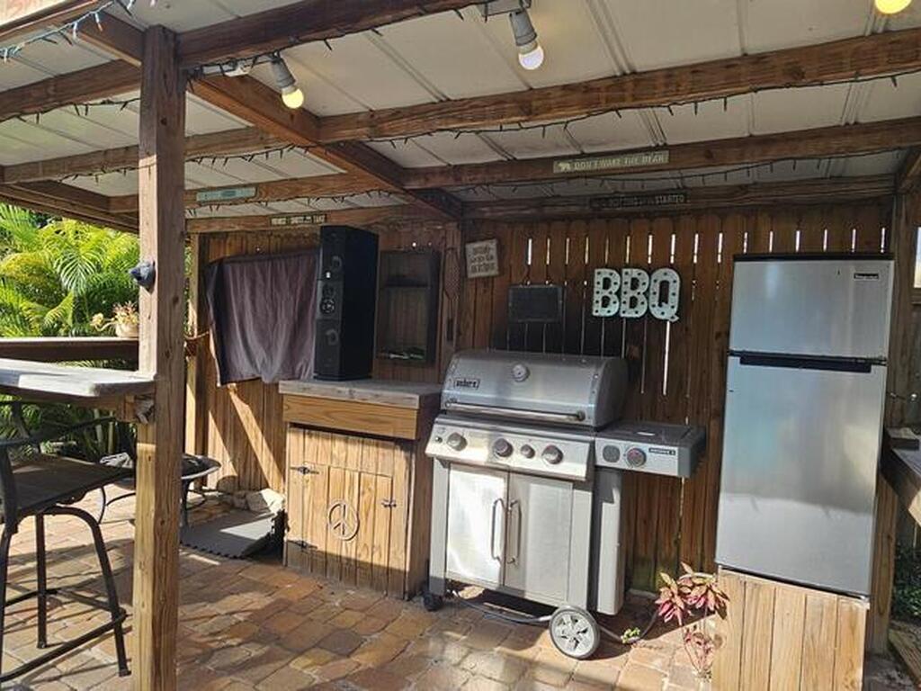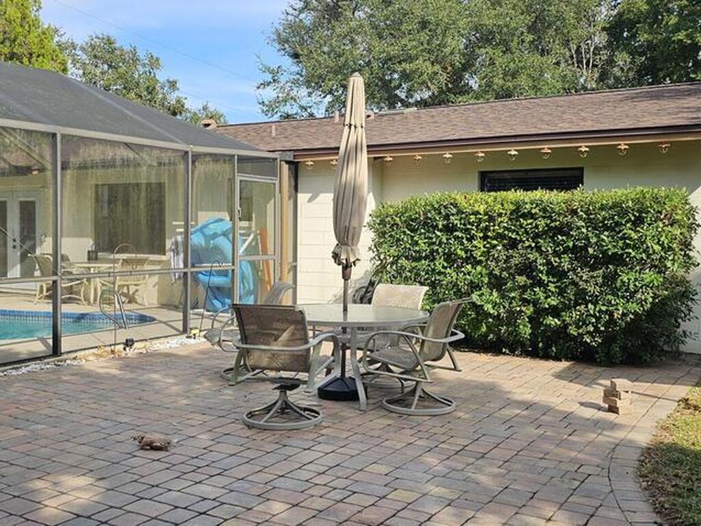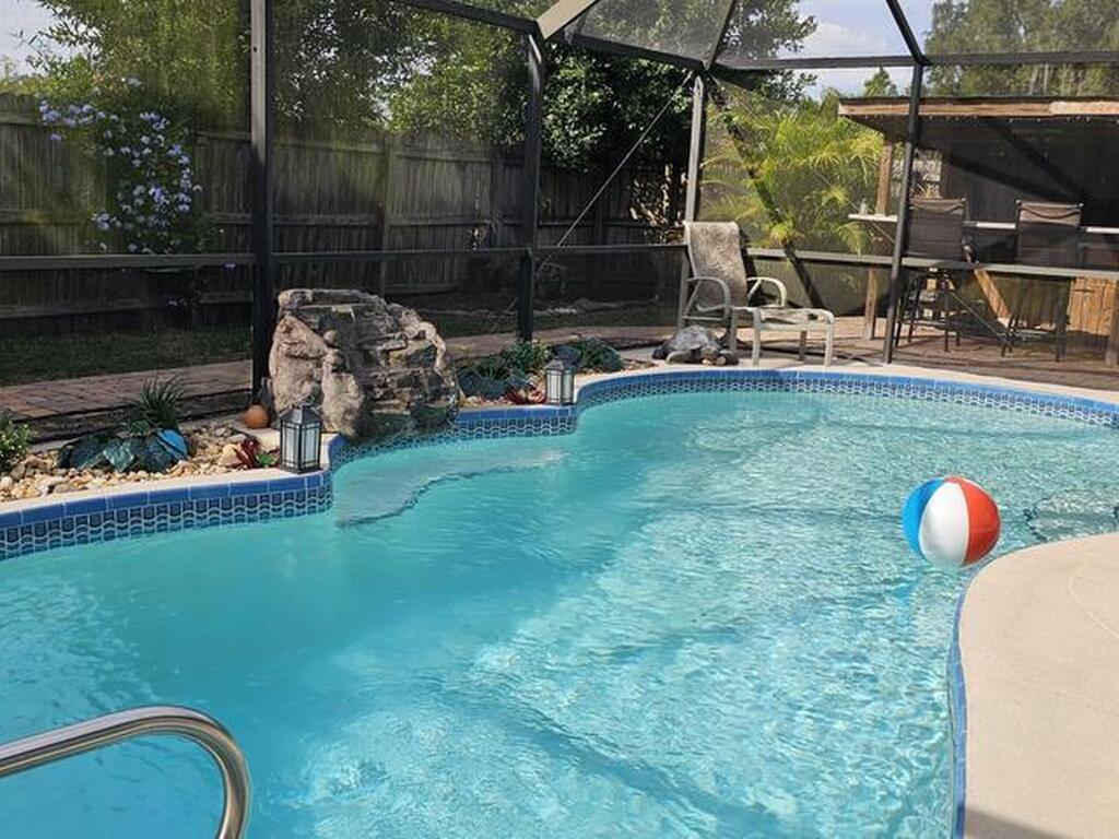 Lovely and well maintained 3 bedroom, 2 bath heated pool home in desirable Lantern Park. Situated on a spacious corner lot, this property backs up to a conservation area with walking trails and bird sanctuary, offering exceptional privacy and natural views.Recent updates include a modern kitchen with quartz countertops, new refrigerator, plus beautiful wood look tile flooring in the main living areas. Both the master and guest baths have been tastefully renovated.Step outside to your fenced backyard oasis featuring a summer kitchen with refrigerator, piped in propane gas for the grill, and a Blackstone griddle, all under a custom wood covering. The screened pool area is perfect for entertaining, and additional paved areas off the driveway provide extra parking.This home blends comfort, upgrades, and outdoor living. This home is truly must see!