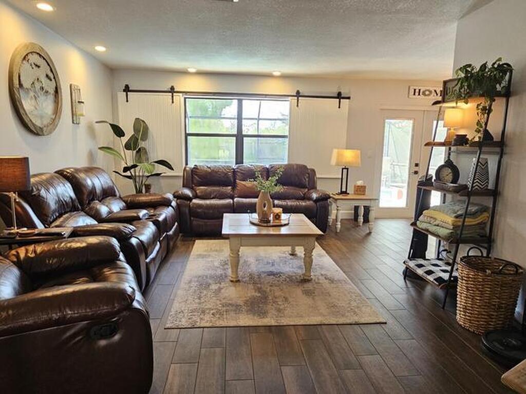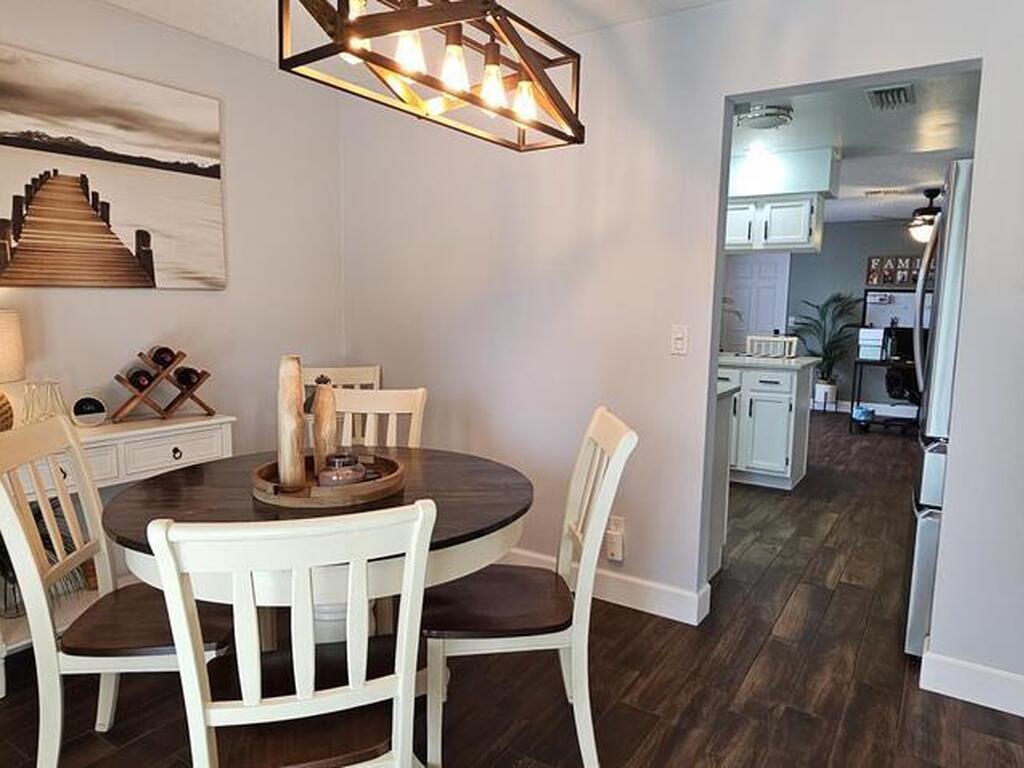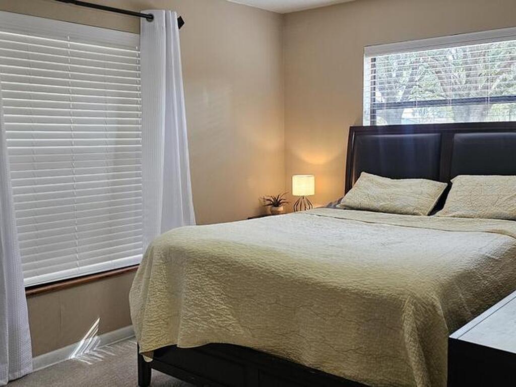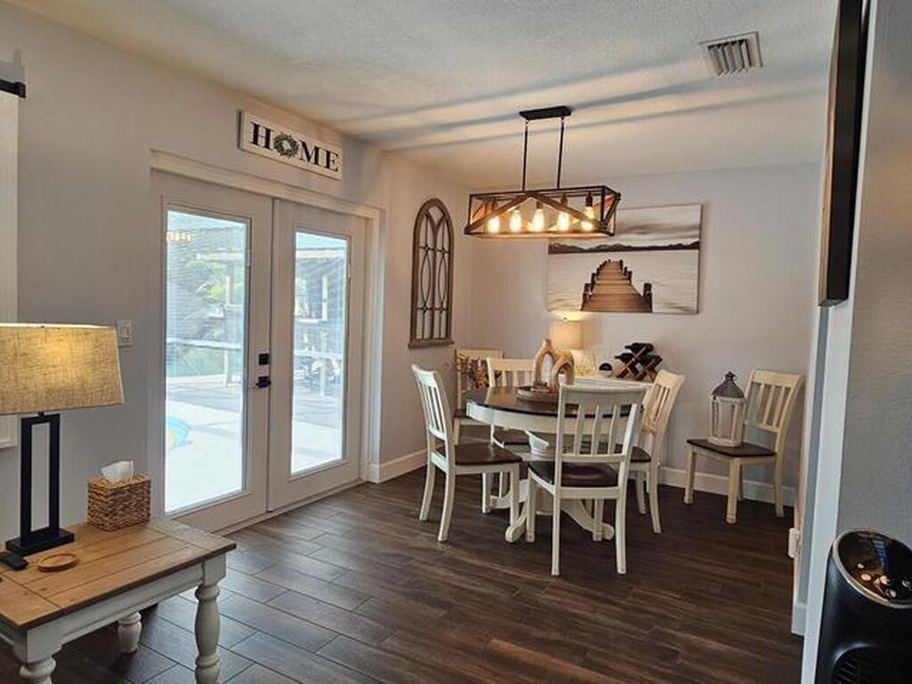 Lovely and well maintained 3 bedroom, 2 bath heated pool home in desirable Lantern Park. Situated on a spacious corner lot, this property backs up to a conservation area with walking trails and bird sanctuary, offering exceptional privacy and natural views.Recent updates include a modern kitchen with quartz countertops, new refrigerator, plus beautiful wood look tile flooring in the main living areas. Both the master and guest baths have been tastefully renovated.Step outside to your fenced backyard oasis featuring a summer kitchen with refrigerator, piped in propane gas for the grill, and a Blackstone griddle, all under a custom wood covering. The screened pool area is perfect for entertaining, and additional paved areas off the driveway provide extra parking.This home blends comfort, upgrades, and outdoor living. This home is truly must see!