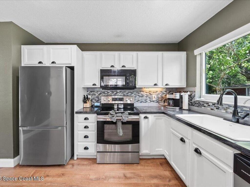 This charming property has been thoughtfully renovated with updates, including a new roof (2022), a brand-new electrical panel, hurricane impact windows, and durable vinyl flooring throughout. Enjoy relaxing mornings and peaceful evenings in the screened porch, featuring fresh epoxy flooring with tv wiring all overlooking a fully fenced backyard designed for ultimate privacy and tranquility. Nestled on a generous 1/3 acre lot, the outdoor living space is a true retreat, surrounded by native plants, towering oak trees, and even a mango tree. Two storage sheds provide plenty of room for tools, hobbies and all your storage needs! Centrally located, you'll be just minutes from shopping, dining, and conveniences, all while enjoying the benefit of city water and no HOA restrictions.