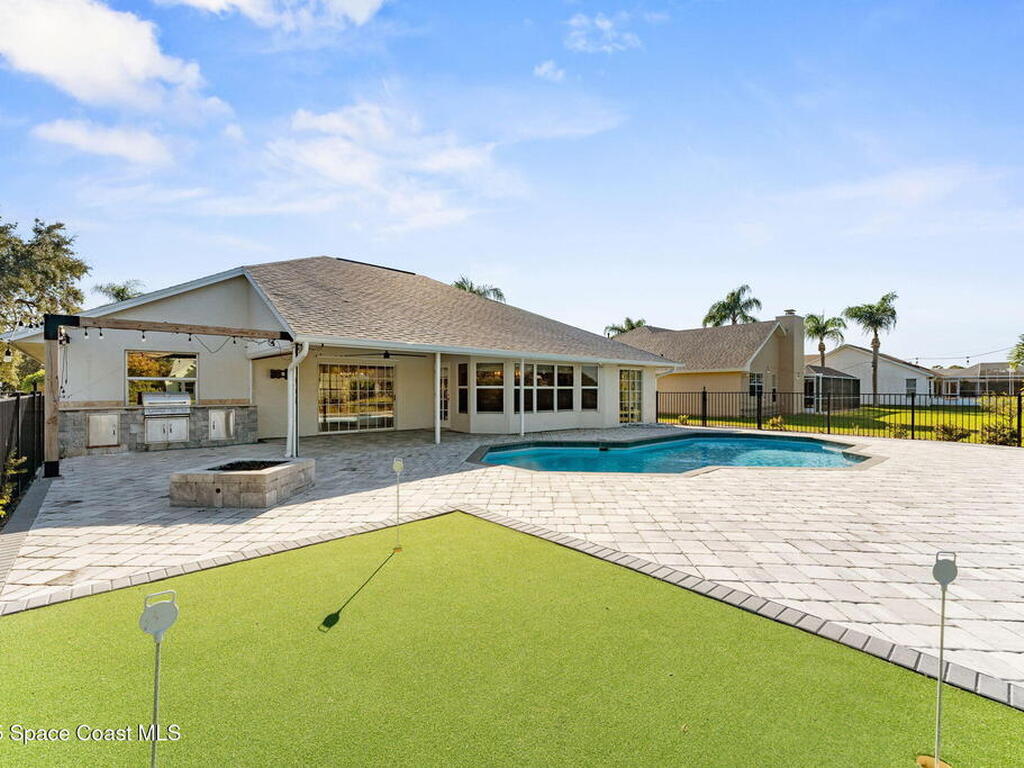 This is the Waterfront Oasis you've been waiting for!!! Right in the heart of Suntree, this Upgraded Pool Home sits on one of the most desirable lots in the community & offers breathtaking Water Views from nearly every room. Offering an Open Layout with New Flooring in the main living areas. The Chef Kitchen features Quartz Counters, Large Island, SS Appliances, Pot Filler & abundant Storage. A sitting area off the kitchen includes a Coffee Bar & Full Size Wine Refrigerator. The Primary Suite offers a Flex Space perfect for an office or gym. En Suite features Double Sinks with Quartz Counters, Walk-in Shower & Large Walk-in Closet. Enjoy cooking on the Summer Kitchen & entertaining by the Pool & Mini Putting Green, all overlooking peaceful Water Views. Located near Top Rated Schools, Golf, Dining, Shopping & Beaches, this home offers the best of the Florida lifestyle.